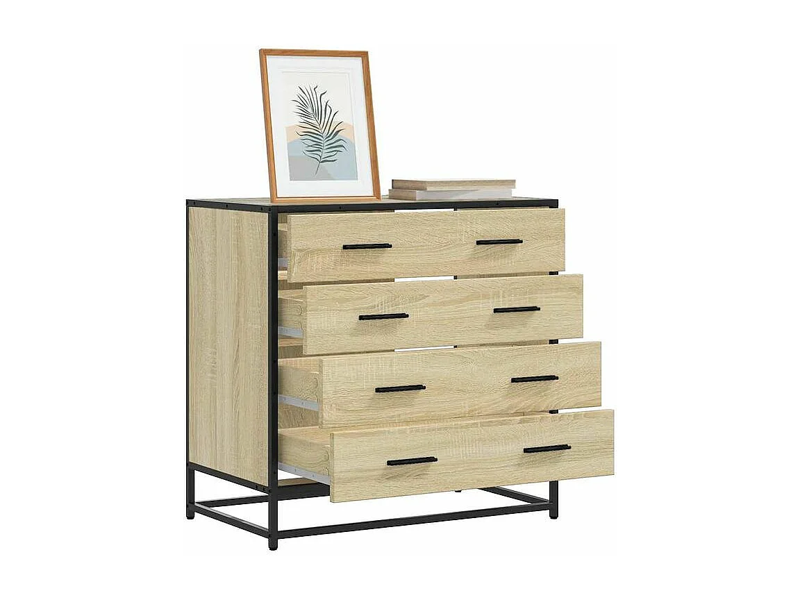 Commode 4 tiroirs Dovany L70xH70xP41 - Bois et métal-Couleur Chêne clair
