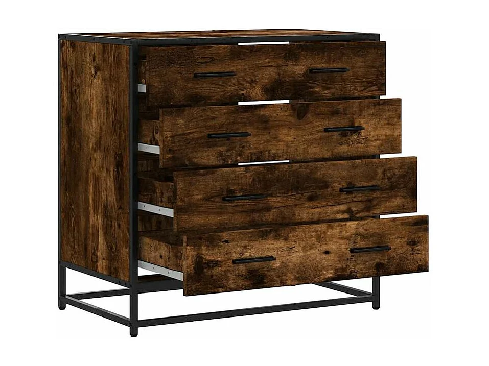 Commode 4 tiroirs Dovany L70xH70xP41 - Bois et métal-Couleur Marron fumé
