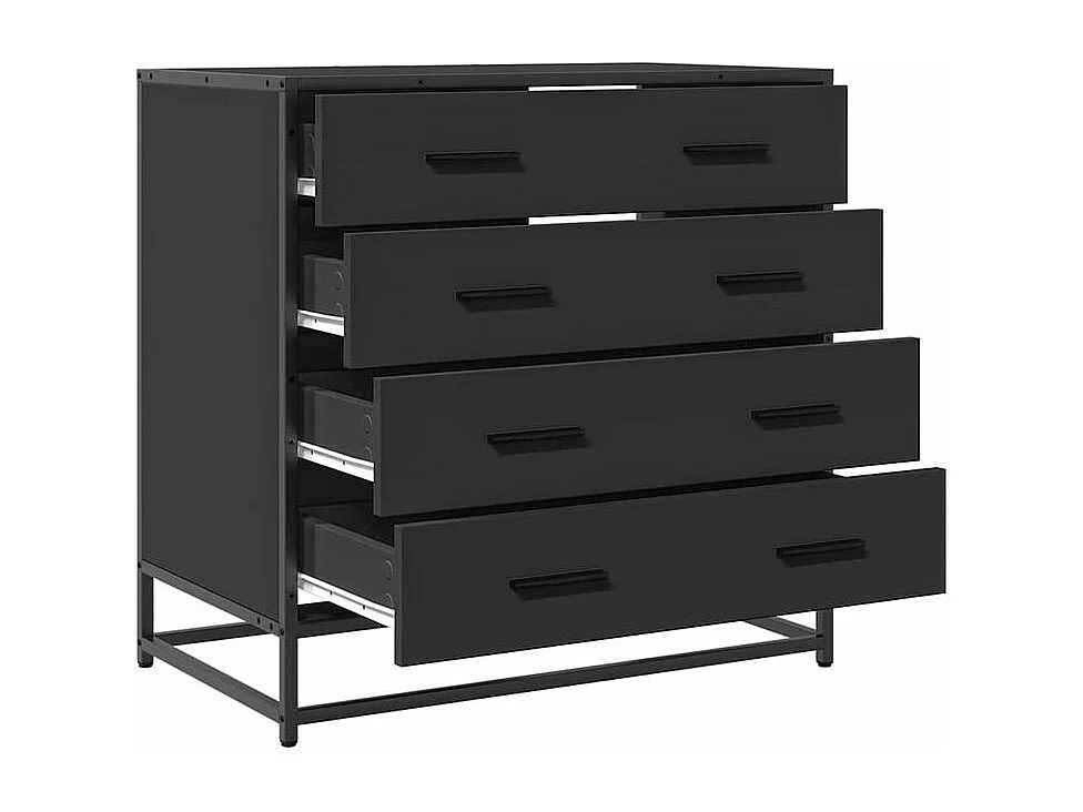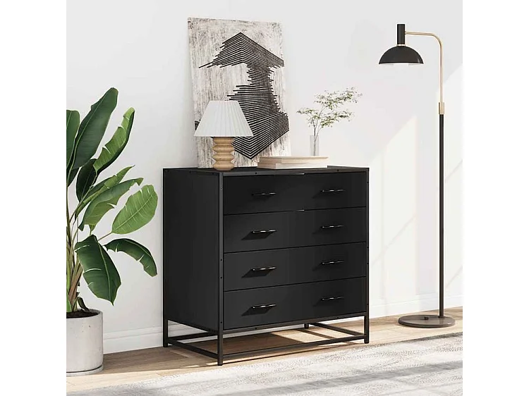 Commode 4 tiroirs Dovany L70xH70xP41 - Bois et métal-Couleur Noir