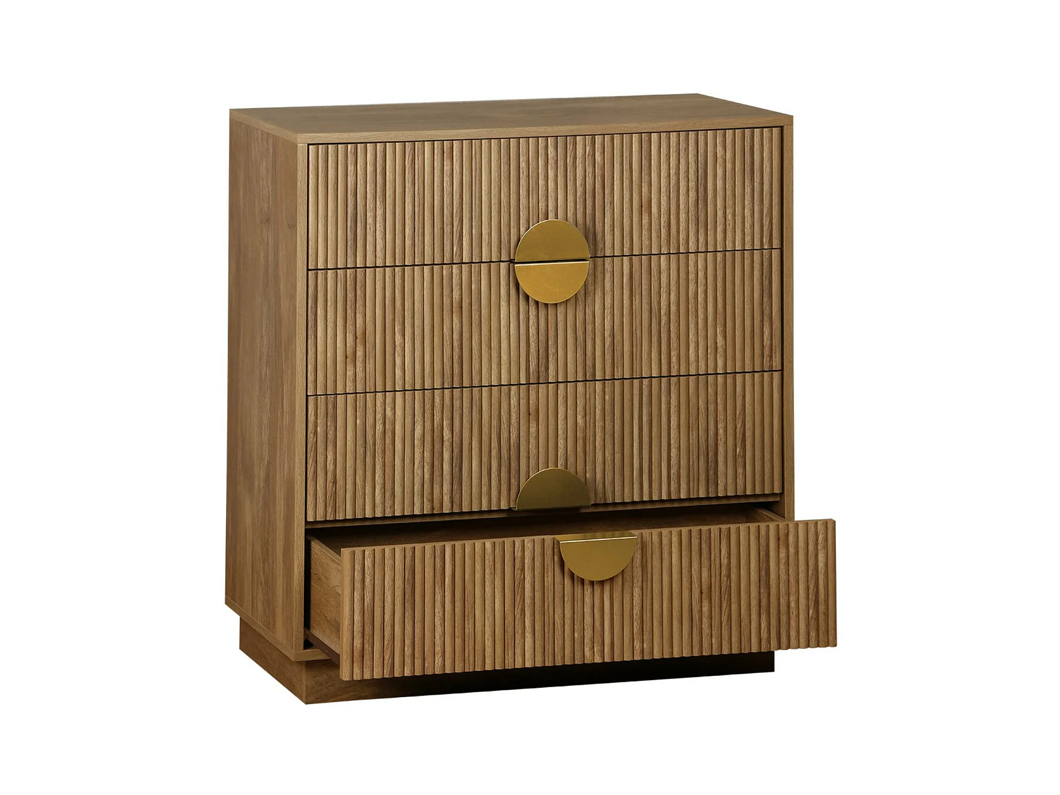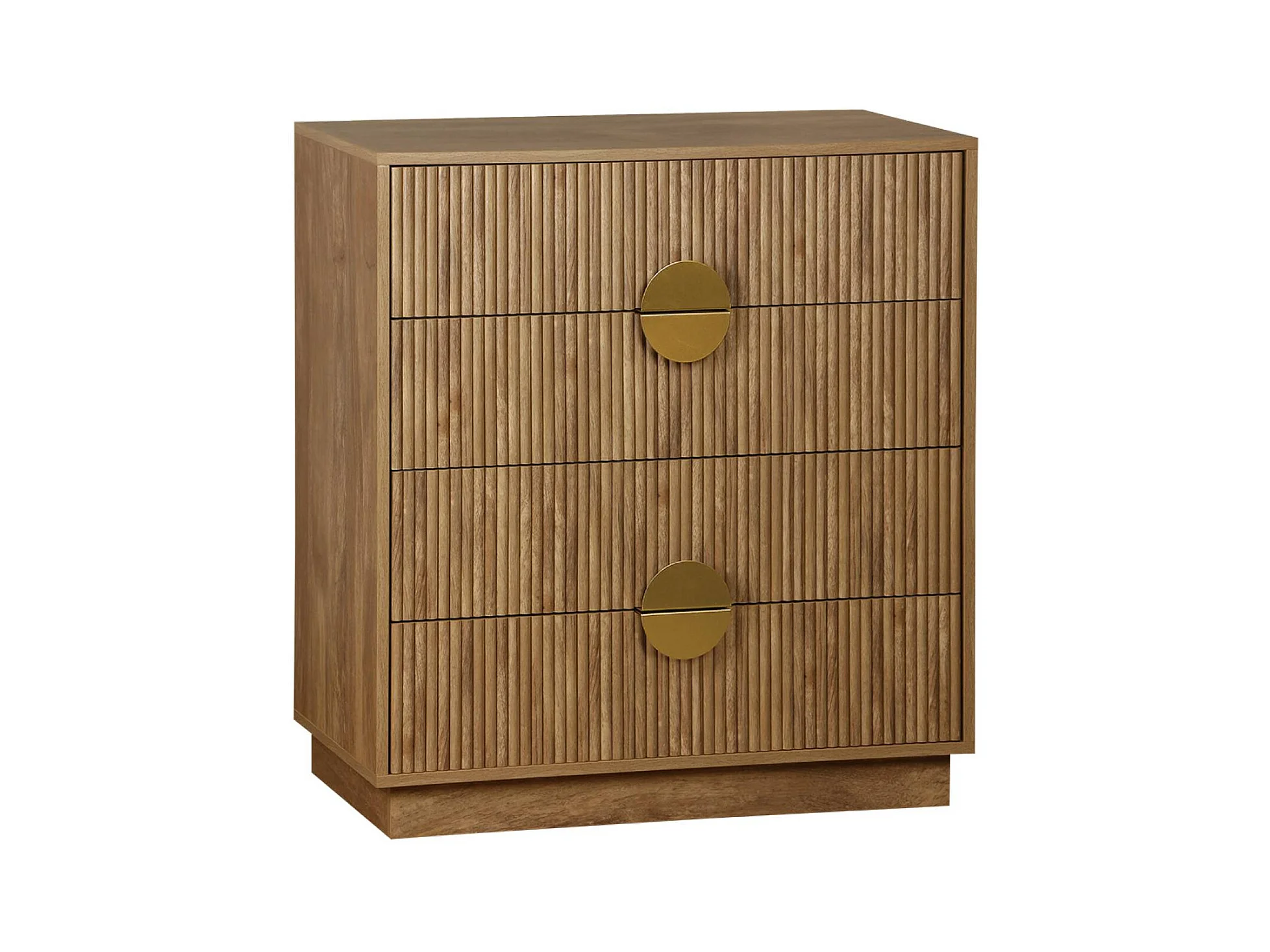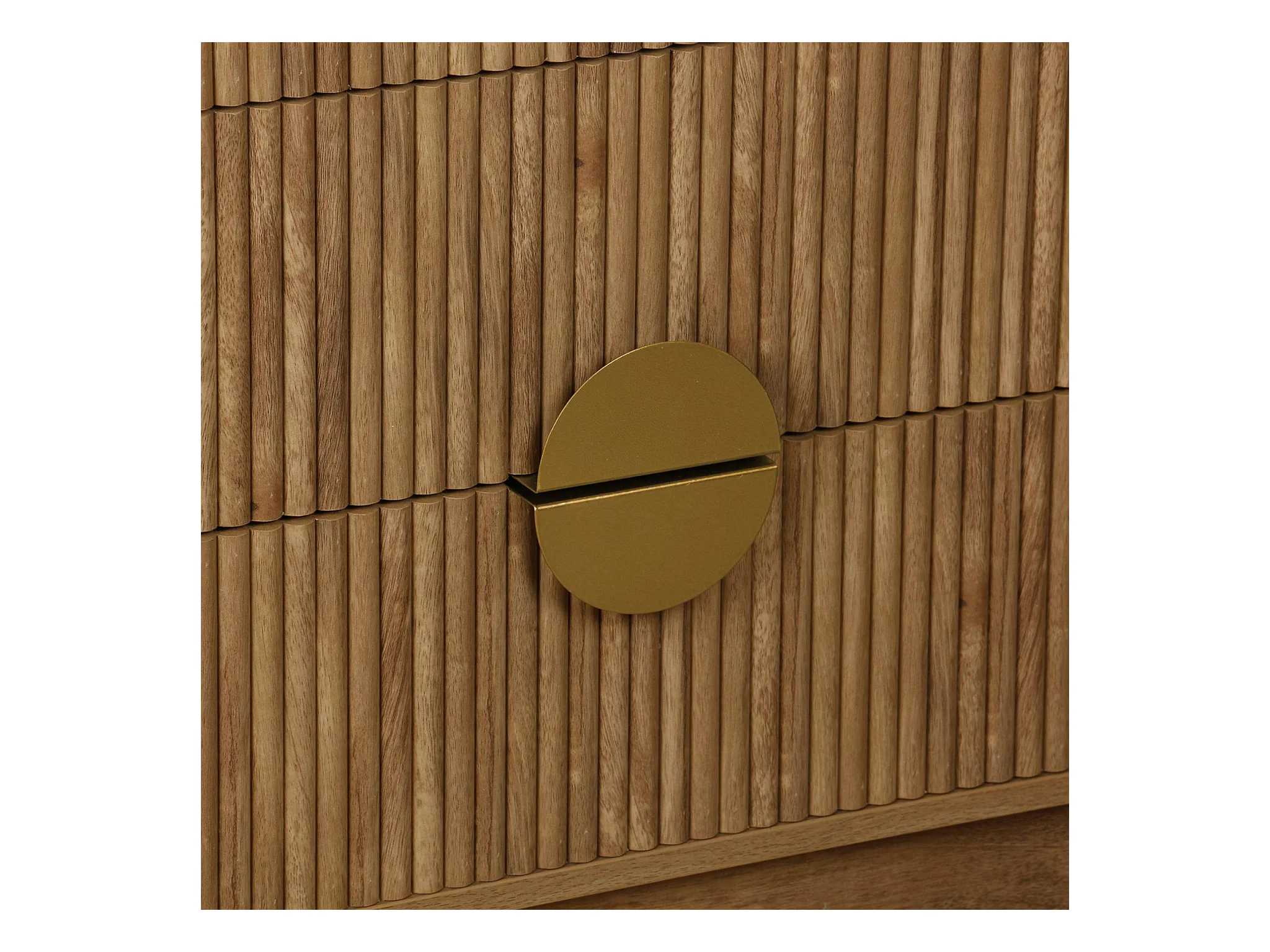 Commode 4 tiroirs décor bois de manguier rainuré. poignées en métal doré. L80 x P40 x H85cm