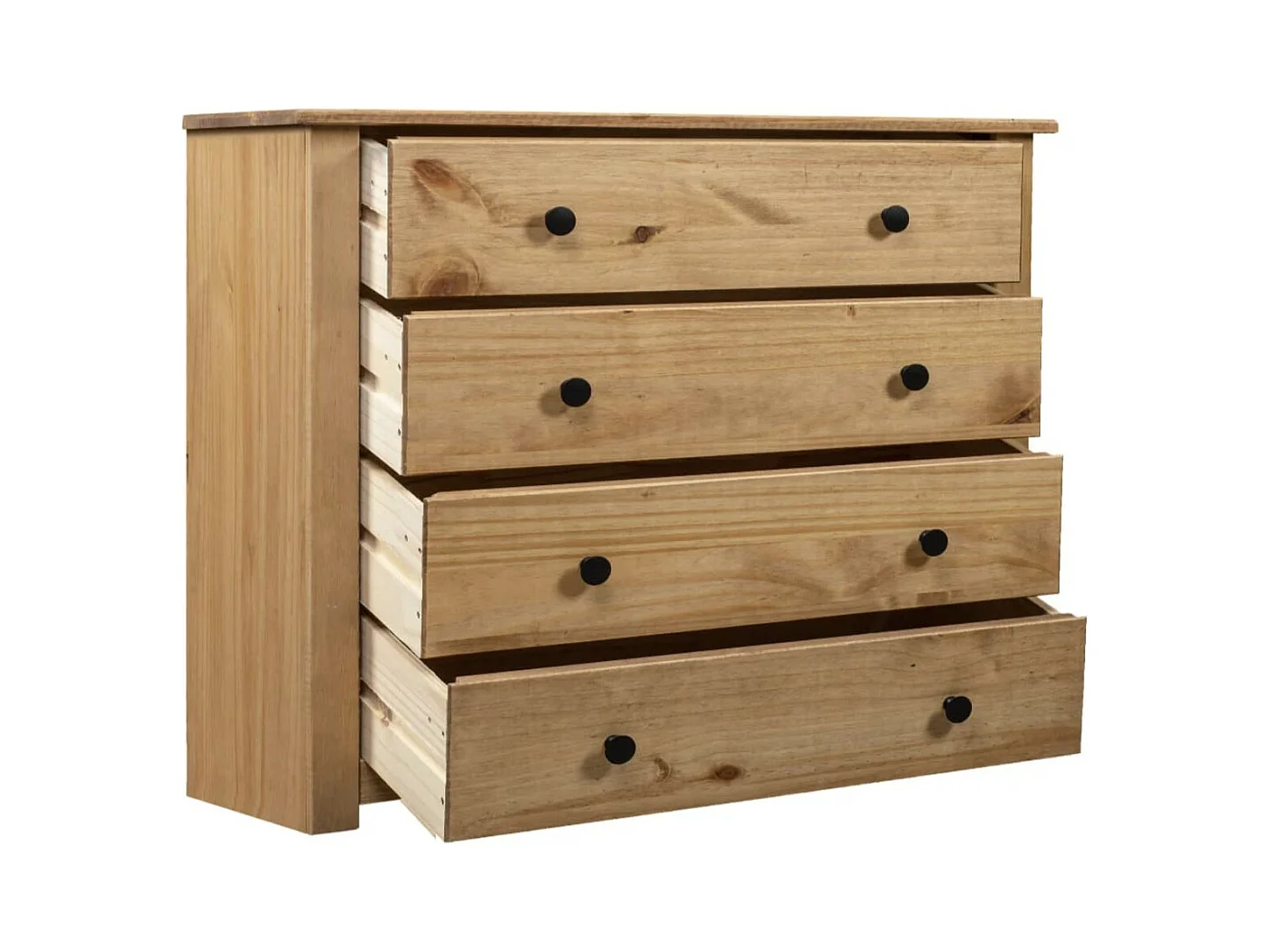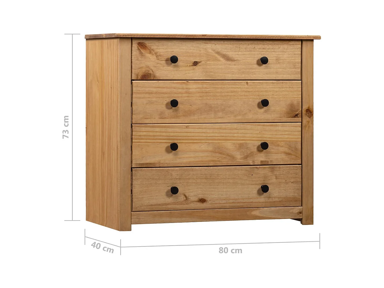 Commode 4 tiroirs en bois de pin massif Autika 80cm – Élégance rustique et praticité-Couleur Naturel