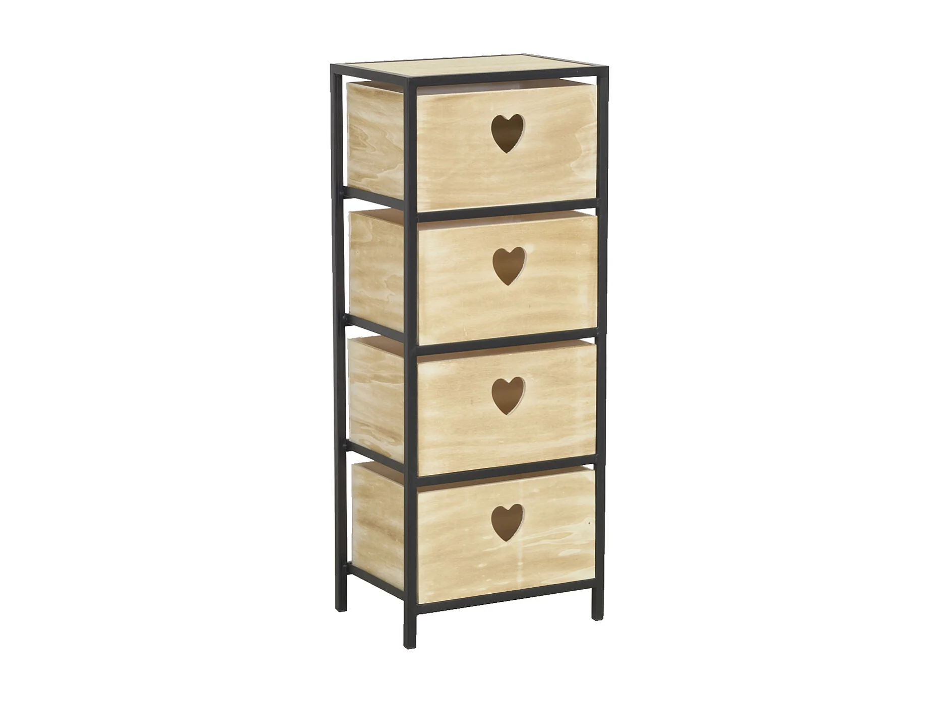 Commode 6 tiroirs en bois naturel Coeur 2 x 3 tiroirs