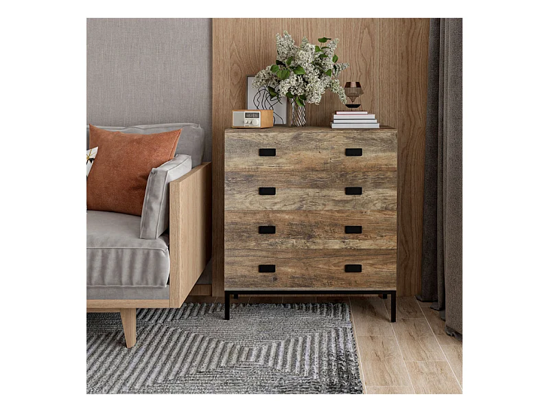 Commode 4 tiroirs JACKSON effet bois de manguier