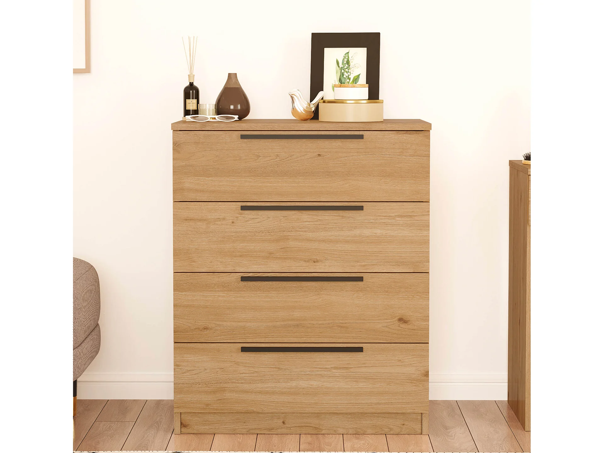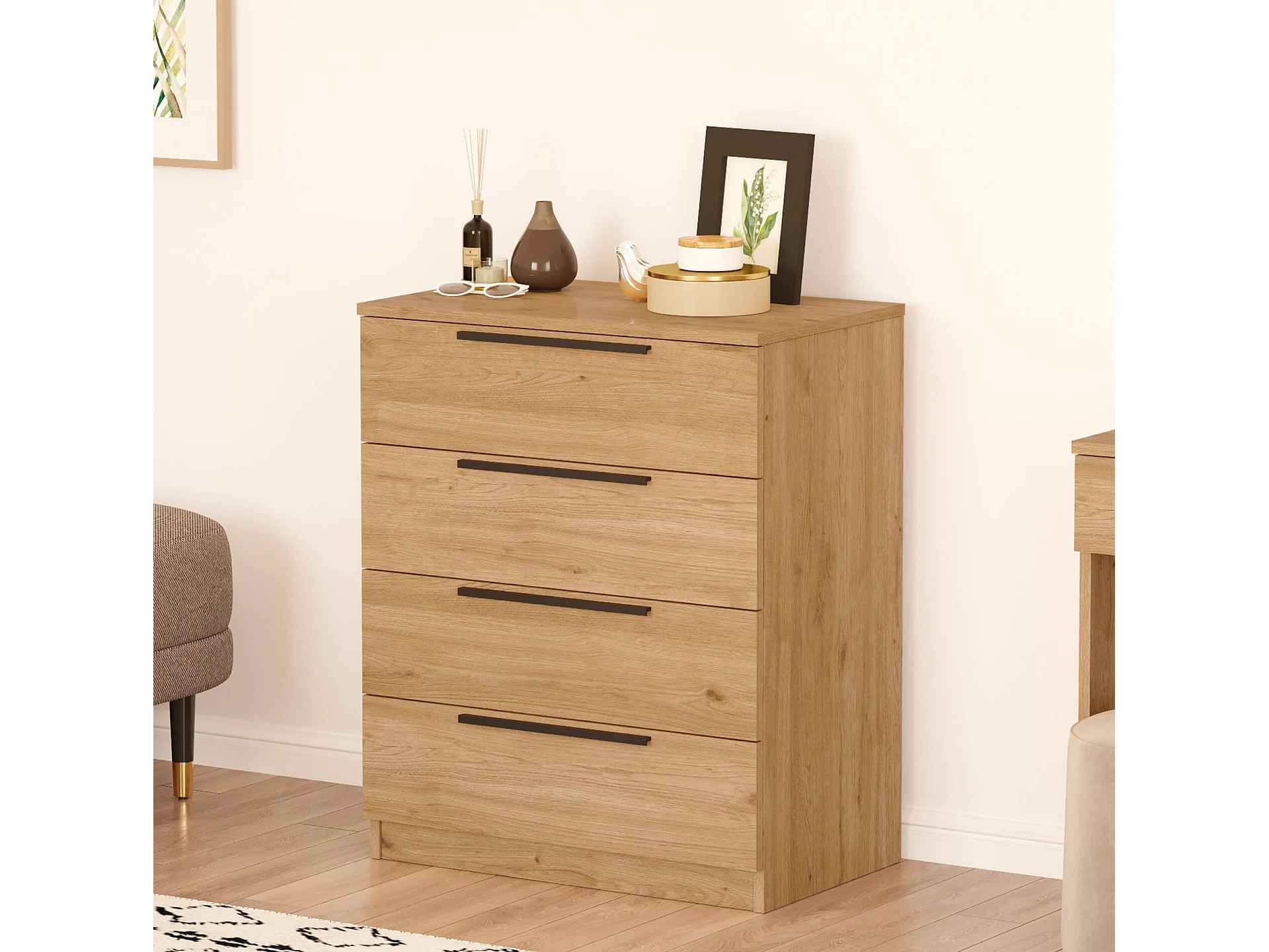Commode 4 tiroirs Rebecca Mobili Aoki 87,5x72x42 Panneau de particules Fer Marron Gris Foncé Moderne