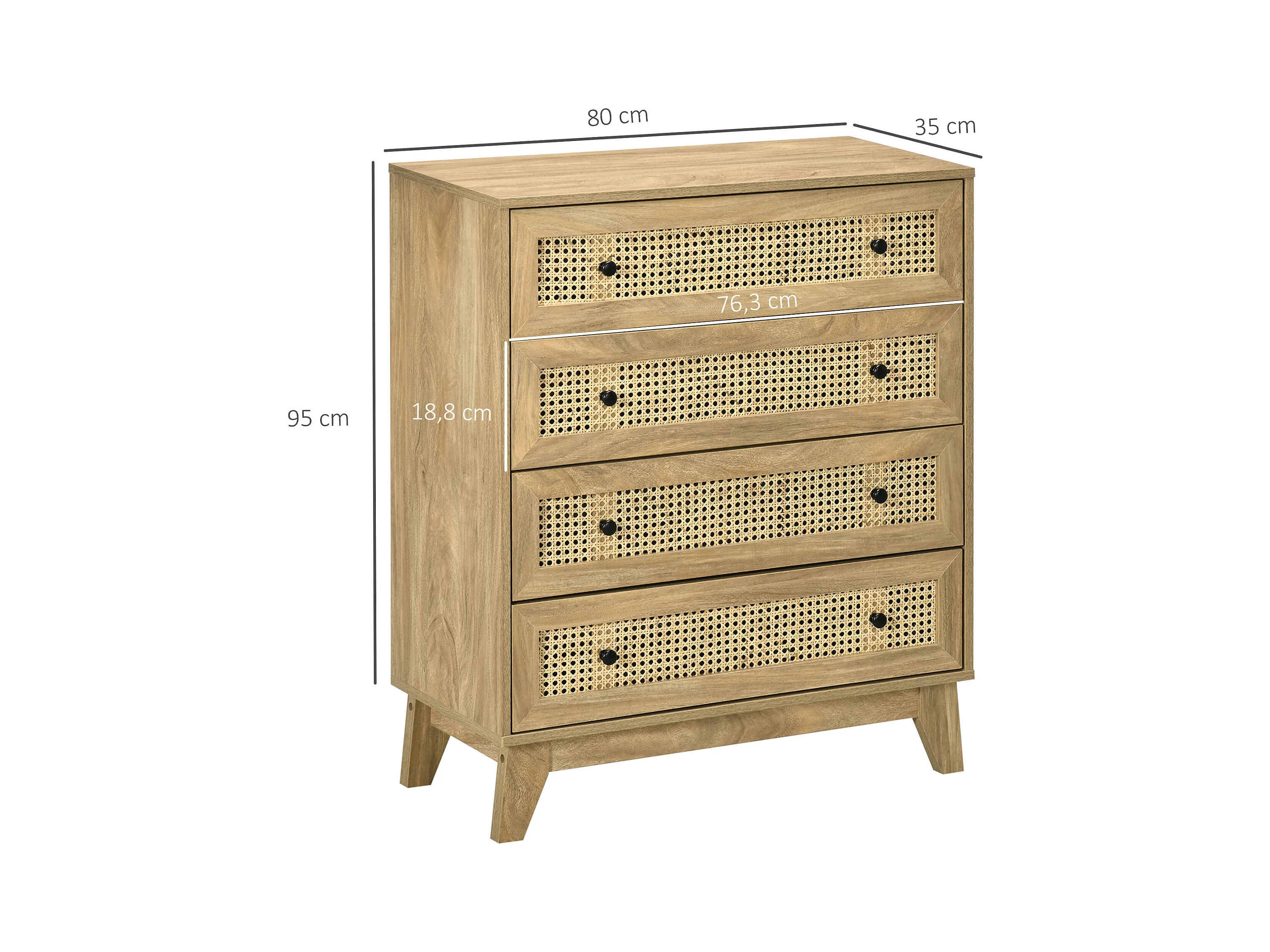 Commode 4 tiroirs style bohème chic cannage en rotin aspect bois de manguier