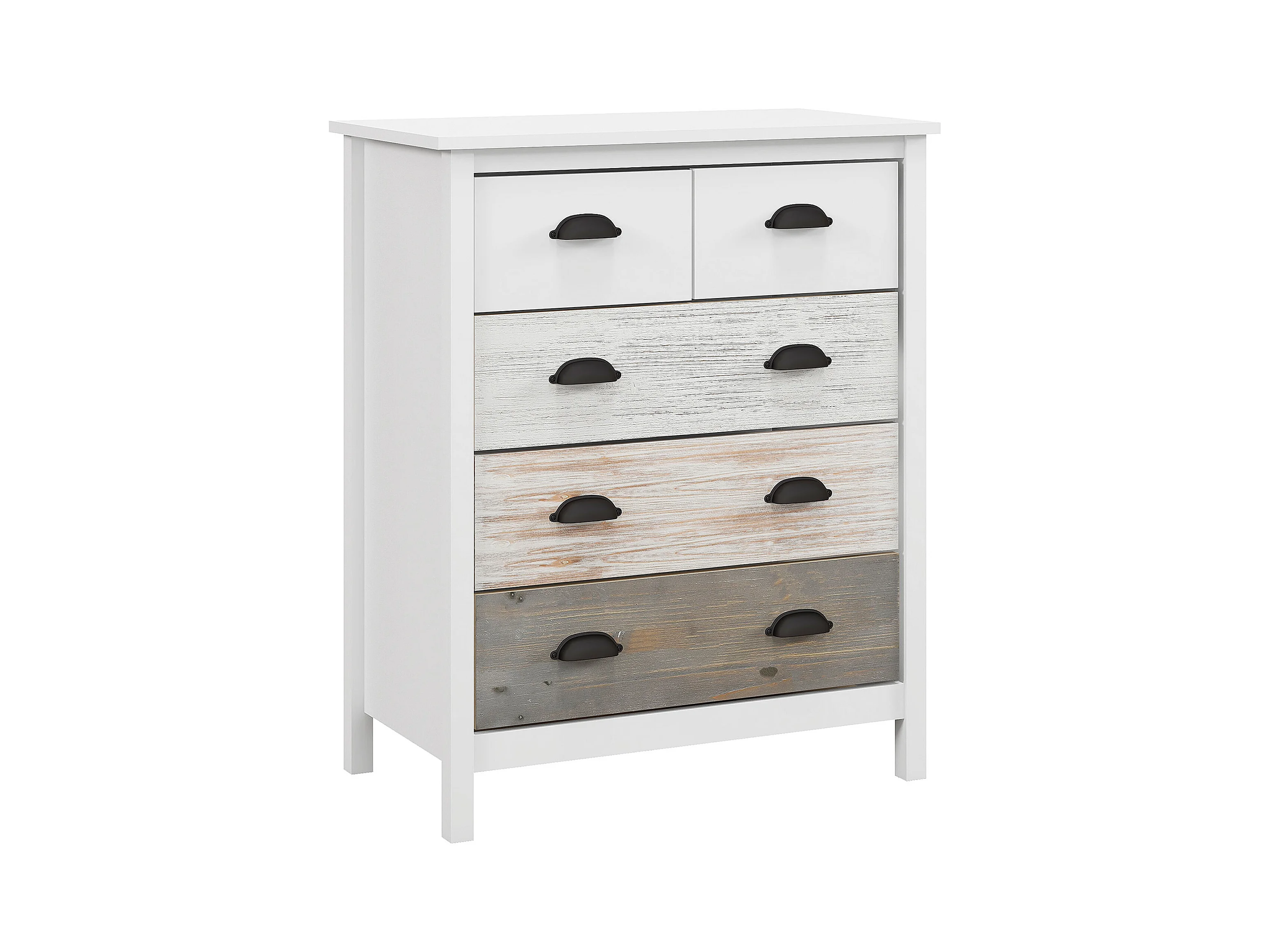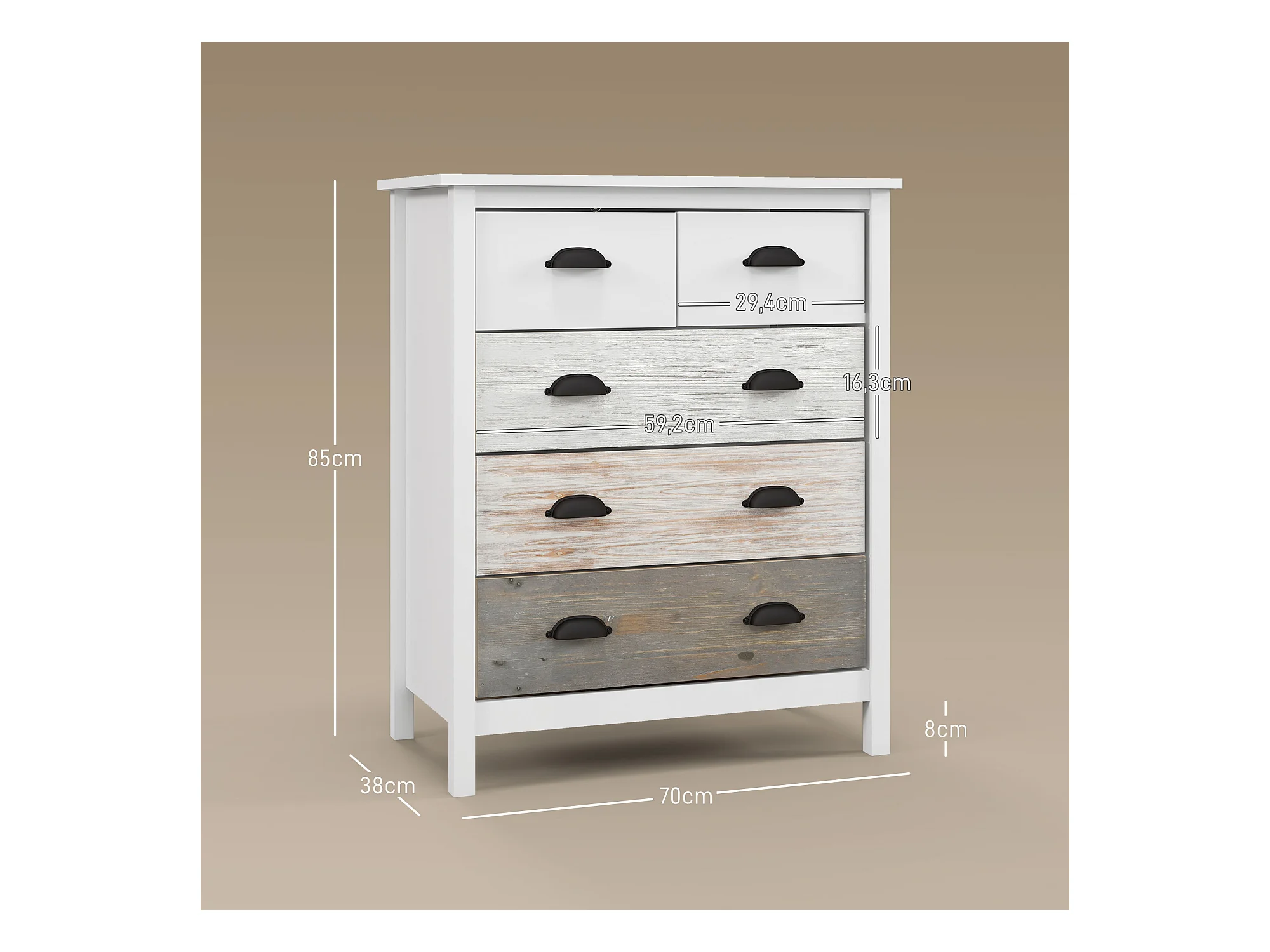 Commode 5 tiroirs avec protection anti-basculement, MDF, blanc (70x38x85cm)