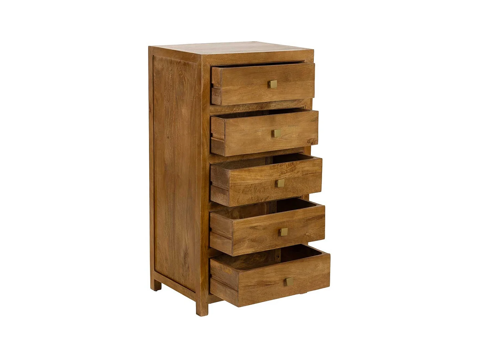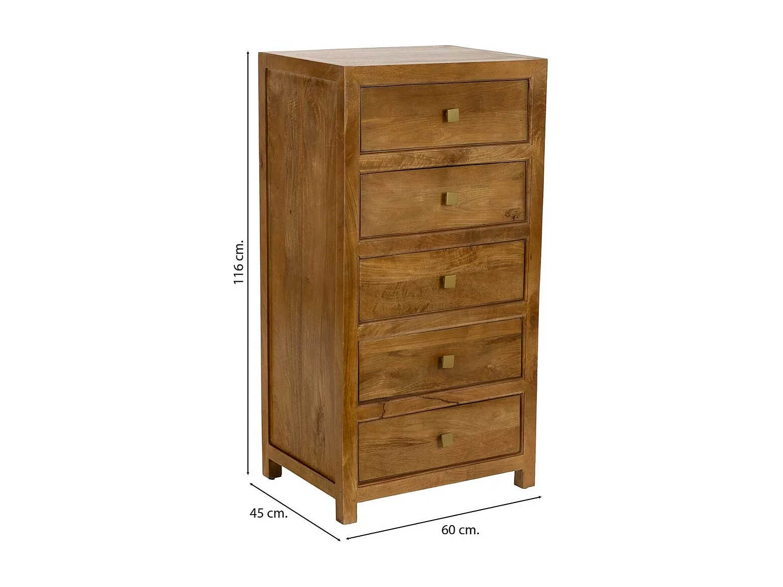 Commode 5 tiroirs en bois marron 60x45x116 cm