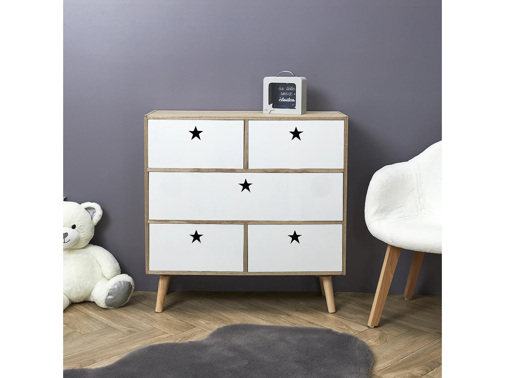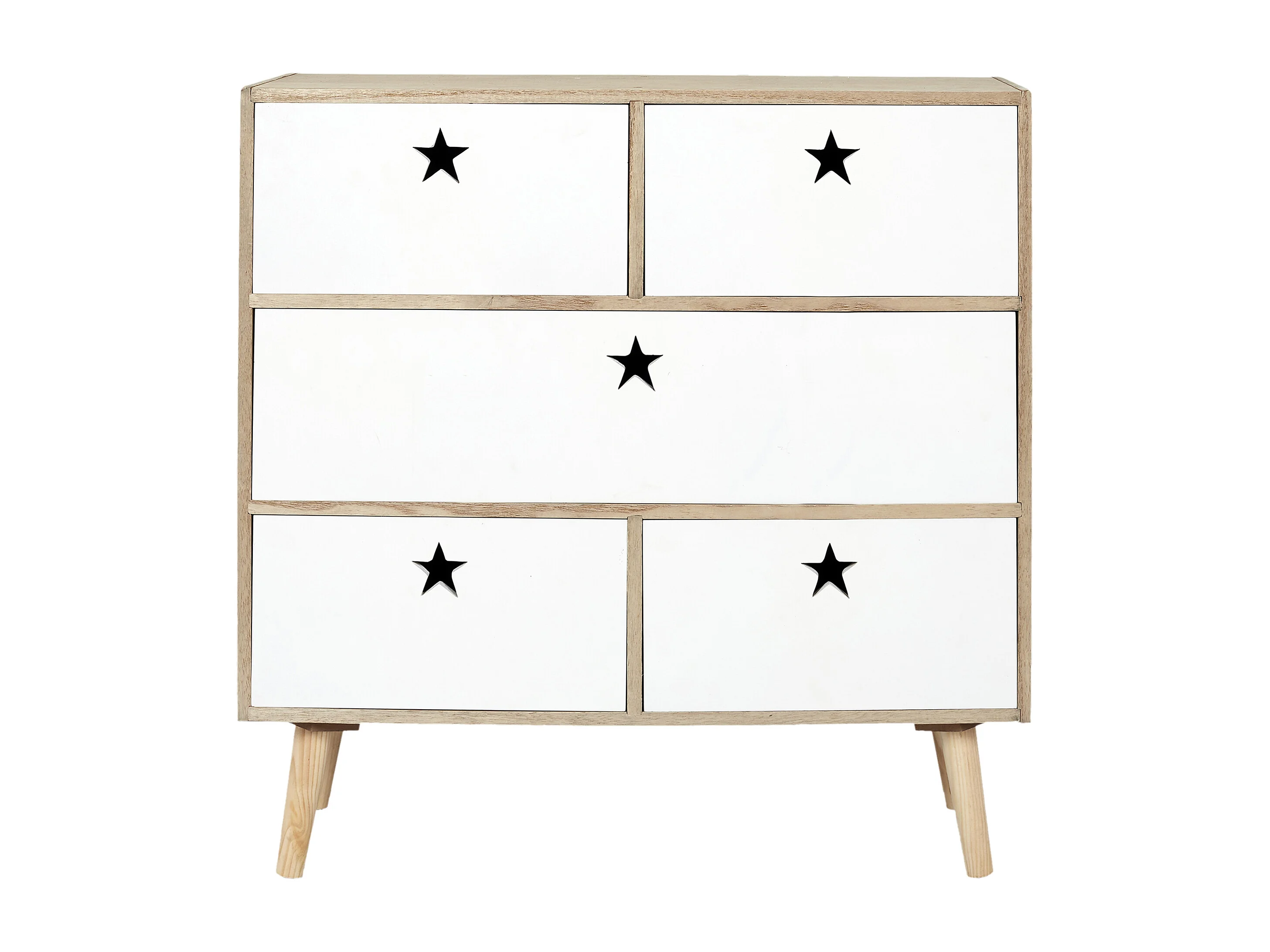 Commode 5 Tiroirs "Star" 70cm Blanc & Beige