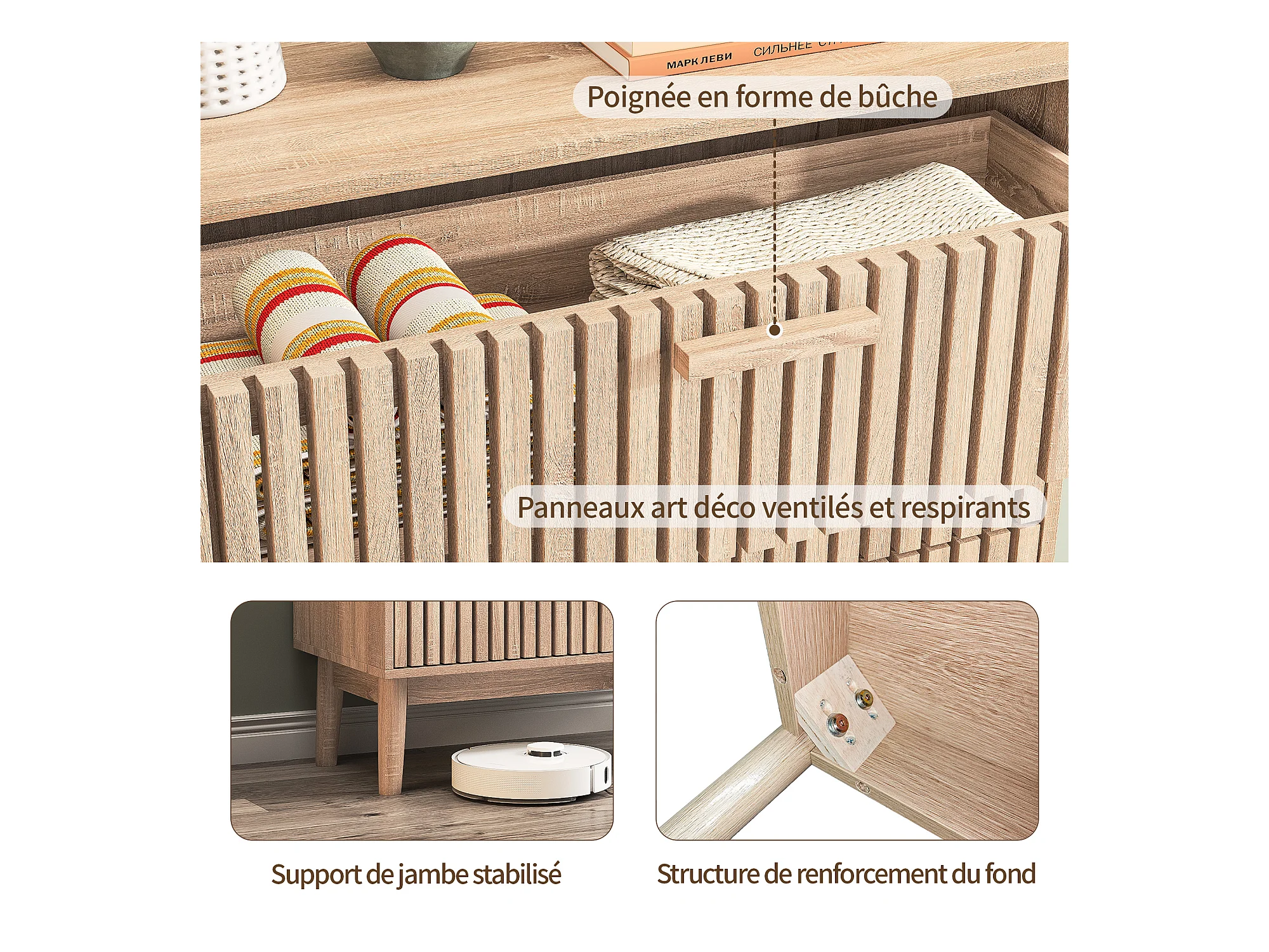 Commode 6 tiroirs 115 cm Couleur bois naturel, 100 x 34 x 73cm