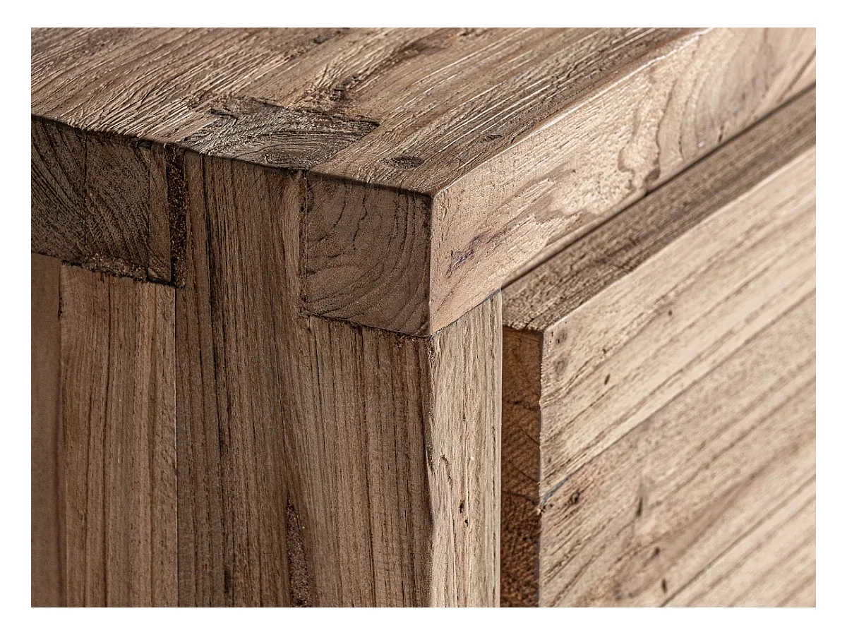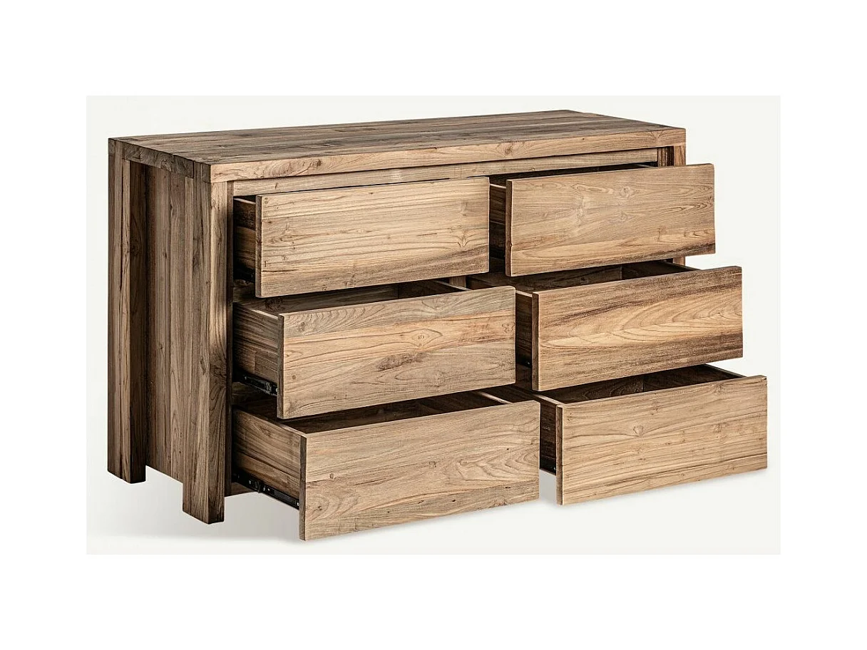 Commode 6 tiroirs bois massif naturel vieilli style colonial Rubha 140cm