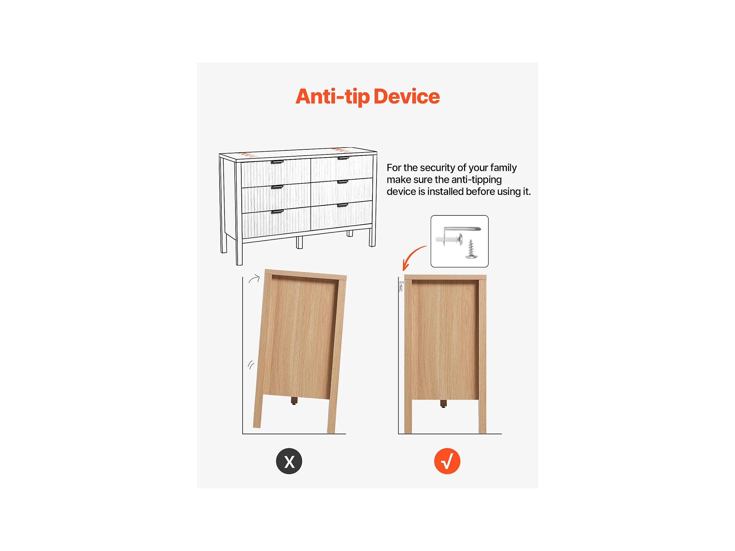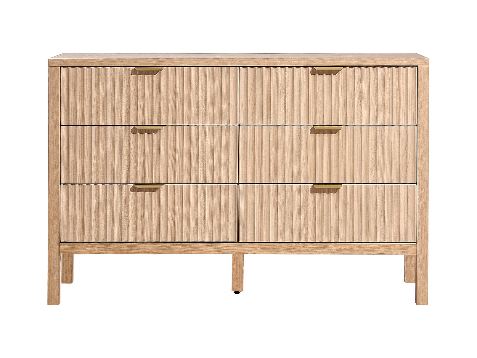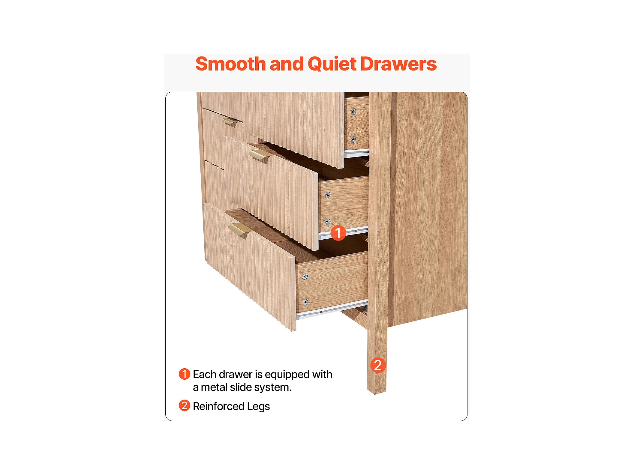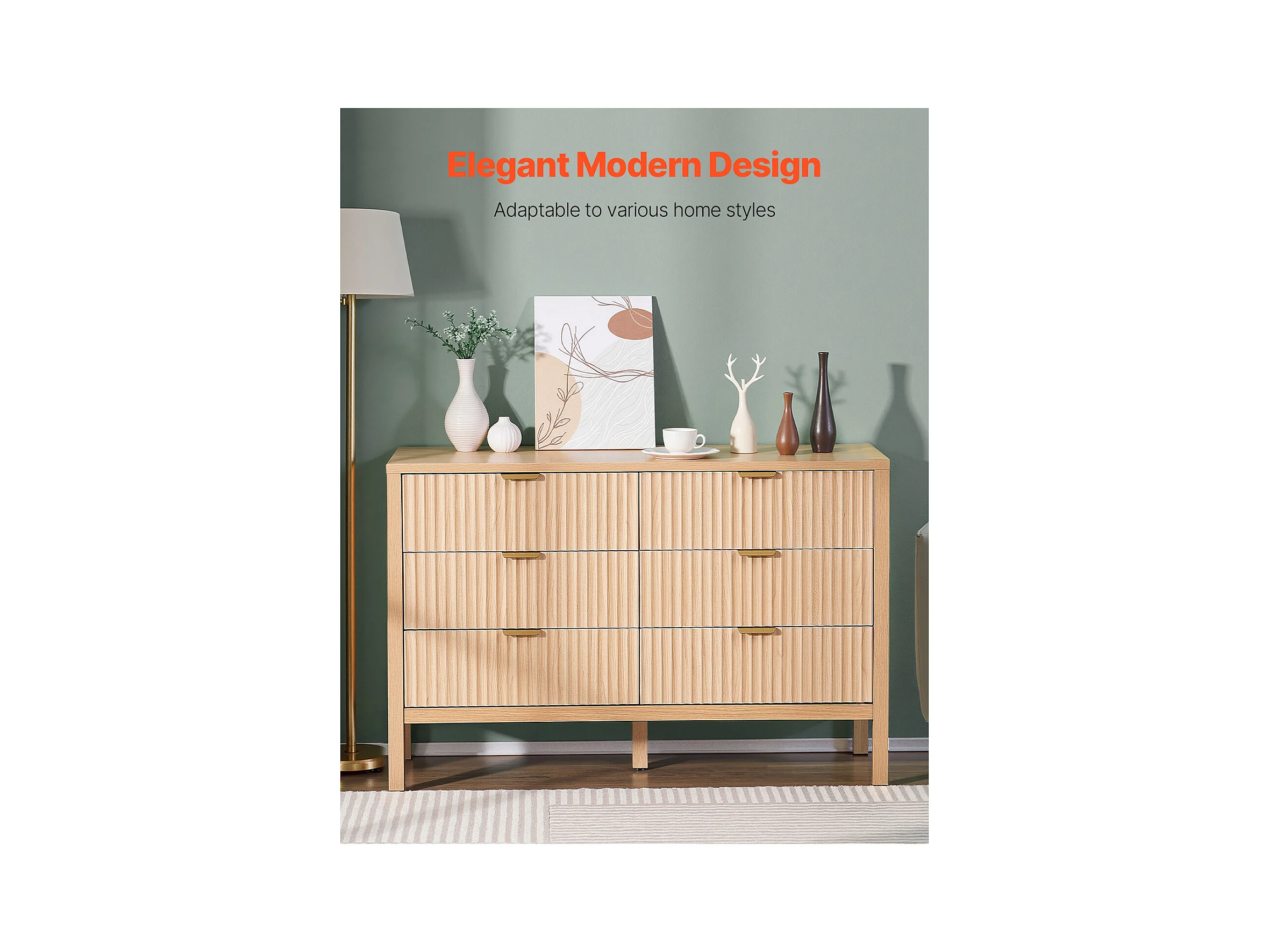 Commode 6 Tiroirs Cannelés SucceBuy, Bois, Système Coulissant/Anti-Basculement, Style Moderne, Organisateur, Salon/Couloir/Chambre/Entrée, Bois Clair