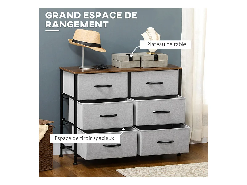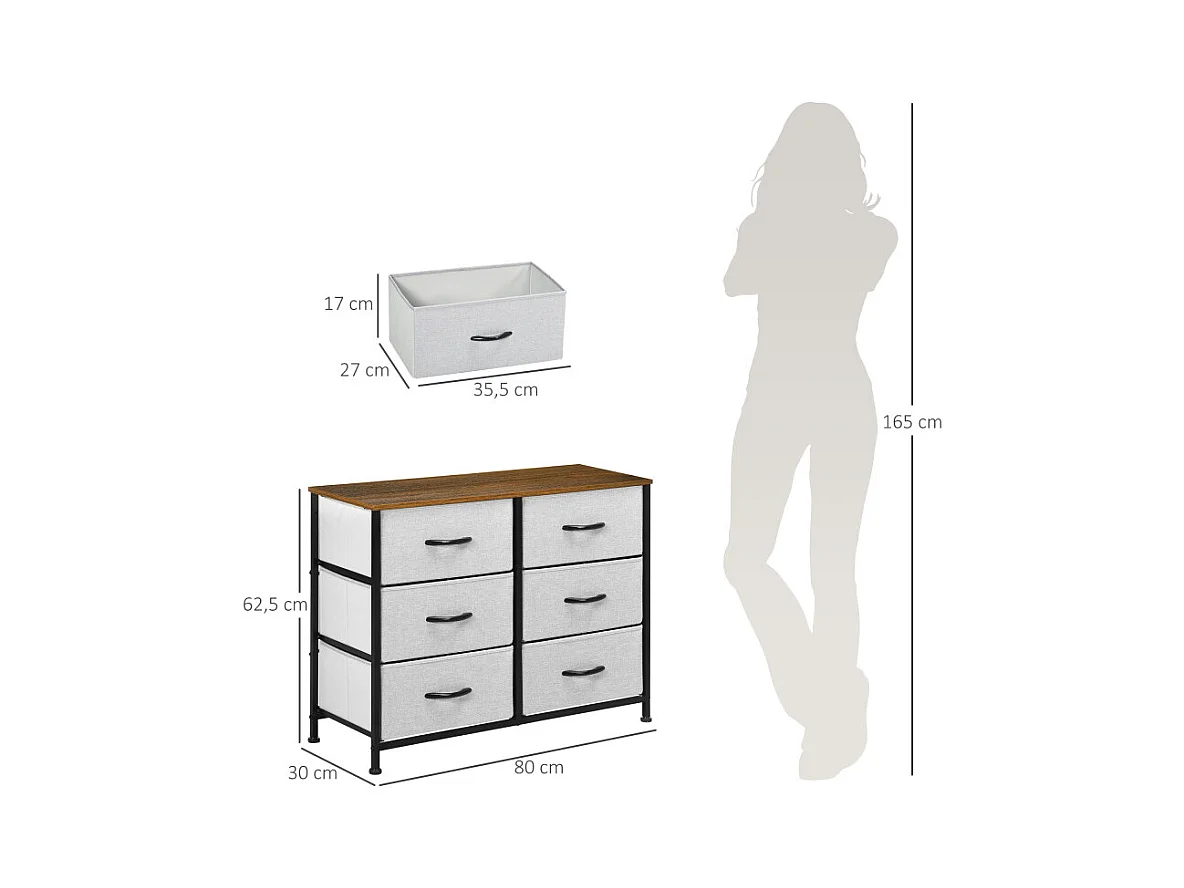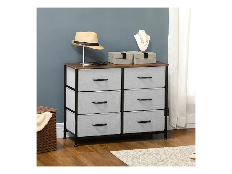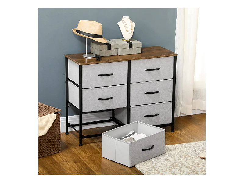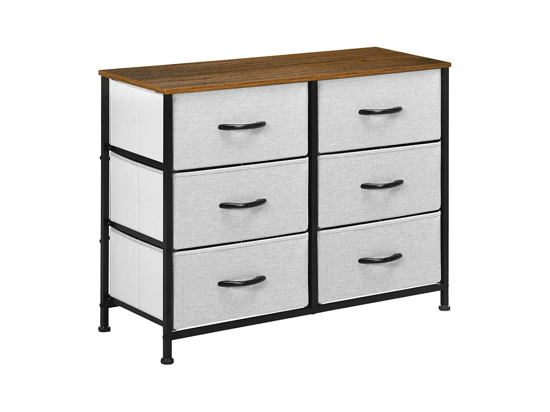 Commode 6 tiroirs pliables ELLIOT aspect bois, noire et grise