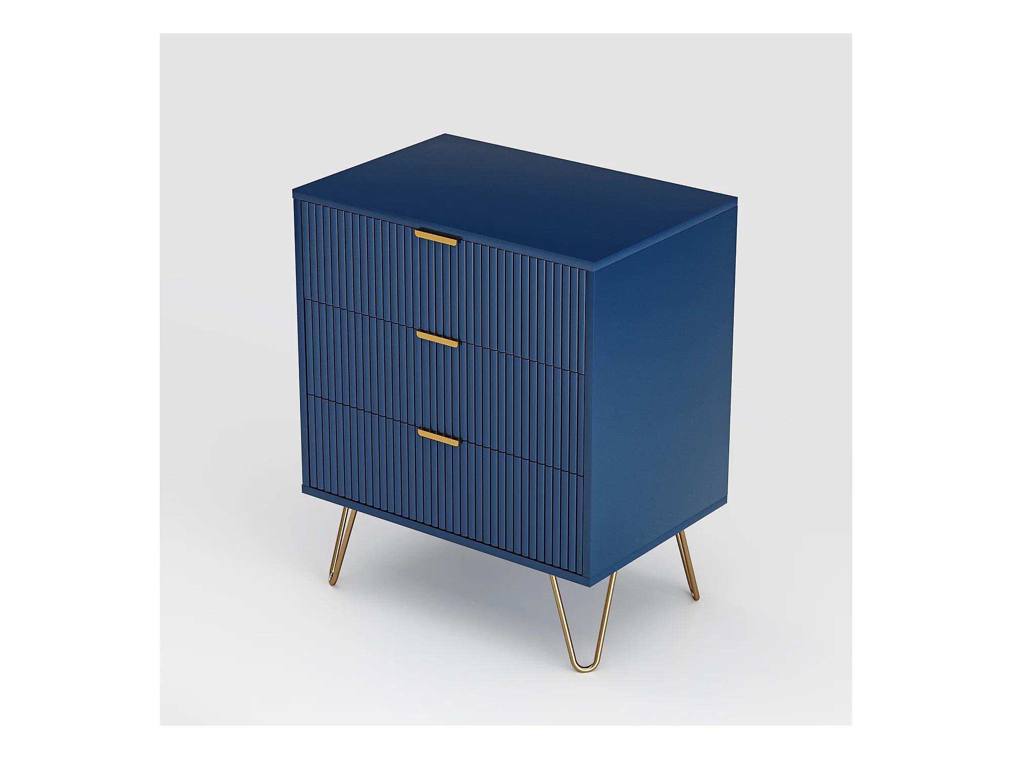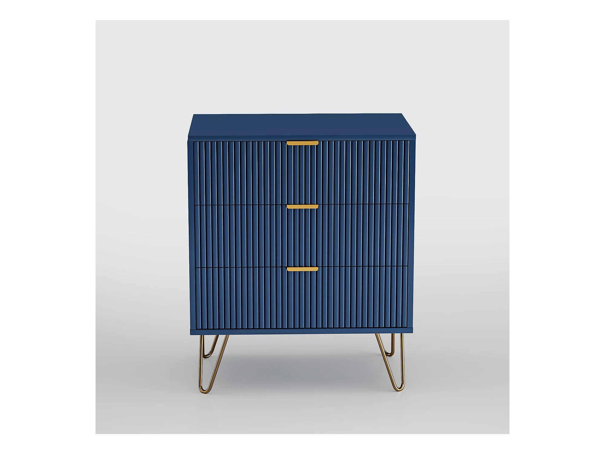 Commode 70x60x40cm - avec 3 tiroirs coulissants, pieds en métal, buffet pour chambre, commode design scandinave - Bleu marine