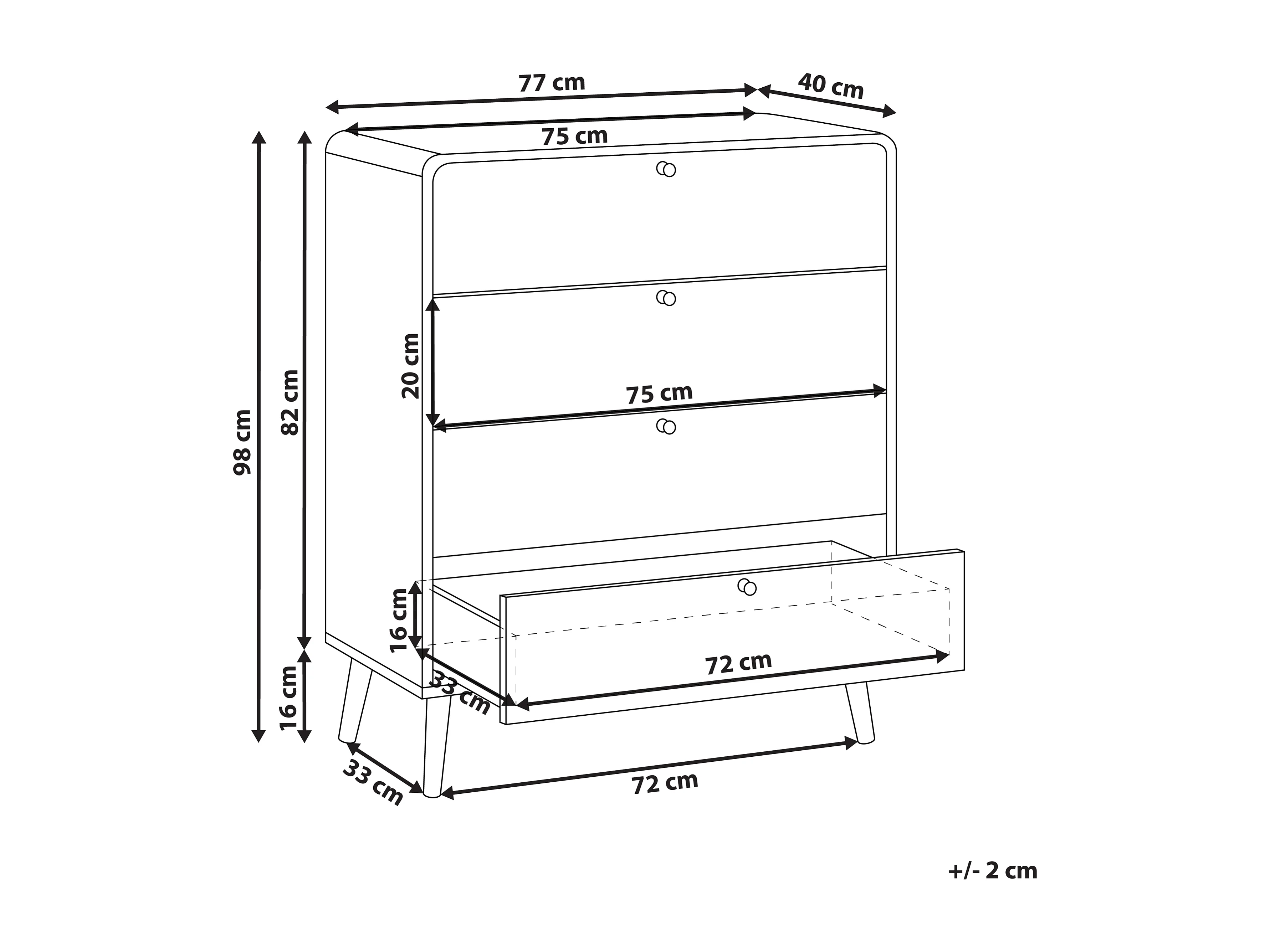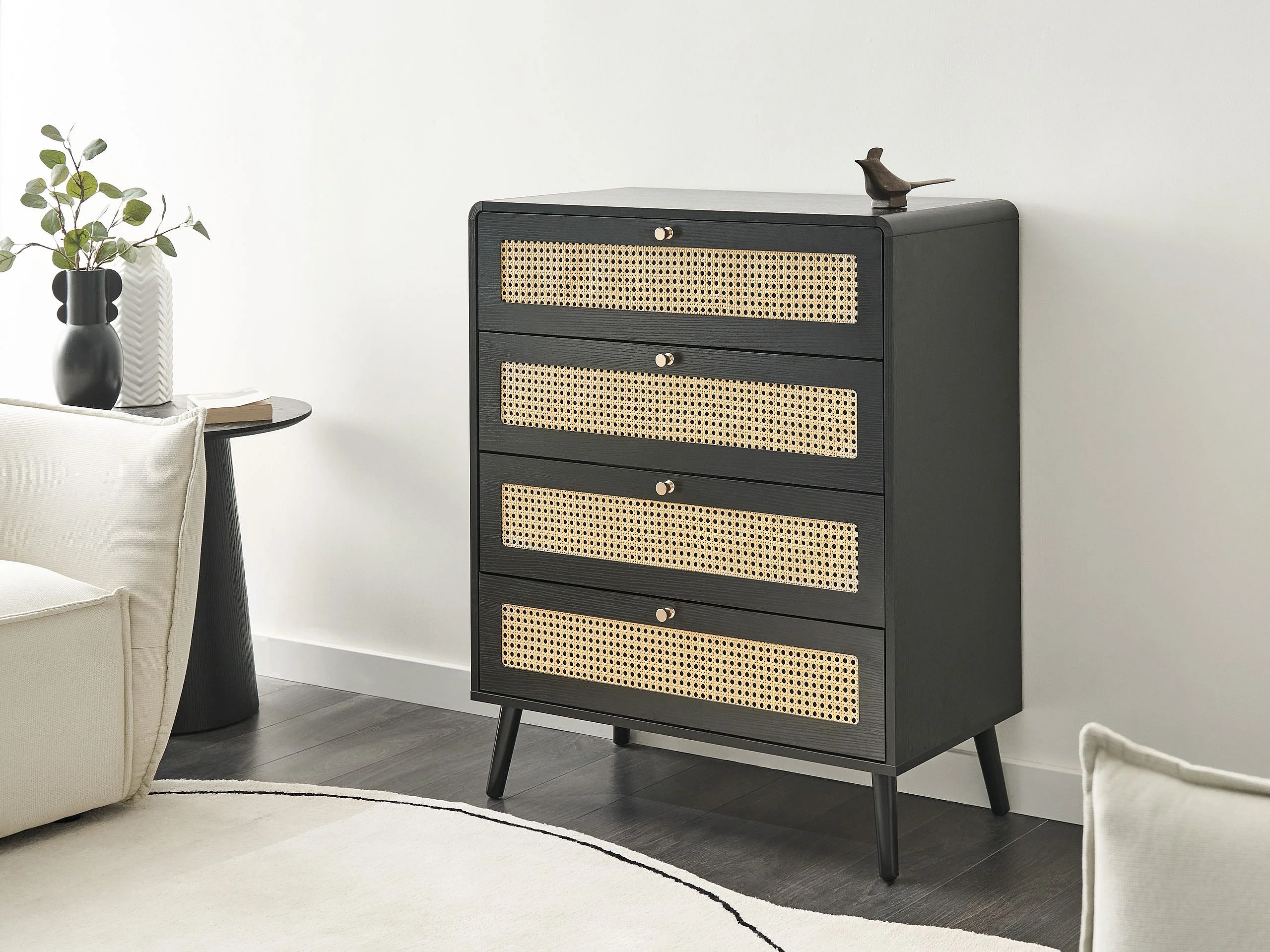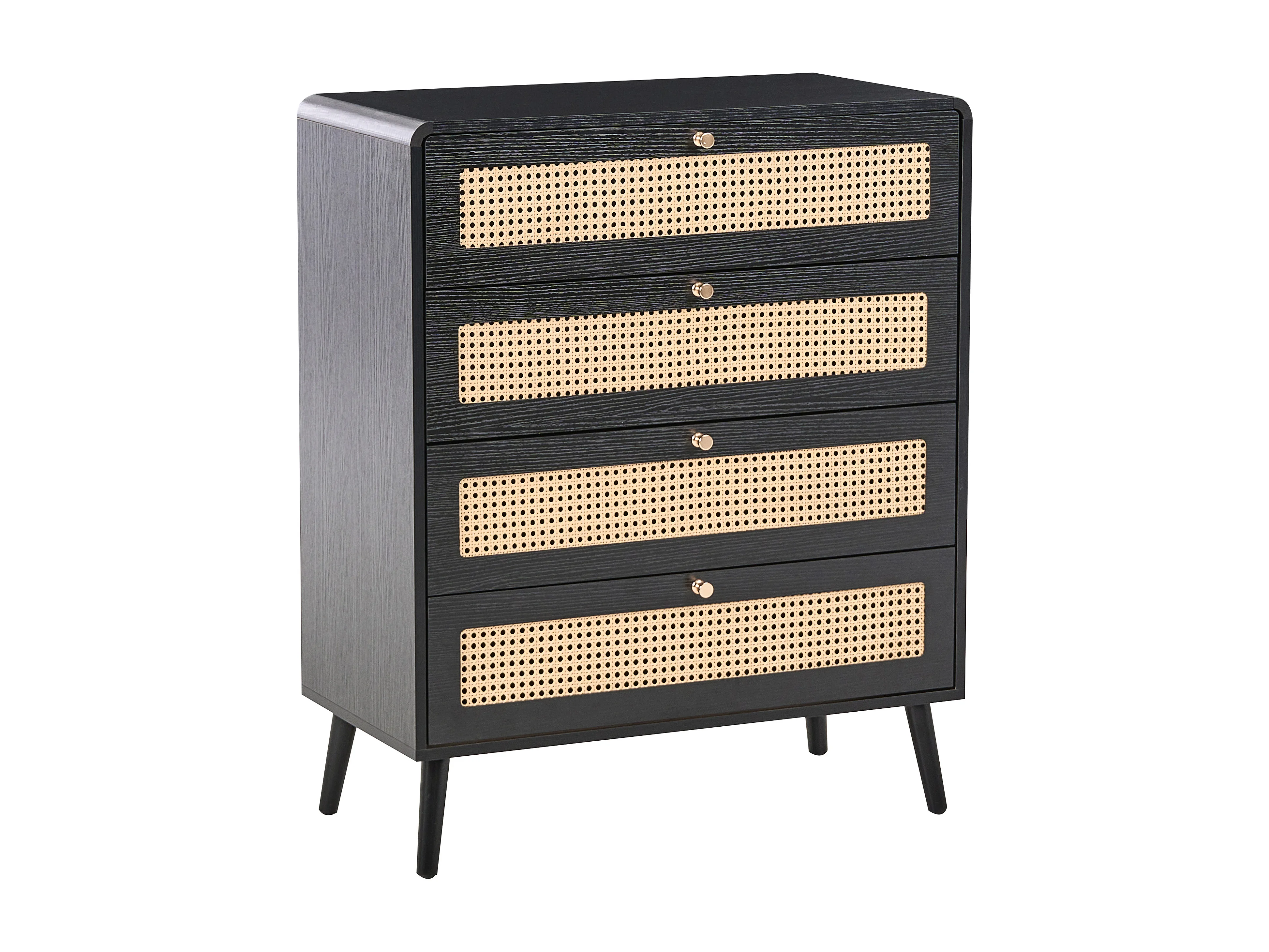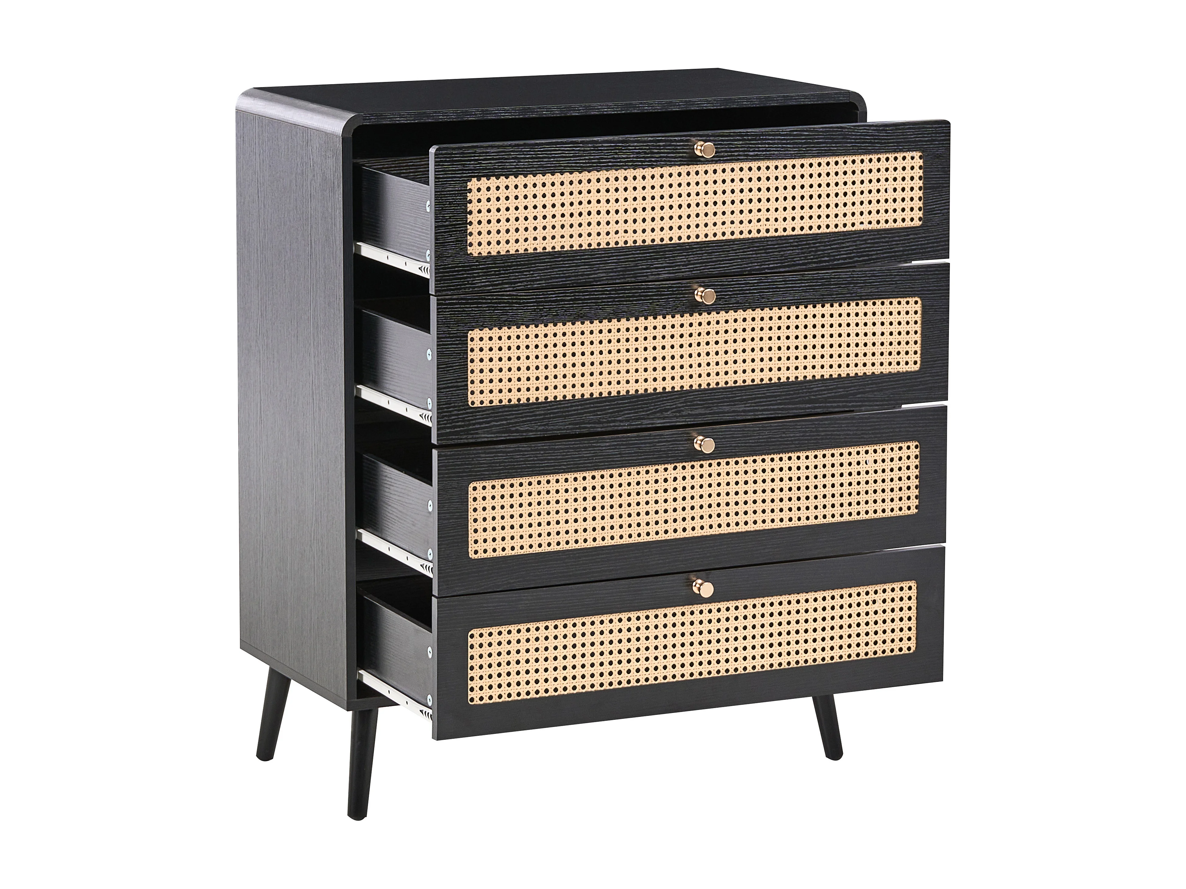 Commode Basilea en mélamine, 4 tiroirs avec rails métalliques , 77.9 cm X 107.1 cm X 41.3 cm , Noir