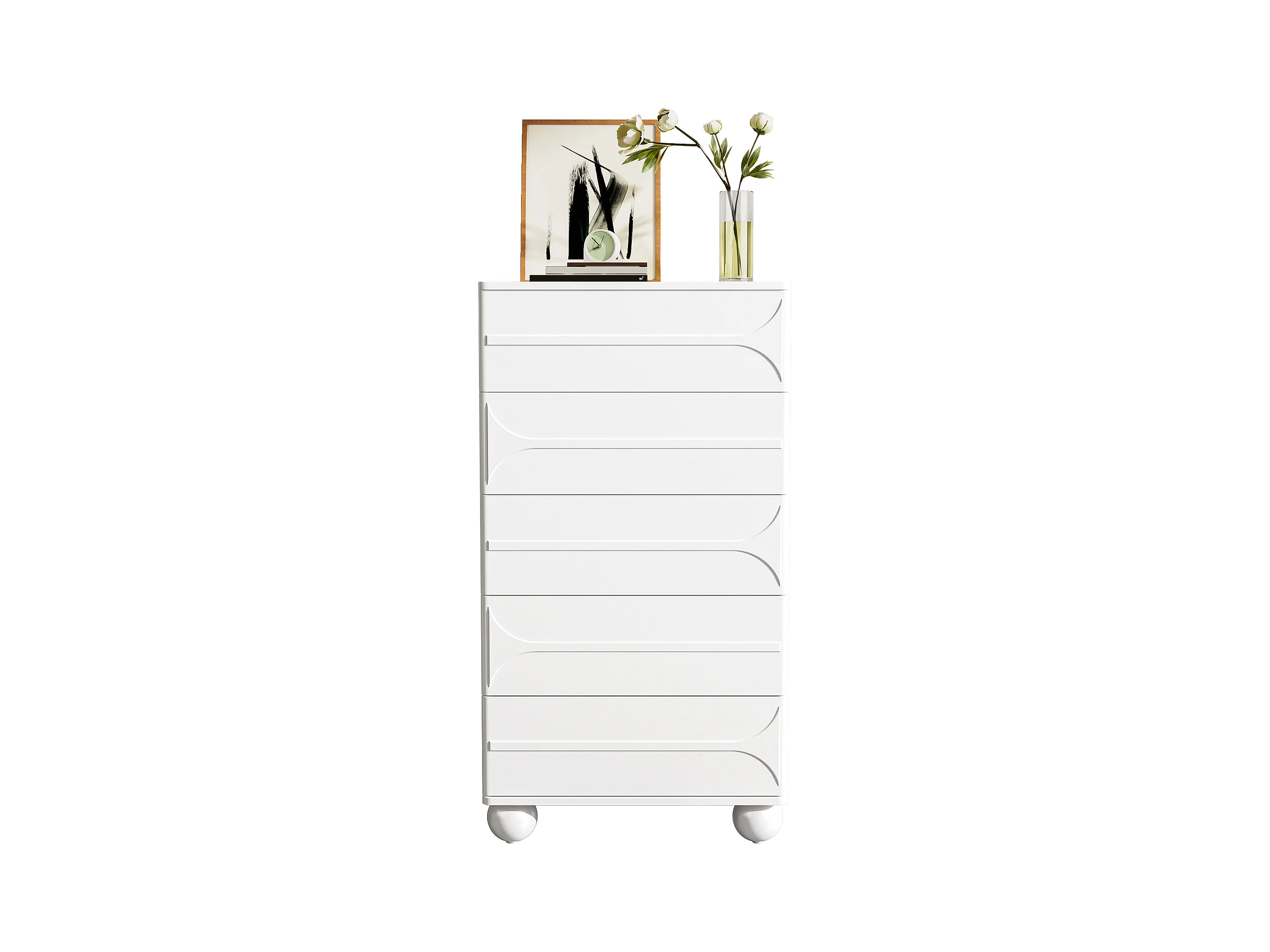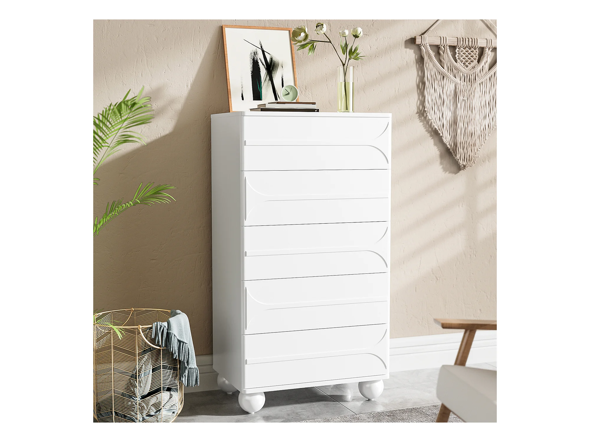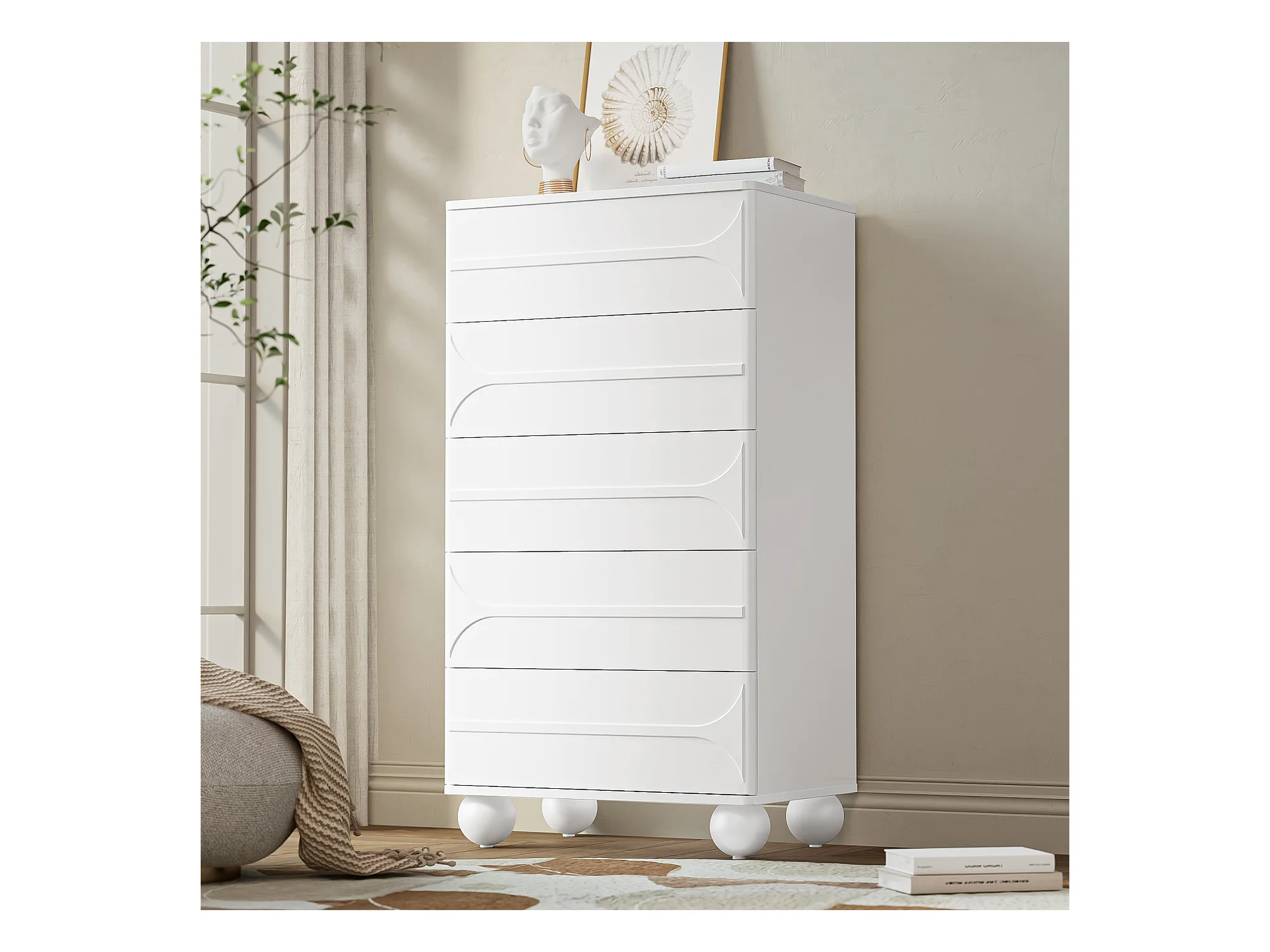 Commode à 5 tiroirs - 60 x 40 x 109 cm - design élégant en relief – pieds en métal - aggloméré + MDF - blanc