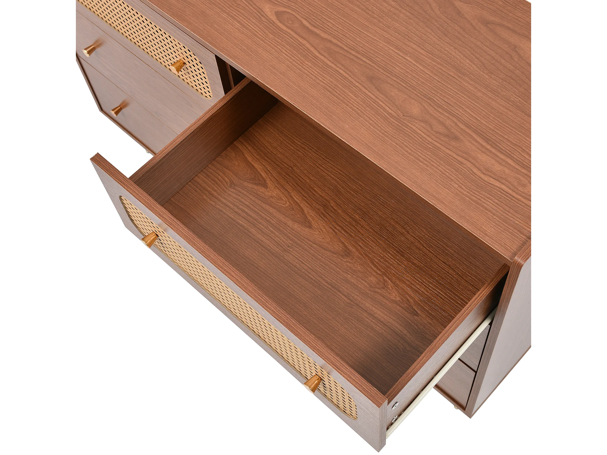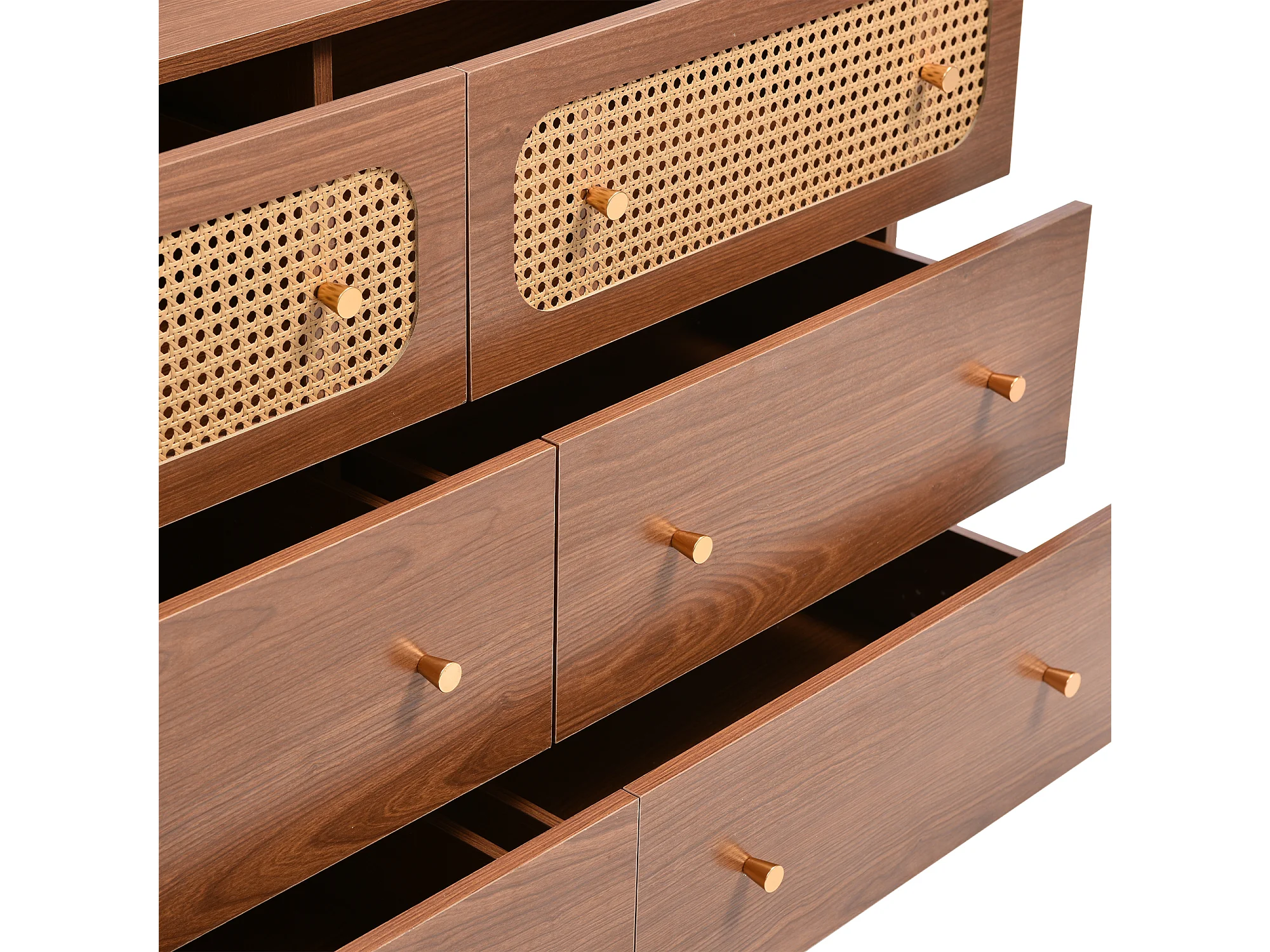 Commode à 6 tiroirs, buffet haut enfilade en rotin pour chambres - naturel - 90x120x40 cm
