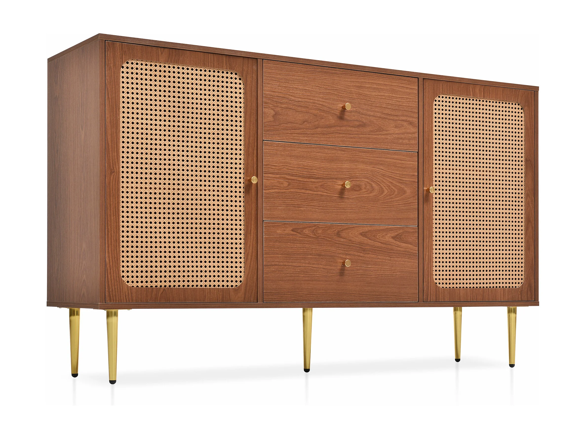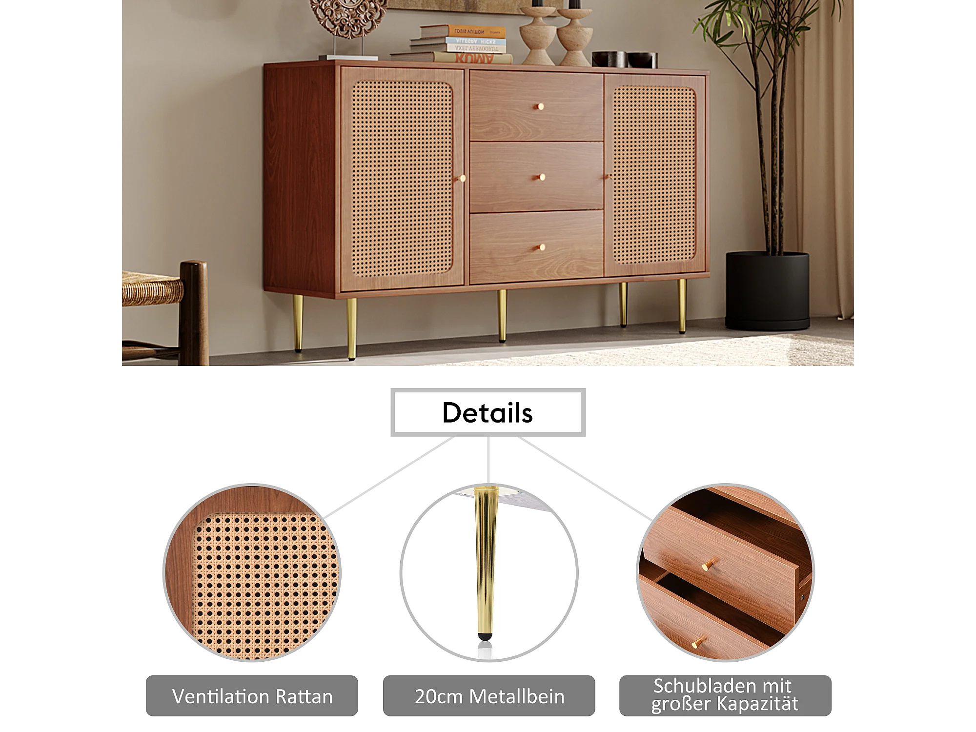Buffet naturel avec 2 portes et 3 tiroirs - pour salon et chambre - 90x150x40 cm