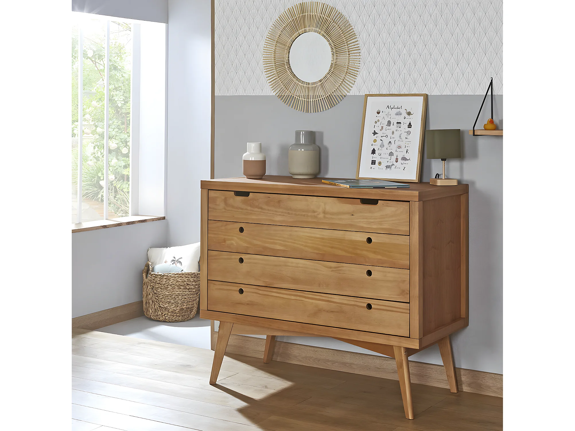 Commode à langer 4 tiroirs bois massif bois naturel MARLEY