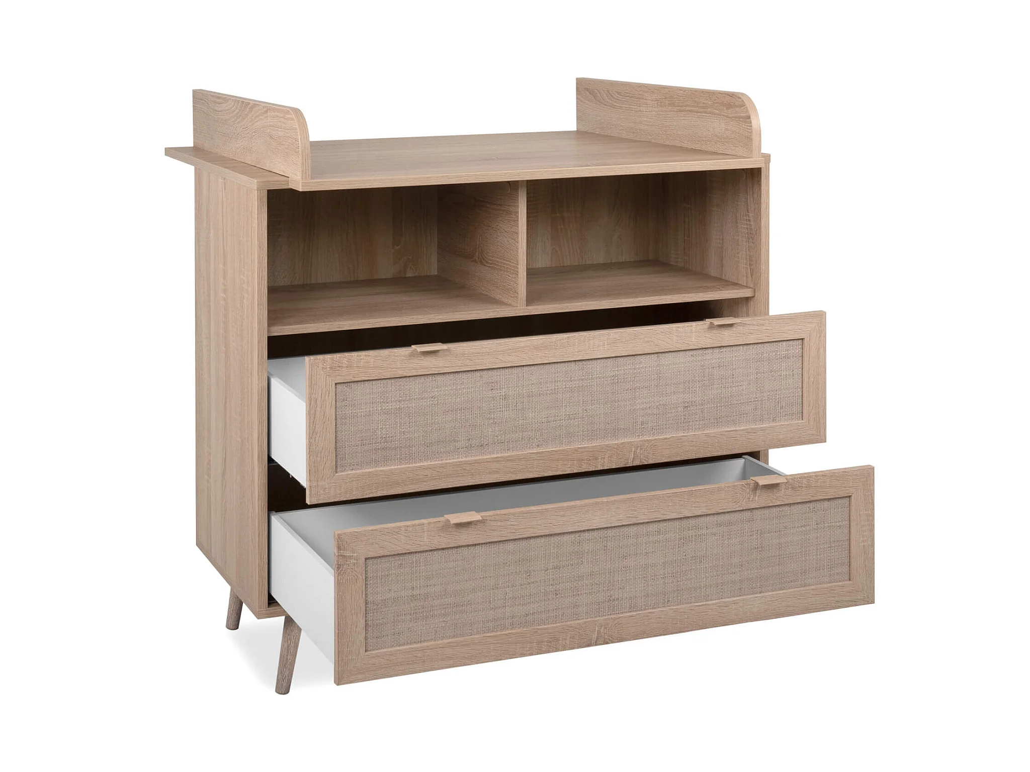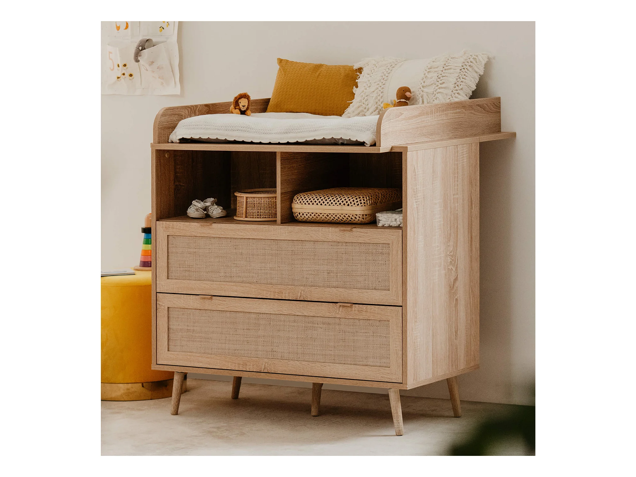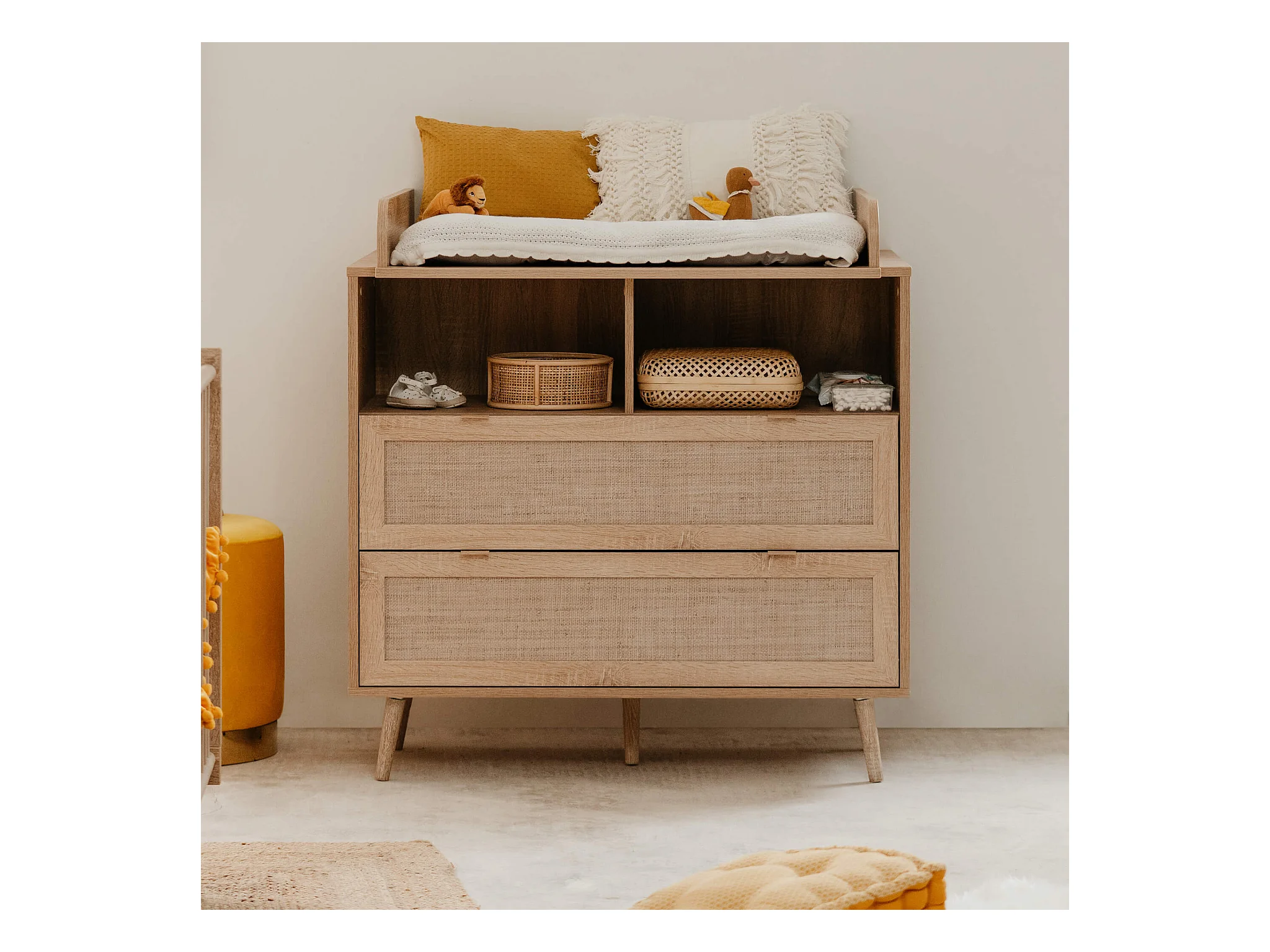Commode à langer bébé 2 tiroirs en bois naturel effet cannage - CO7085