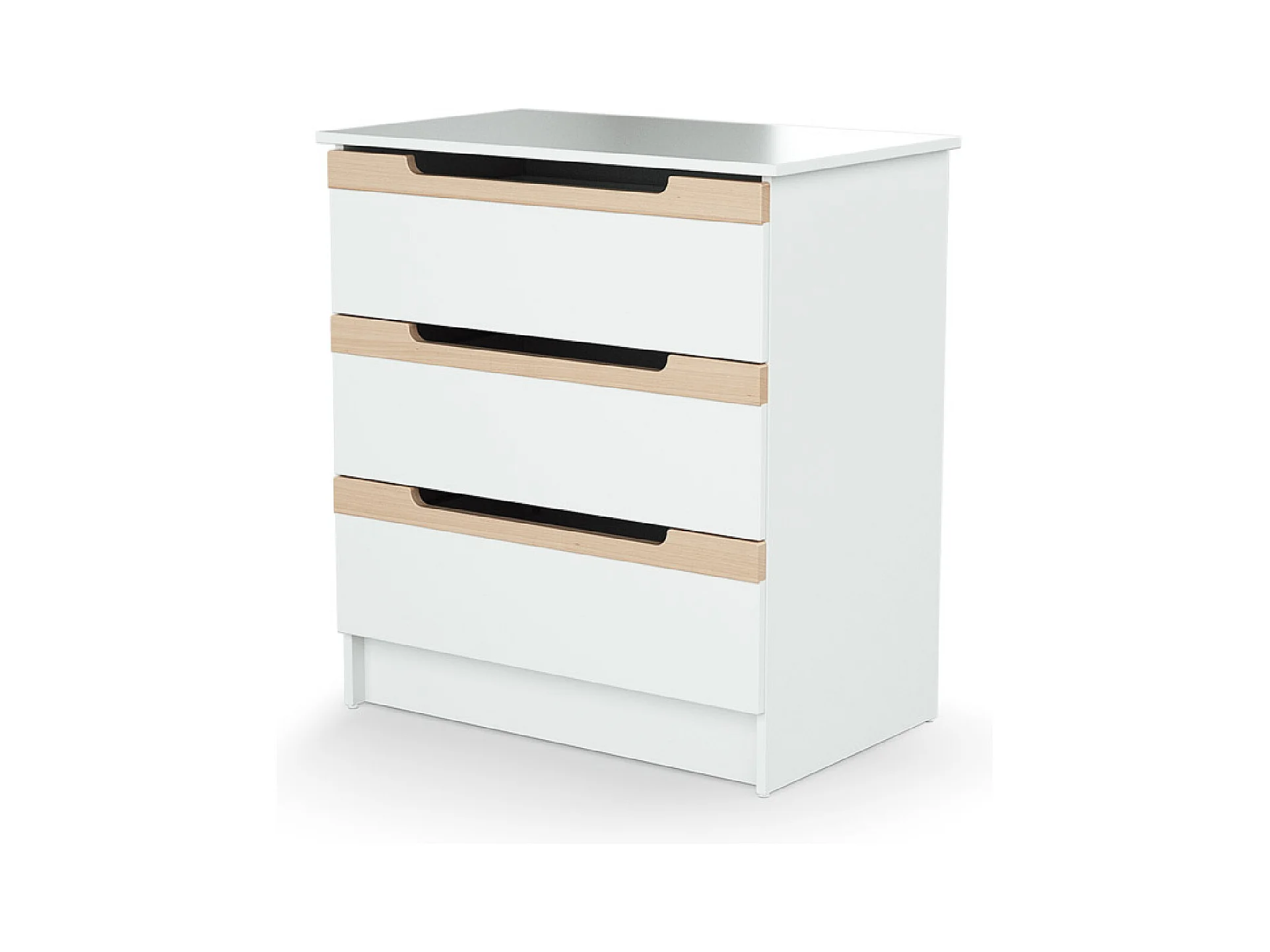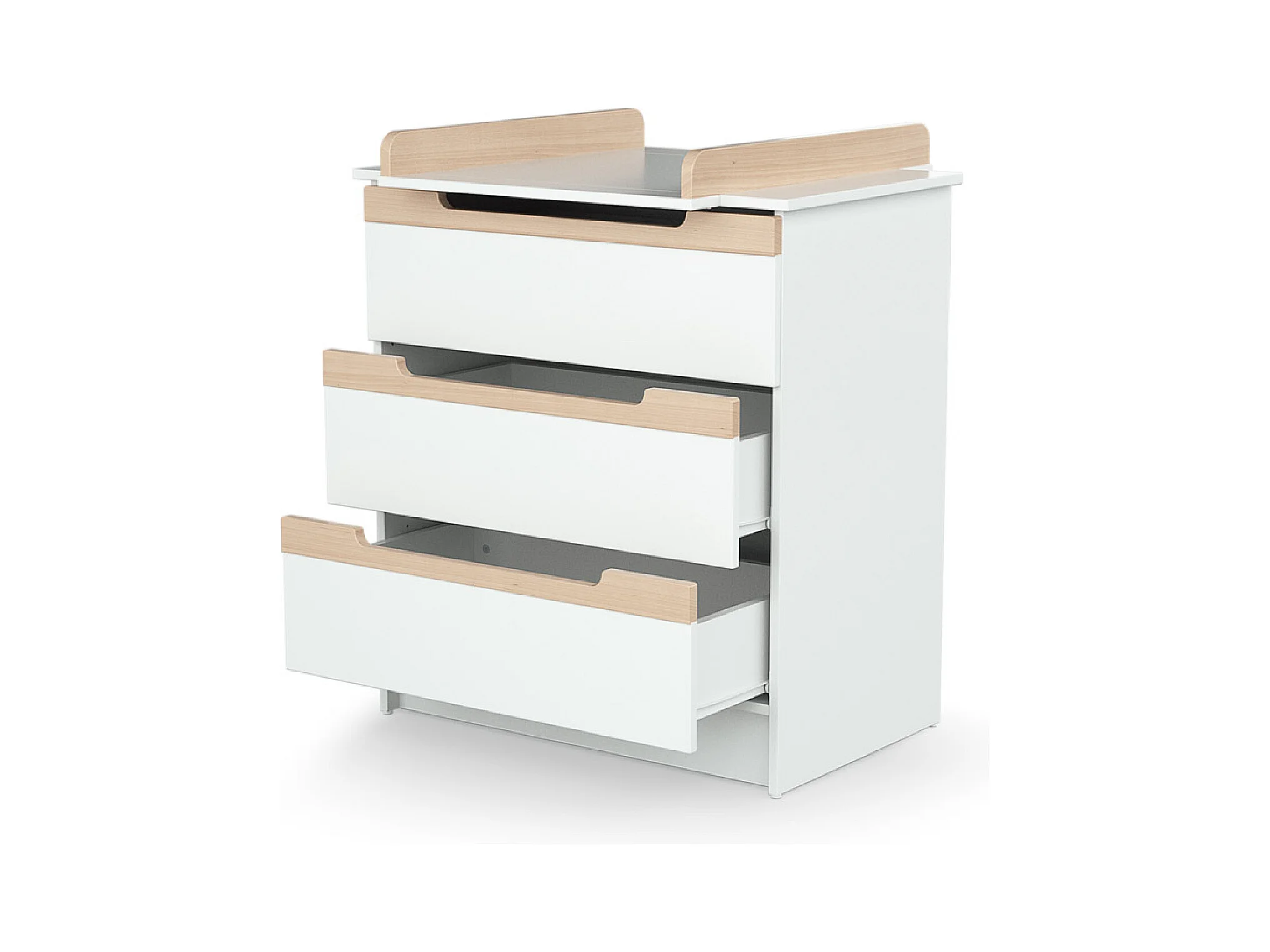 Commode à langer 3 tiroirs en bois CARROUSEL Blanc et Hêtre Verni