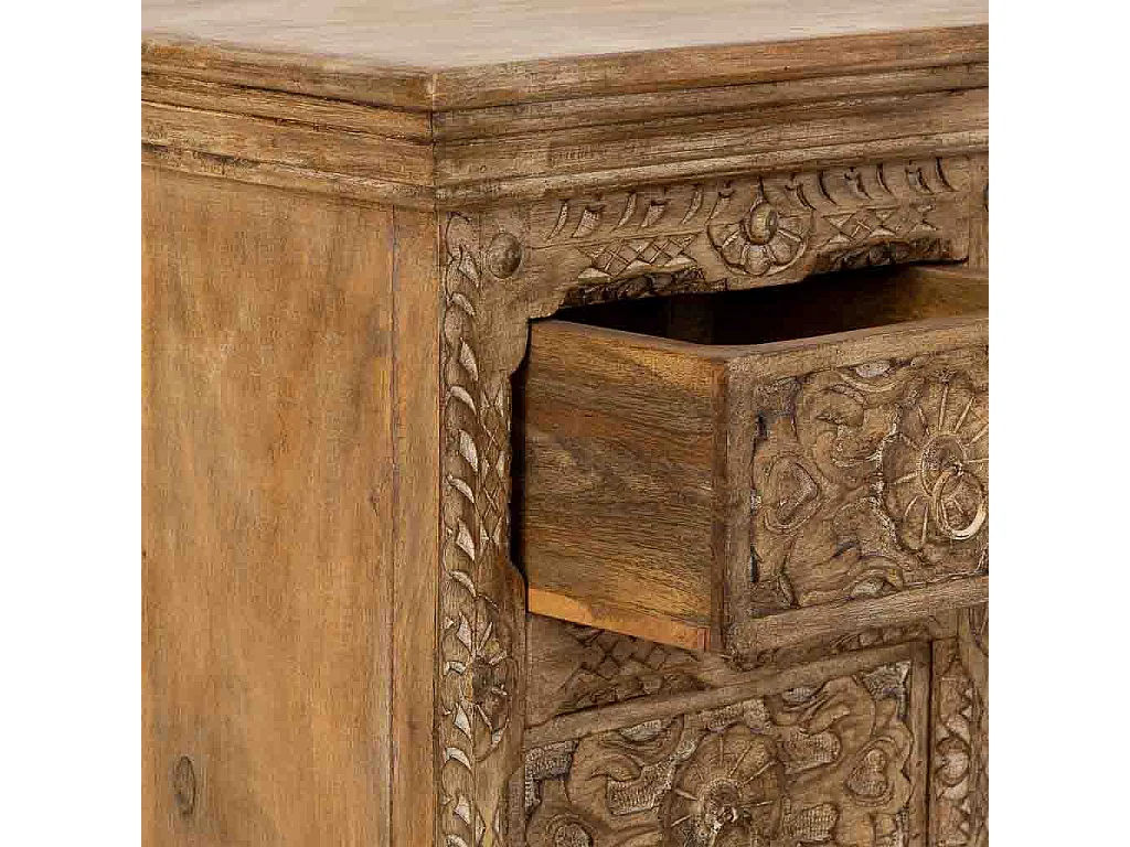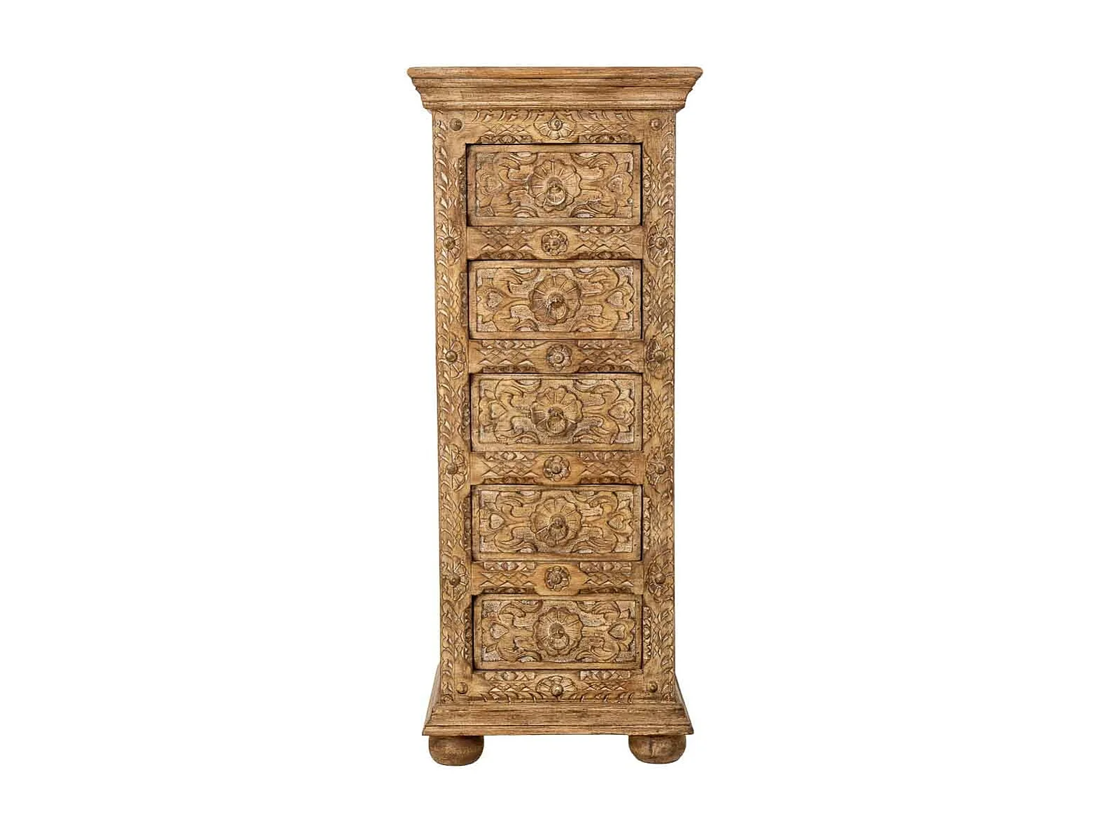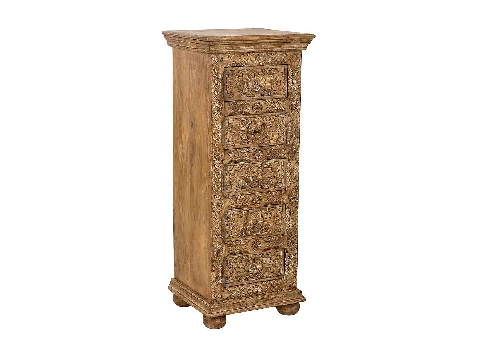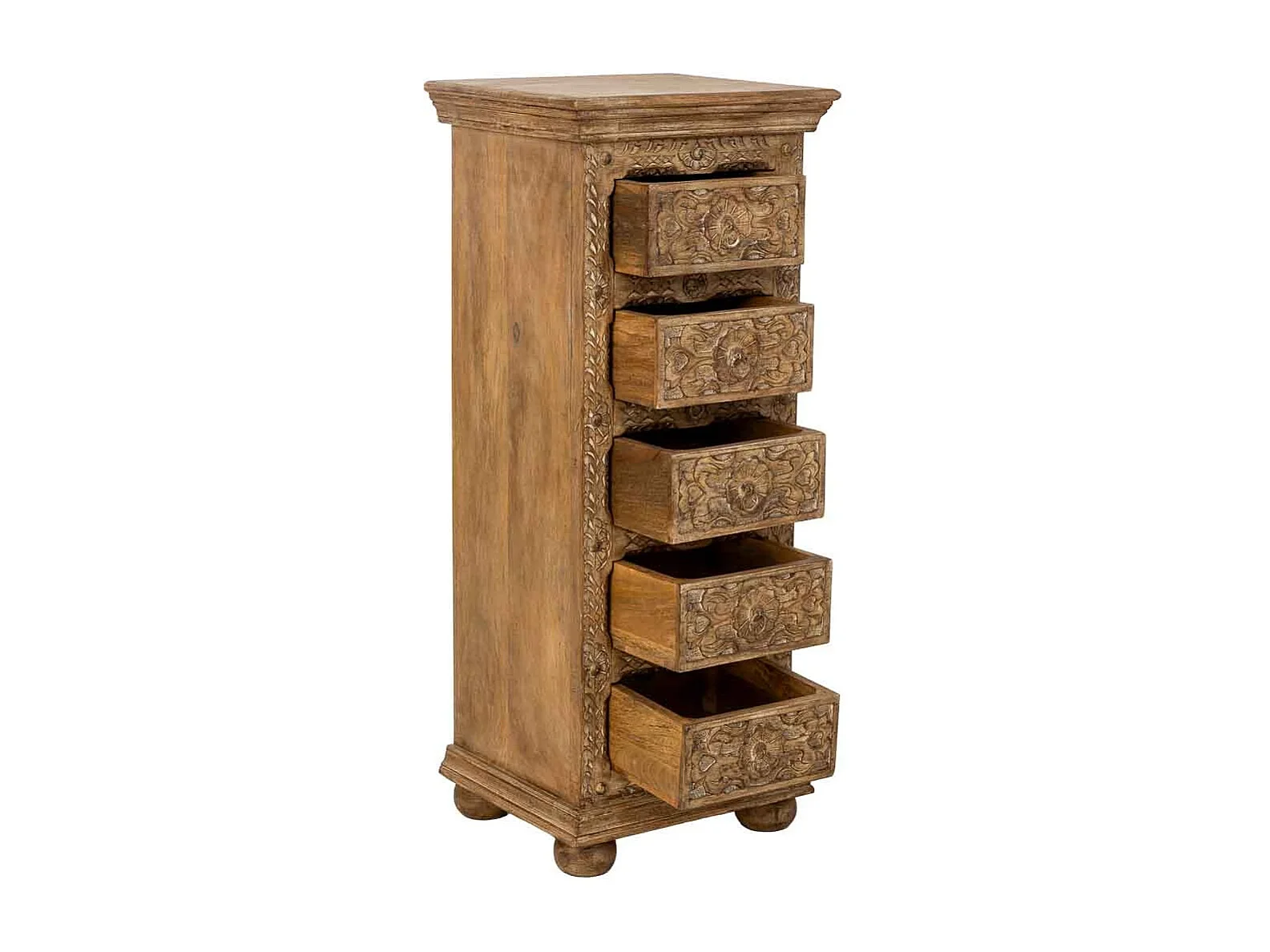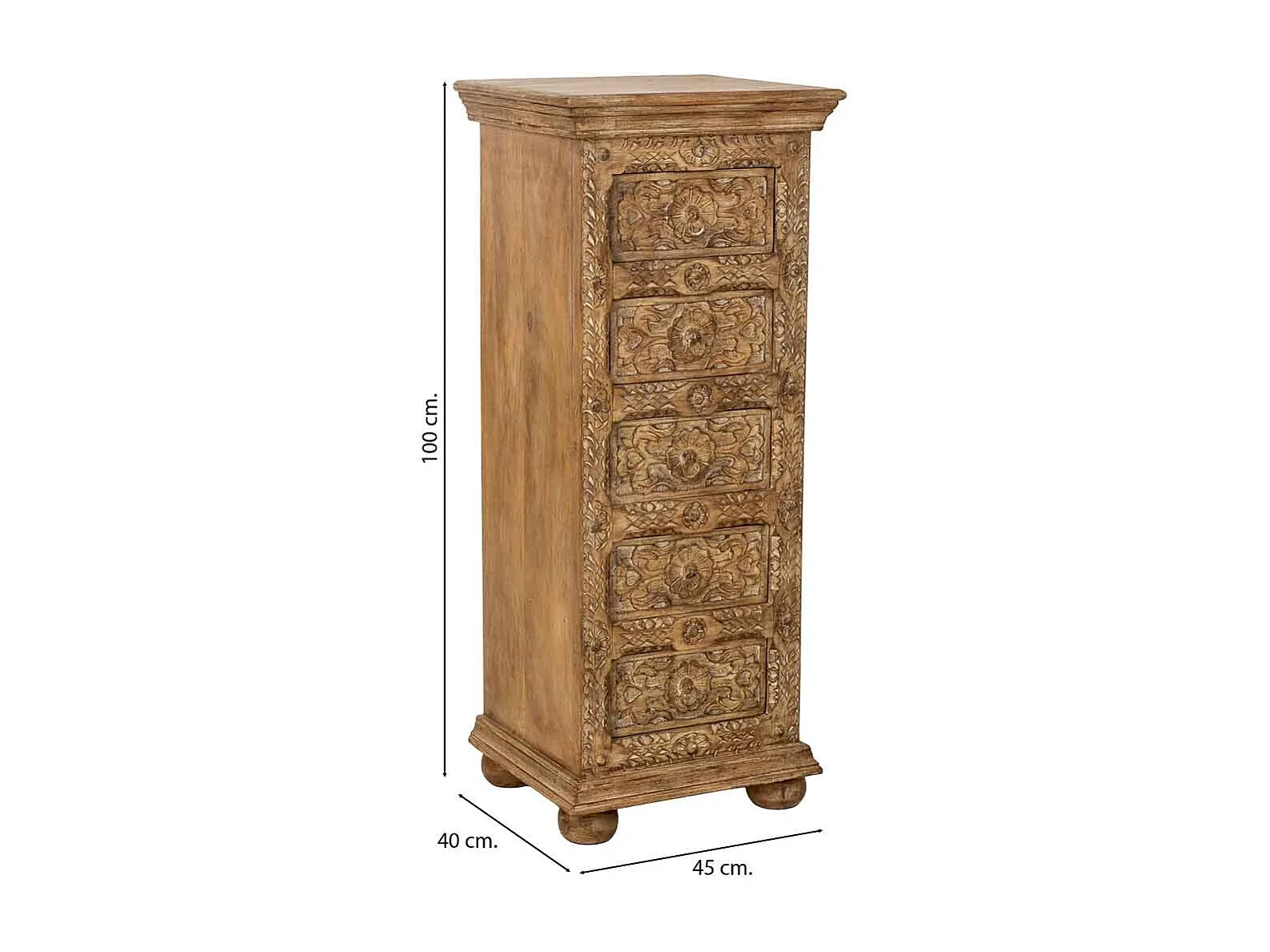 Commode artisanale en bois à 5 tiroirs marron, 45x40x100 cm