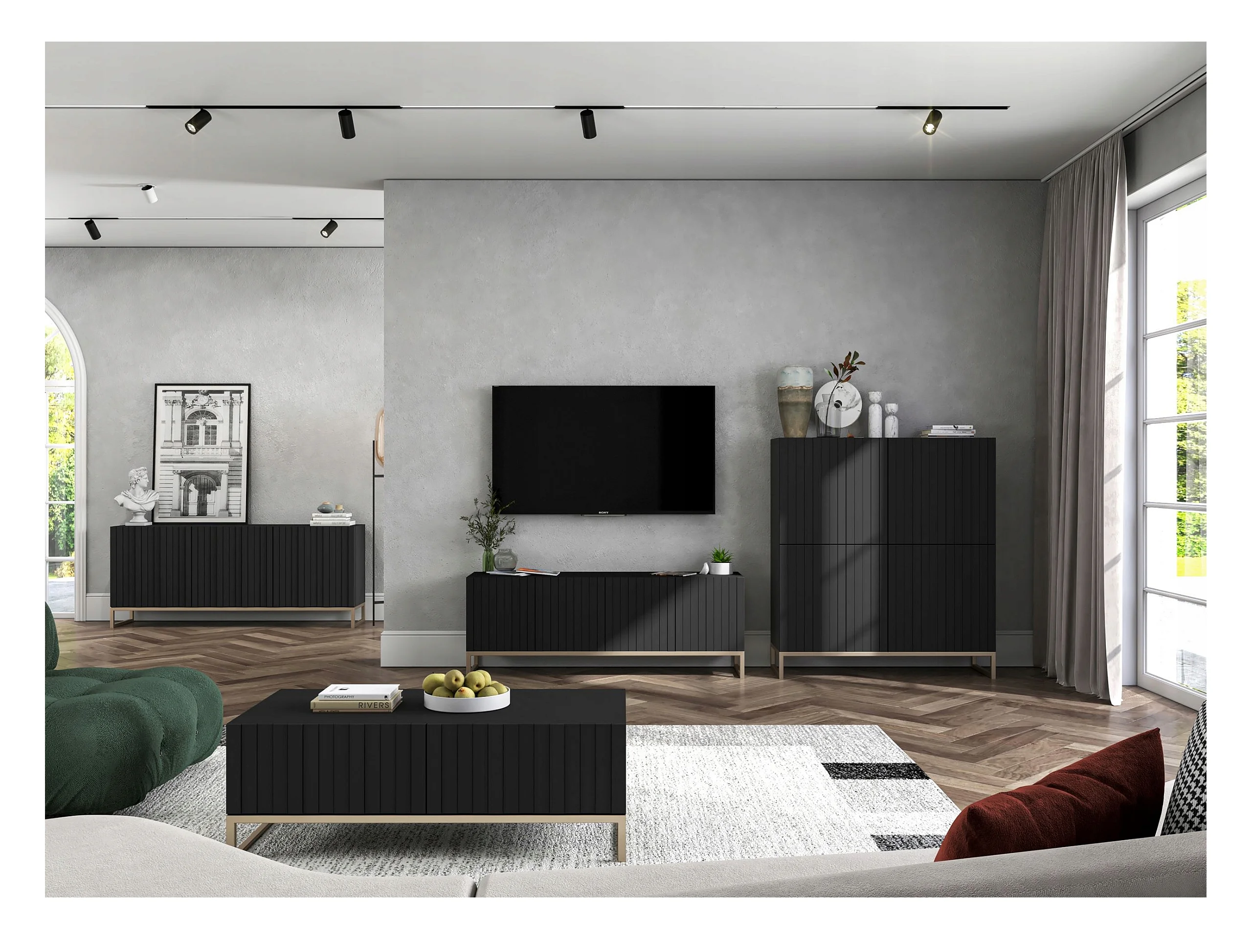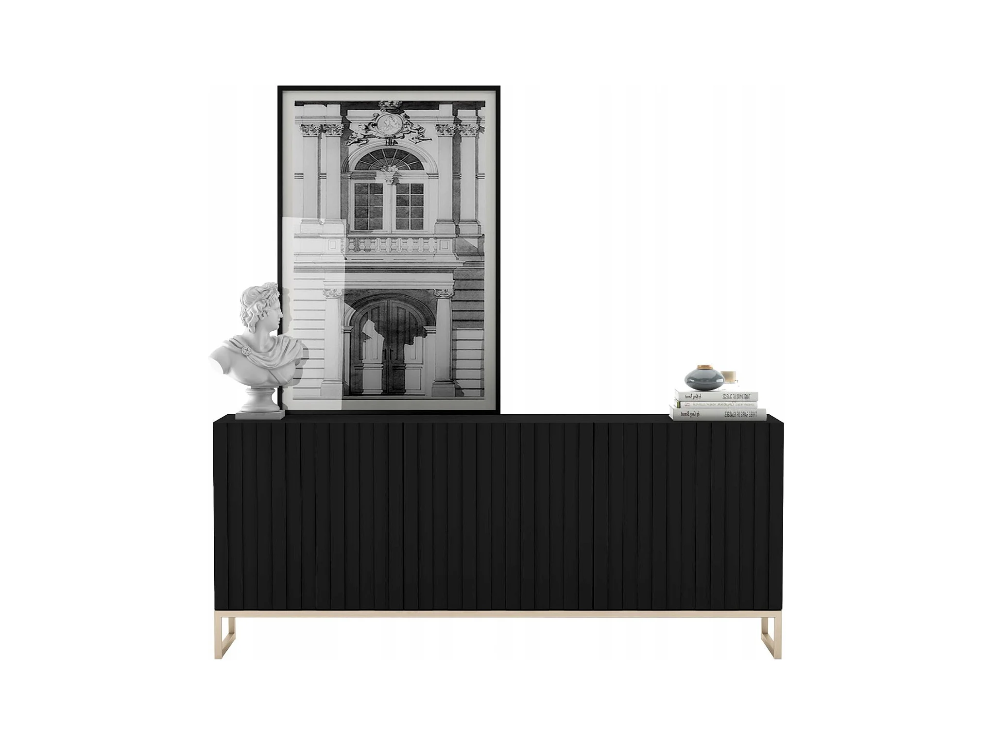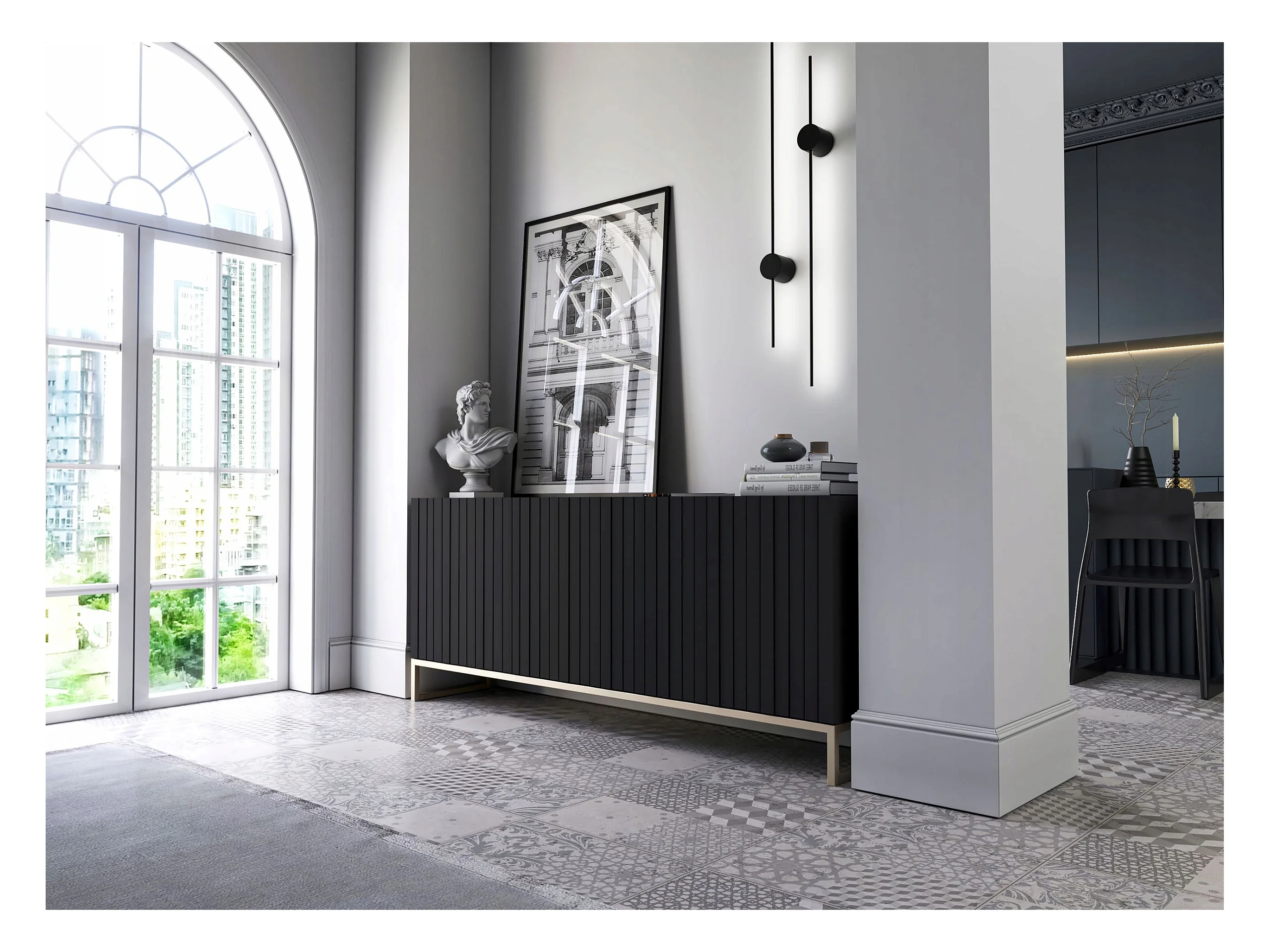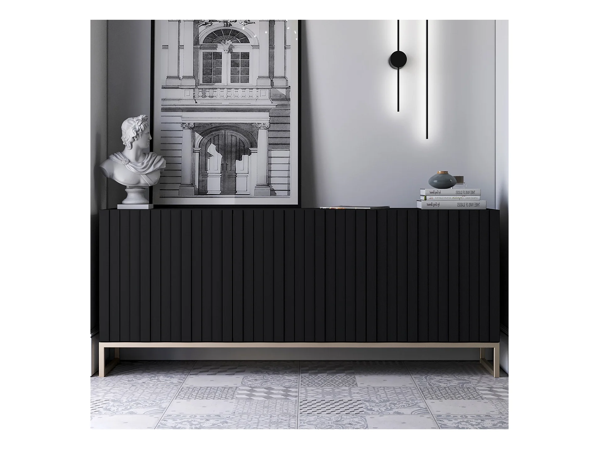 Commode avec 3 portes - Corps Noir mat, façades rainurées Noir mat - 168 cm, cadre en métal