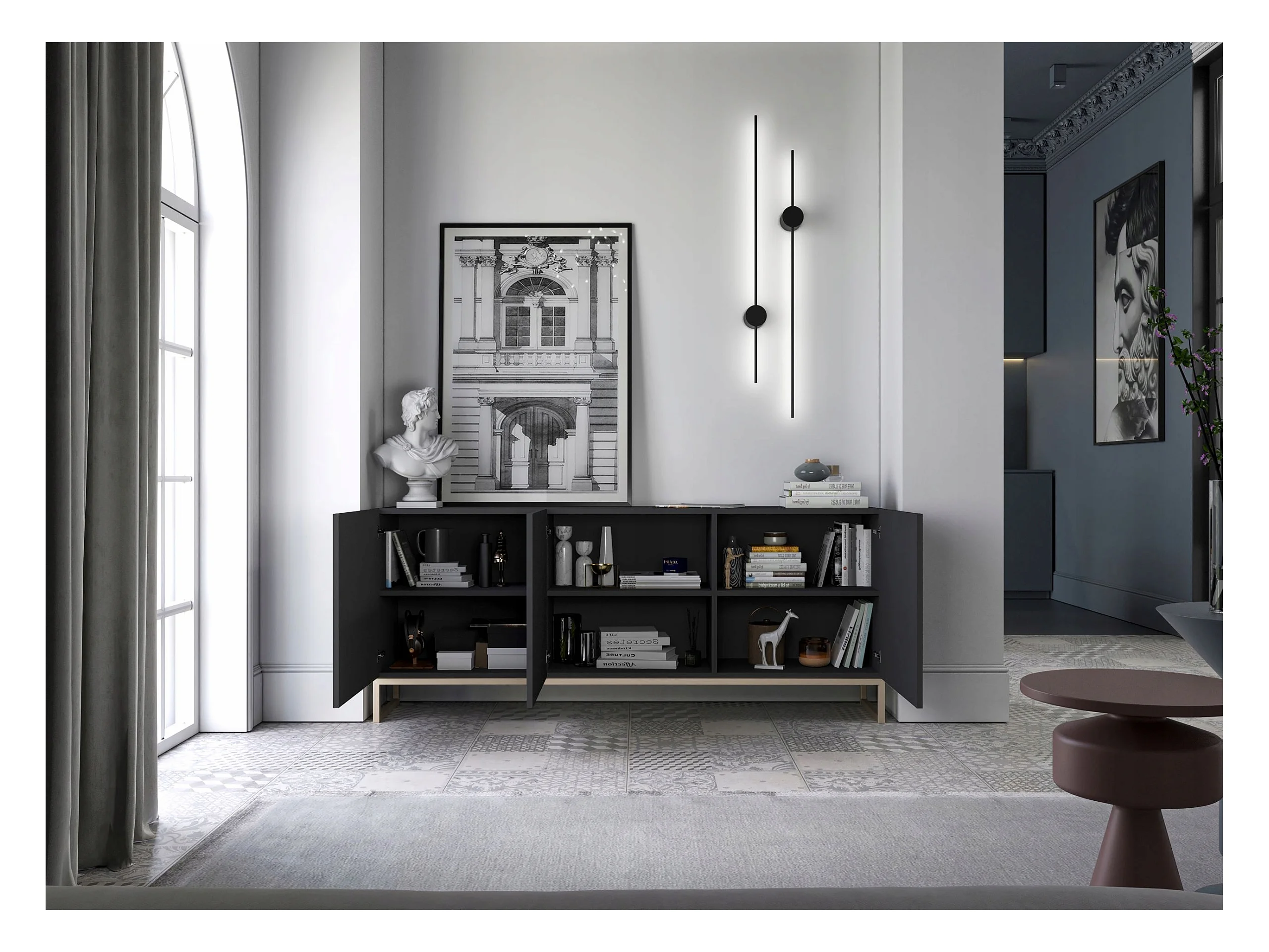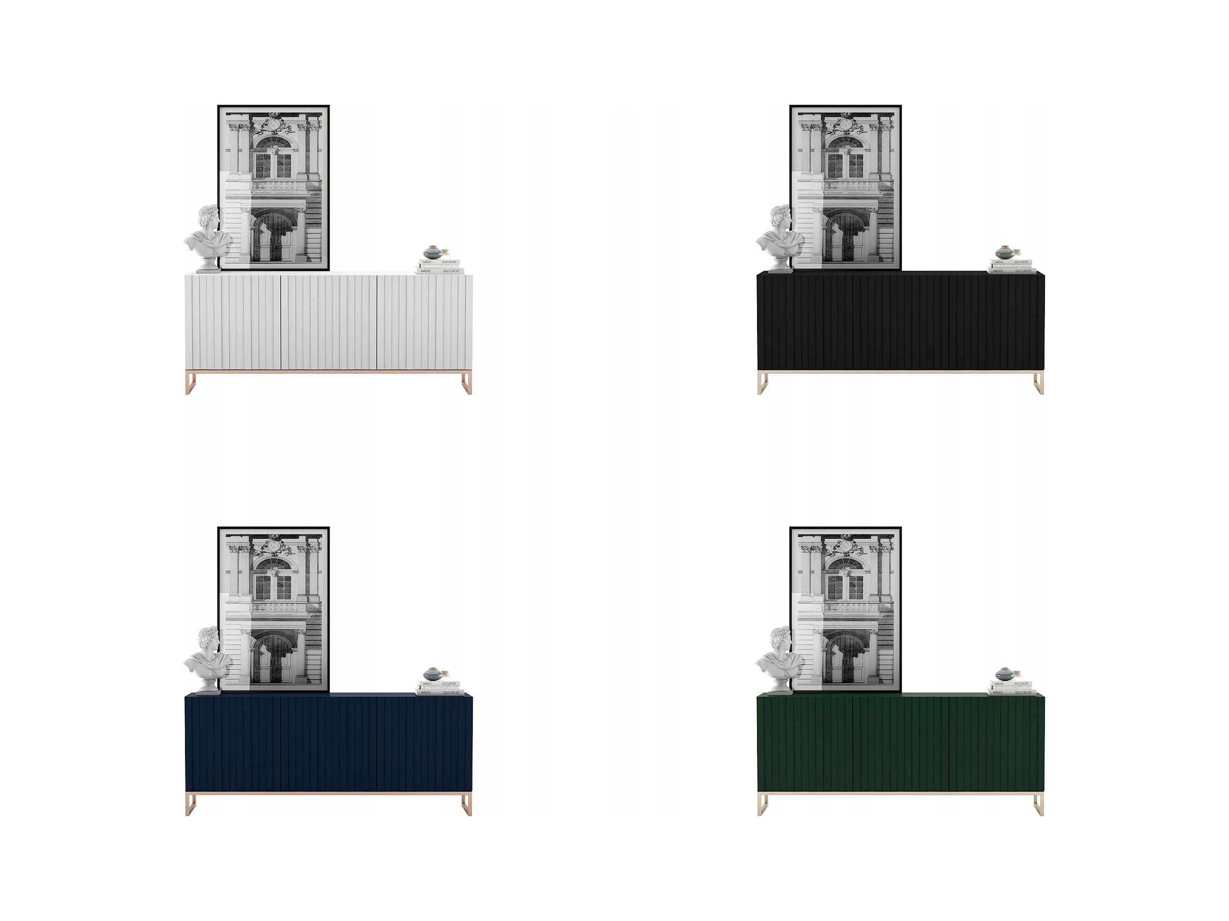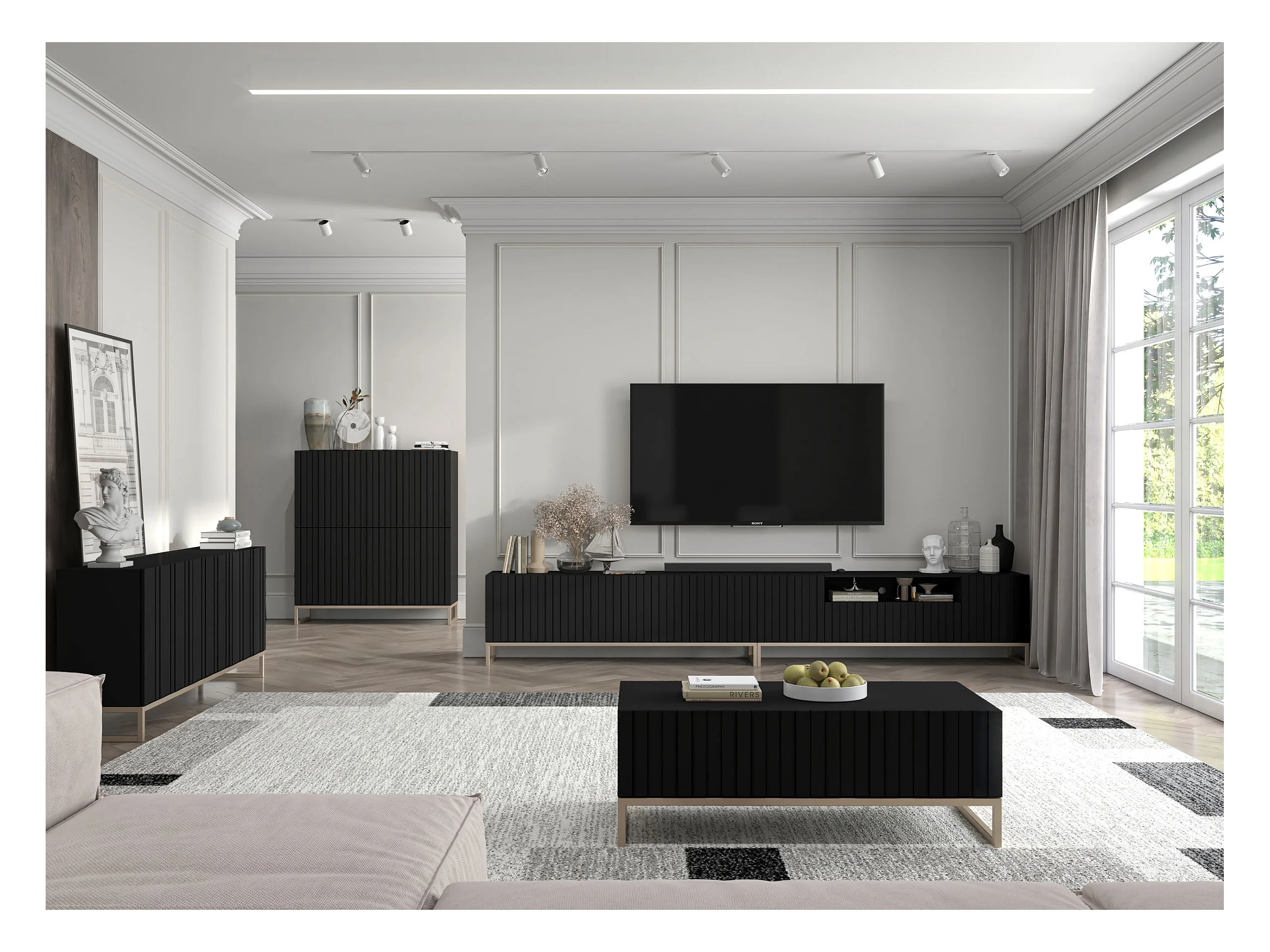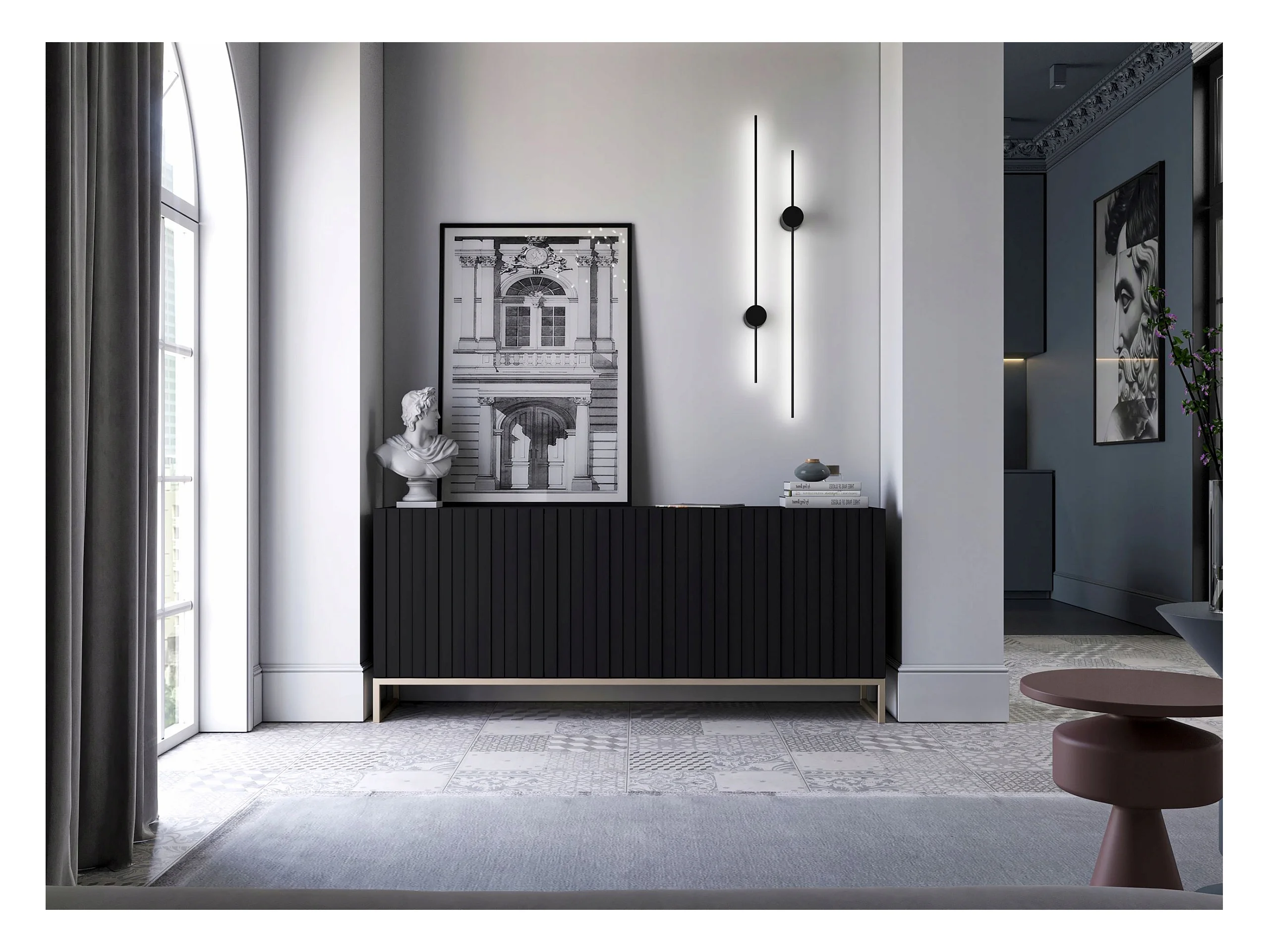 Commode avec 3 portes - Corps Noir mat, façades rainurées Noir mat - 168 cm, cadre en métal