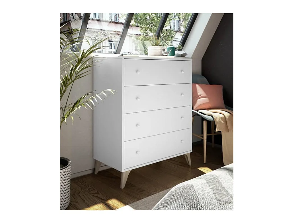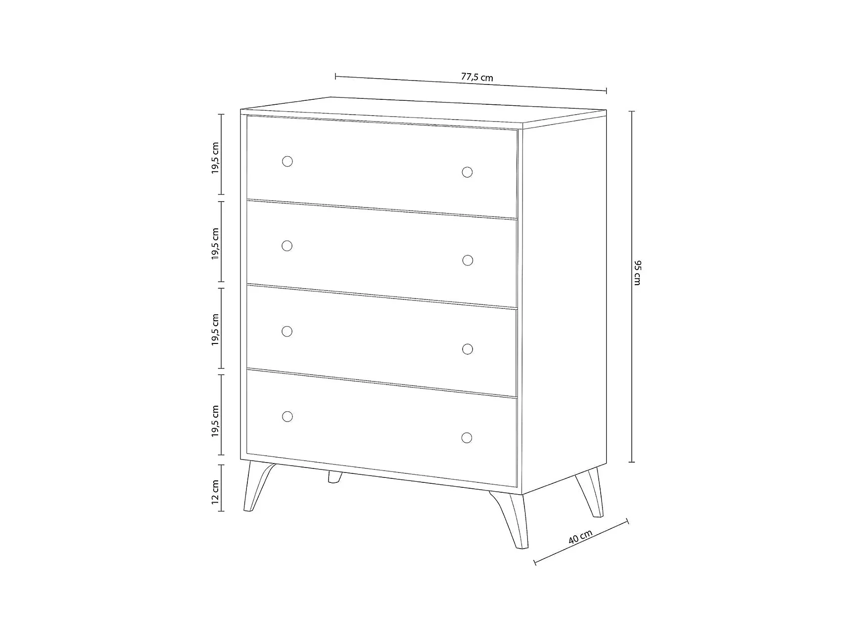 Commode avec 4 tiroirs couleur blanc artic - Longueur 77,5 x Hauteur 95 x Profondeur 40 cm