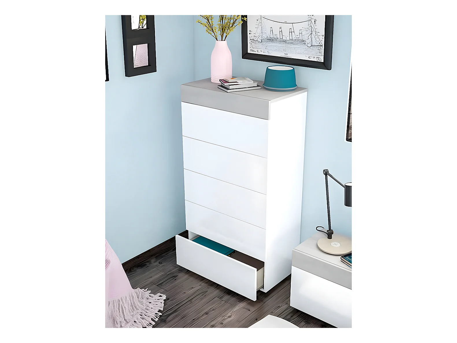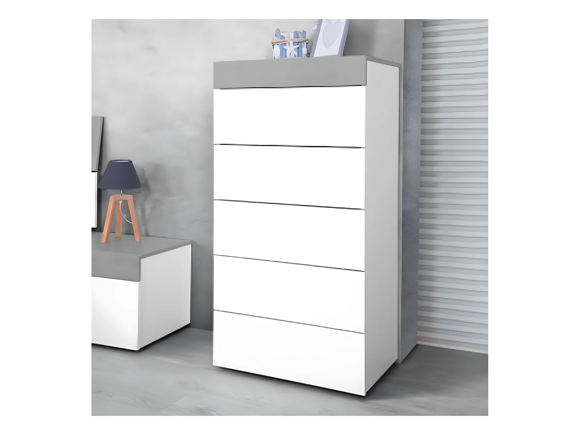 Commode avec 5 tiroirs coloris ciment et blanc artic - 118 x 61 x 40 cm