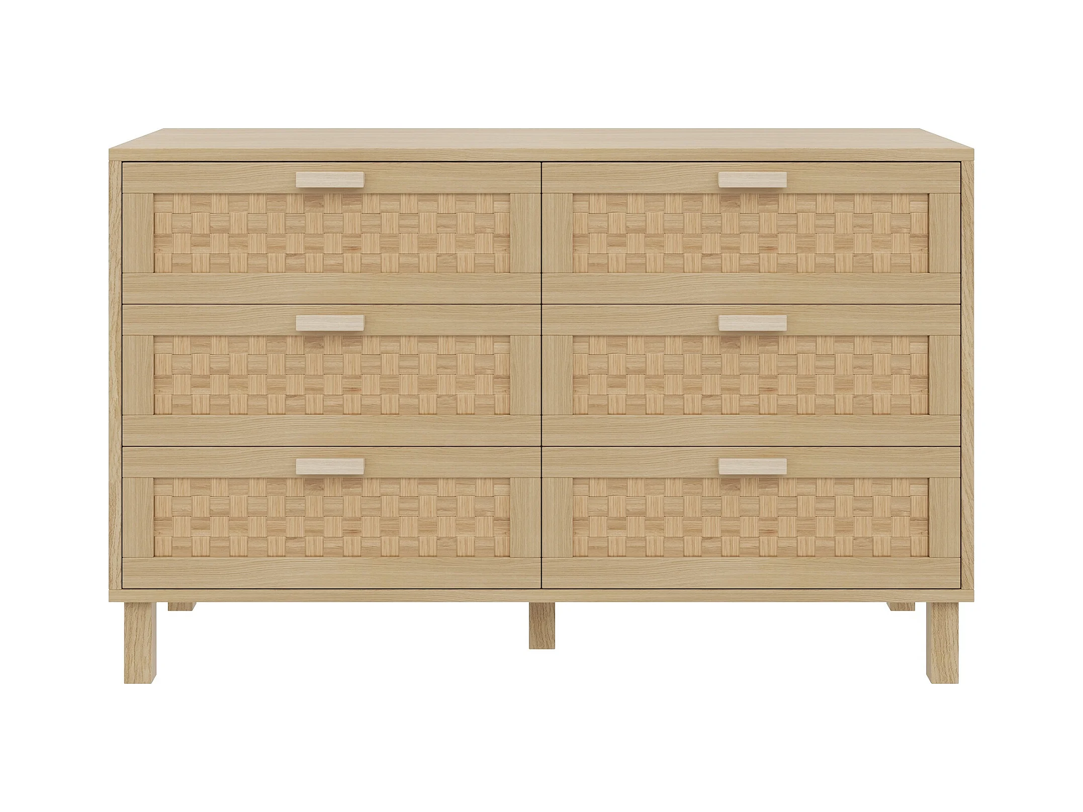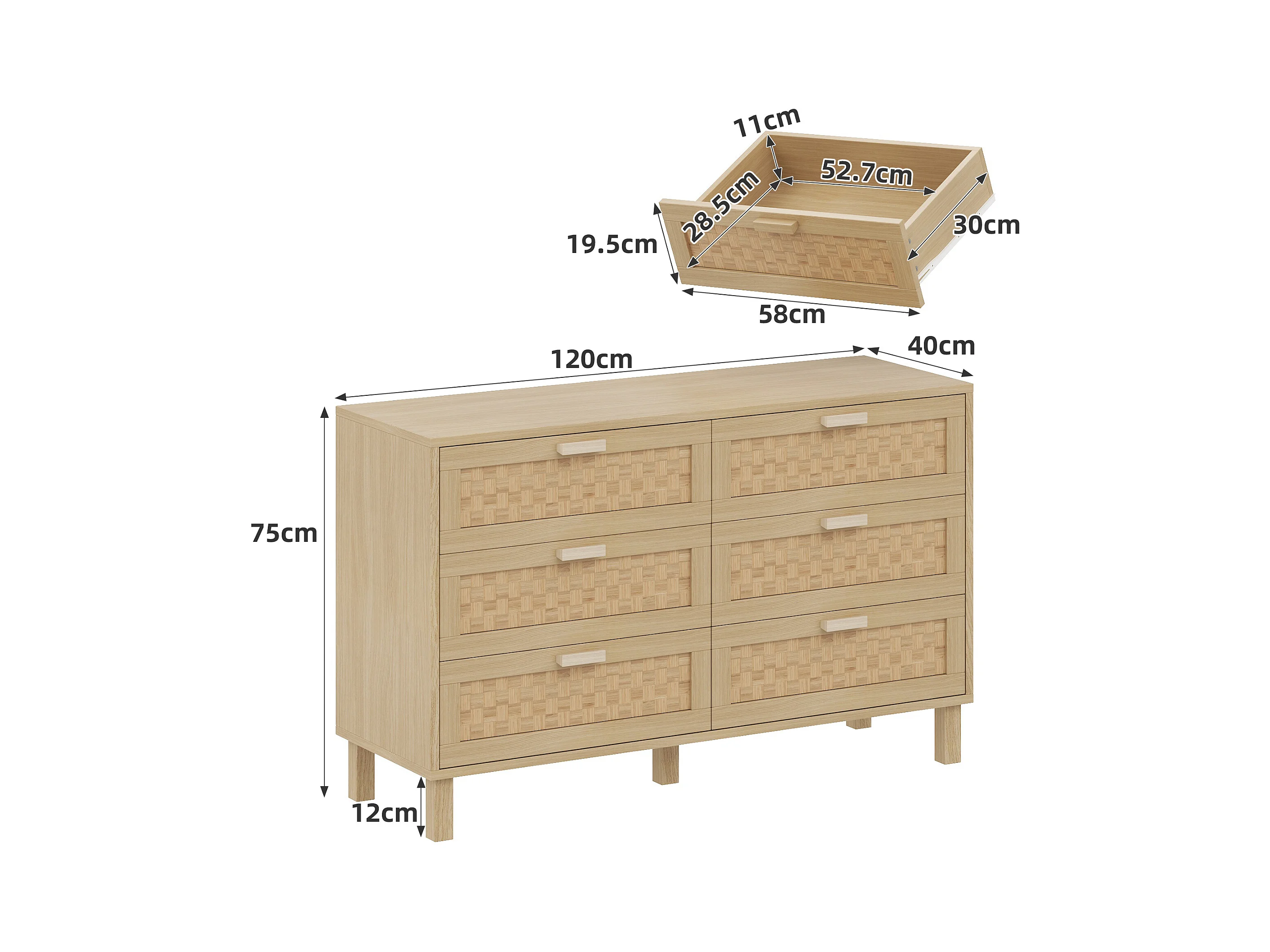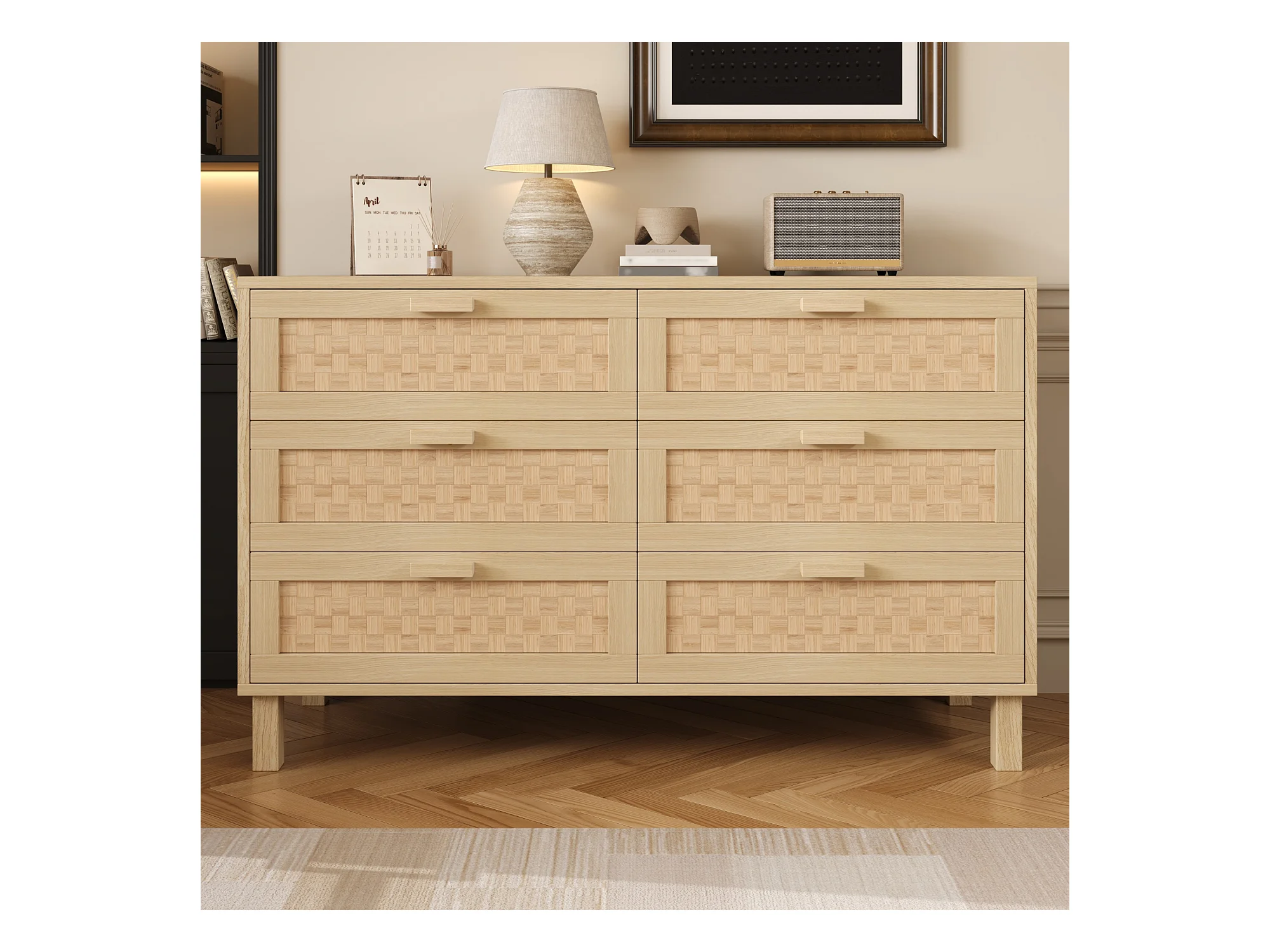 Commode bois - Commode à 6 tiroirs avec poignées - tiroirs en rotin - pour le salon