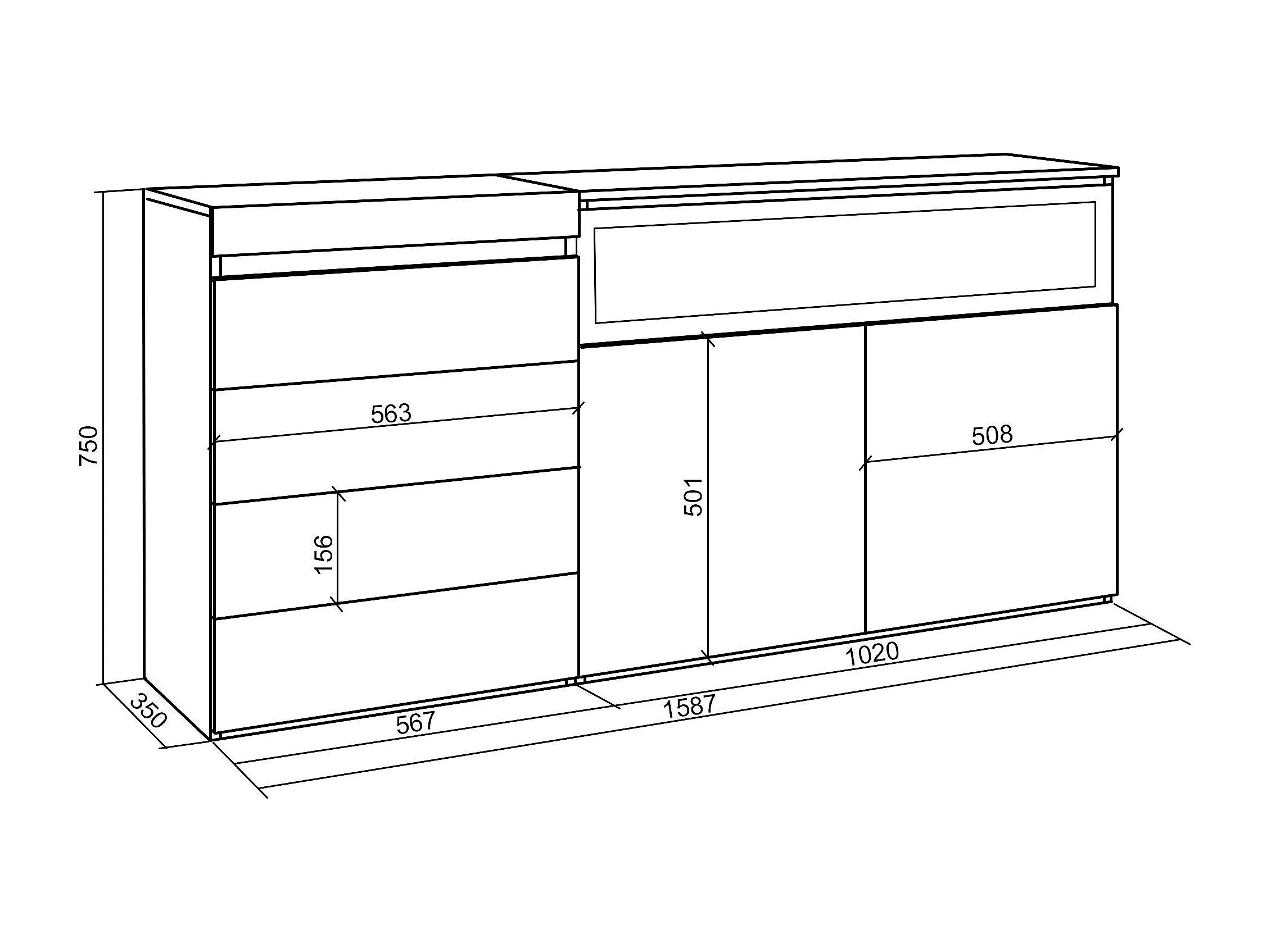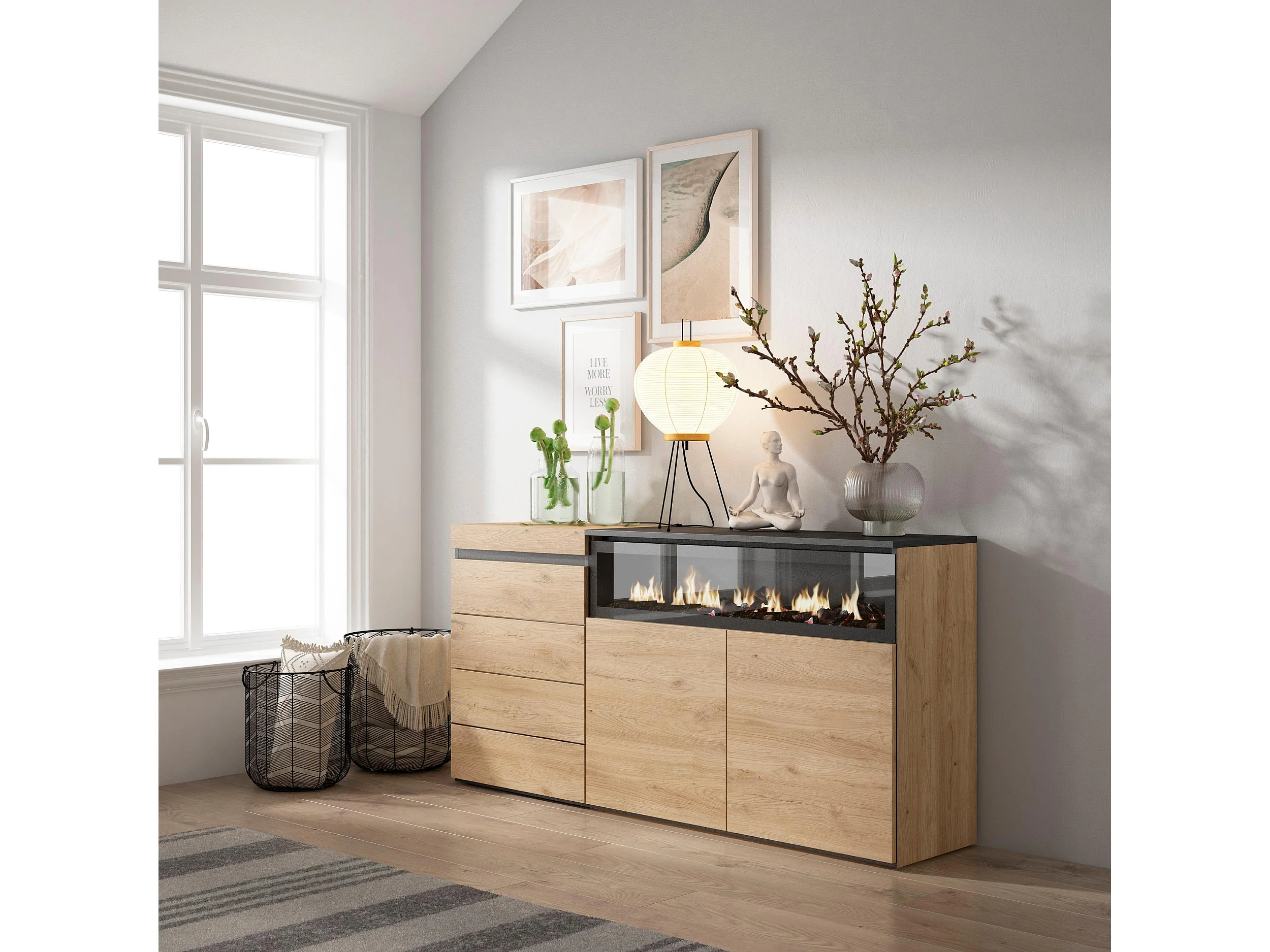 Commode, Buffet, Armoire, 135x57x75 cm, Chambre à coucher, pièce, Cheminée électrique, Chêne