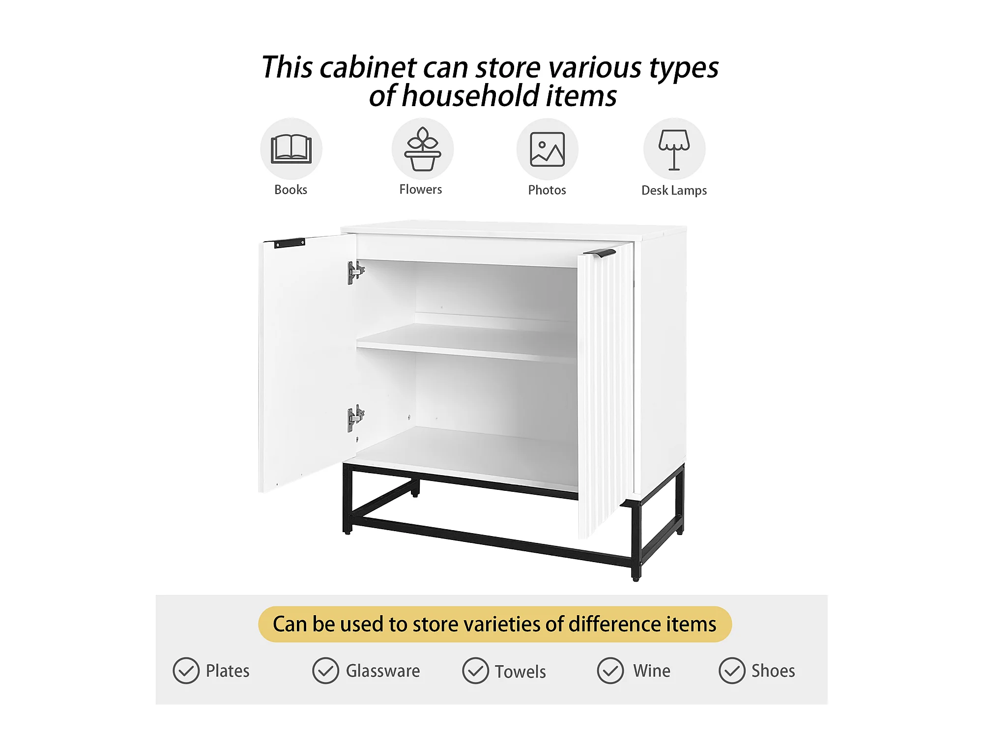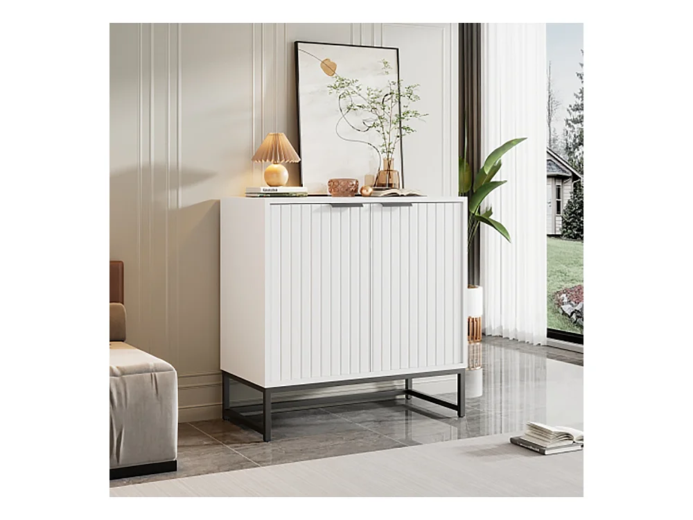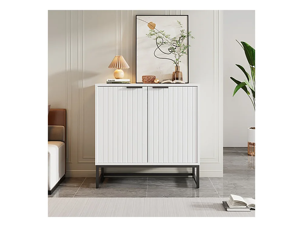 URBAN MEUBLE Buffet blanc 4 portes avec motif et rangement 120*37.5*80.8 cm