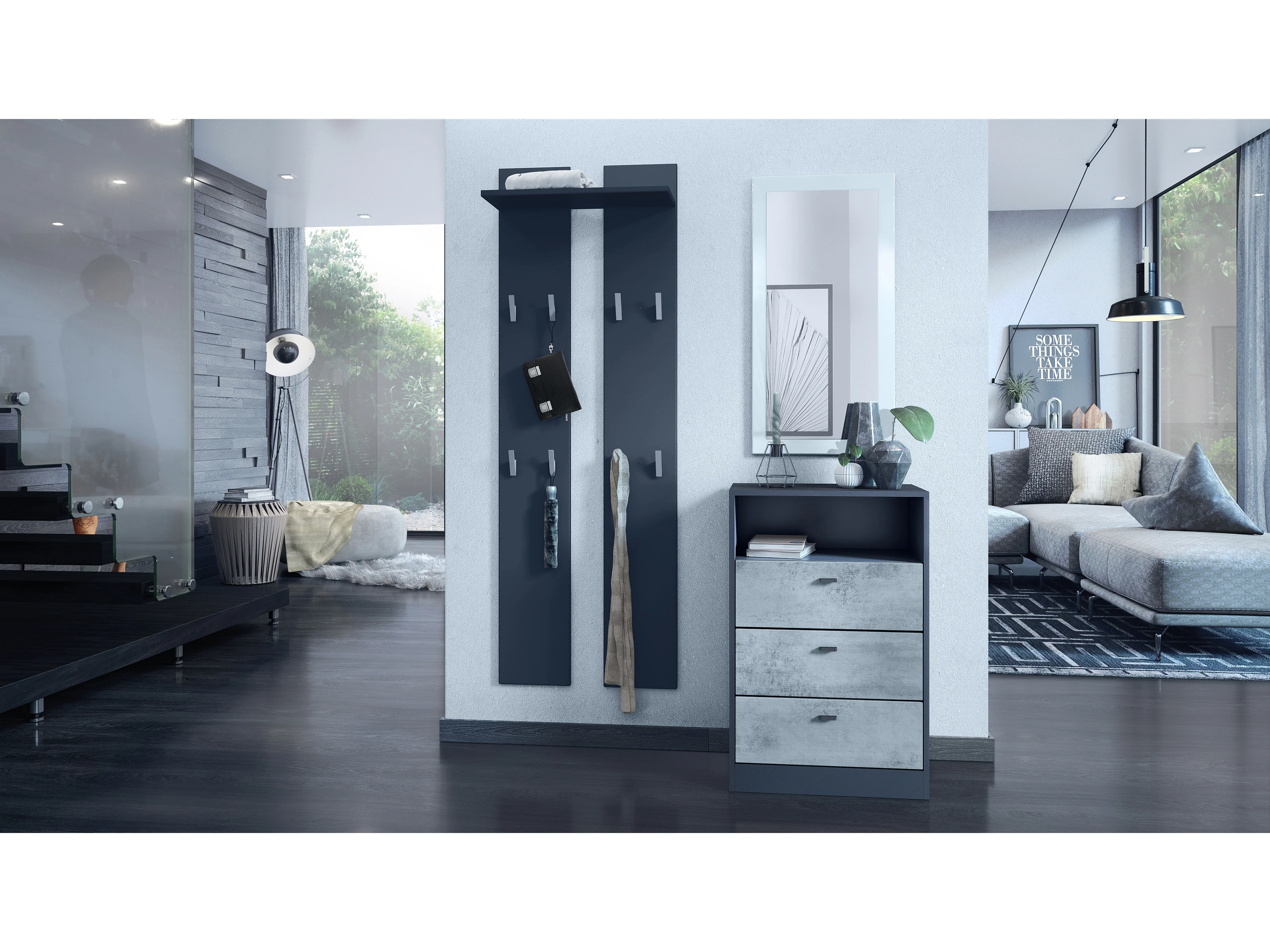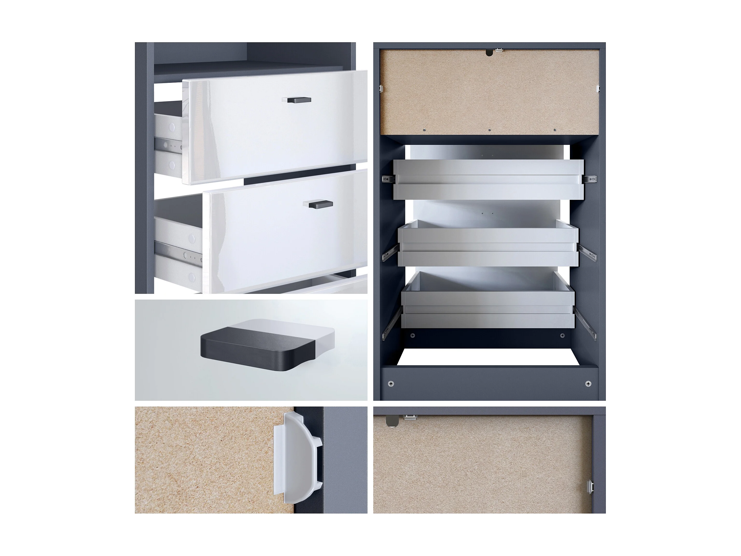 Commode Buffet Pino V2, avec 3 tiroirs & 1 compartiment ouvert, Anthracite mat /Aspect Béton Oxyde sans LED (56 x 86,5 x 36 cm)