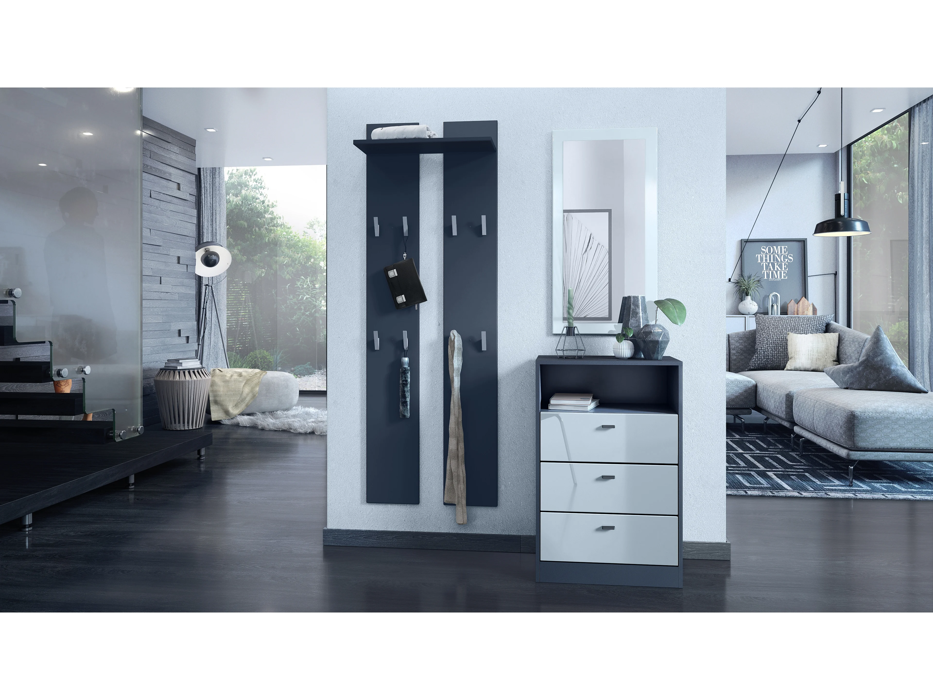 Commode Buffet Pino V2, avec 3 tiroirs & 1 compartiment ouvert, Anthracite mat /Blanc haute brillance sans LED (56 x 86,5 x 36 cm)