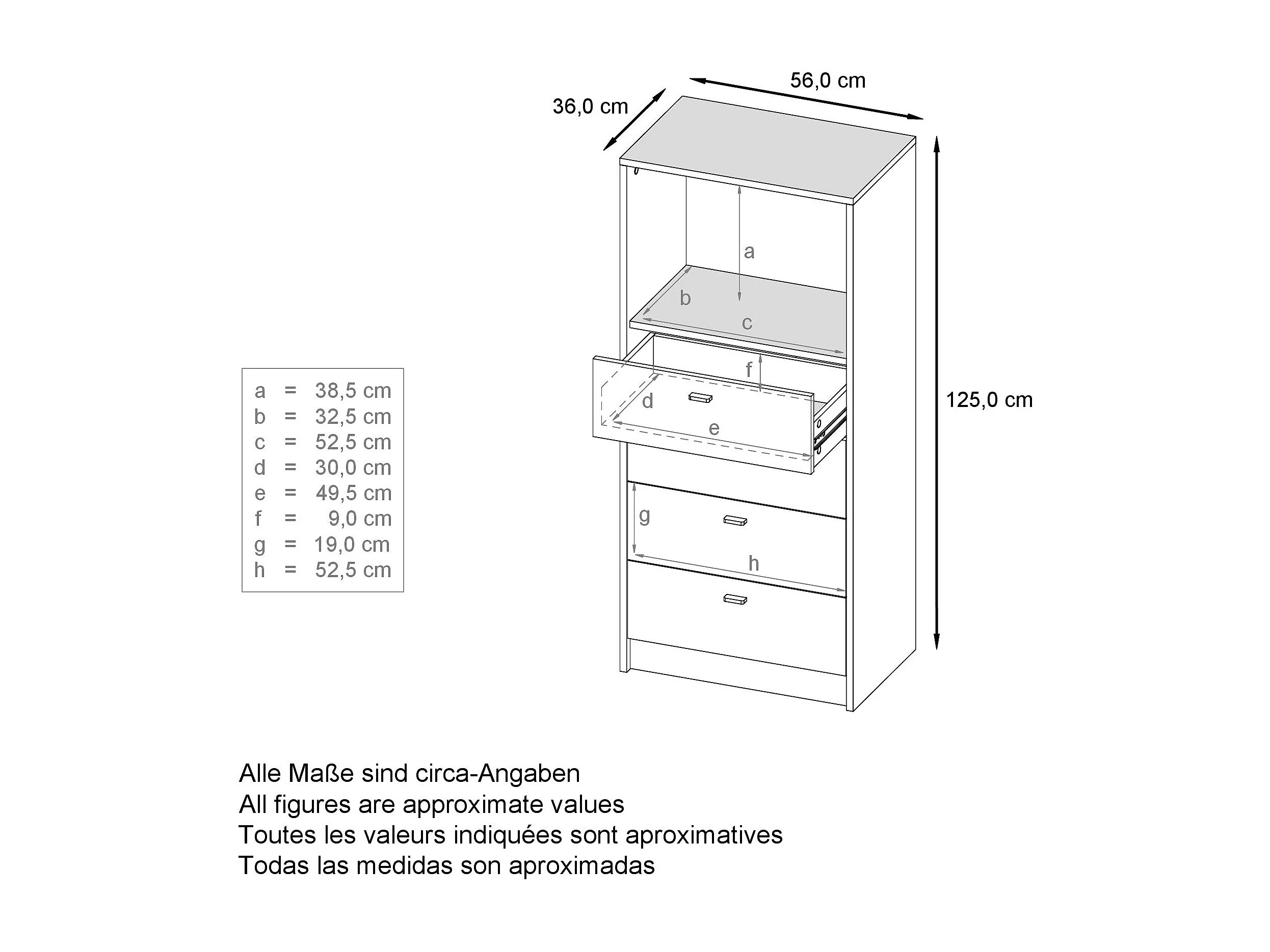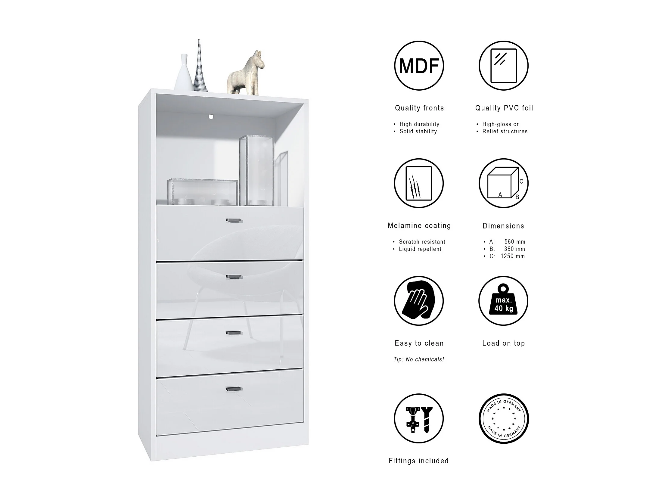 Commode Buffet Pino V3, avec 4 tiroirs & 1 compartiment ouvert, Anthracite mat/Gris haute brillance sans LED (56 x 125 x 36 cm)