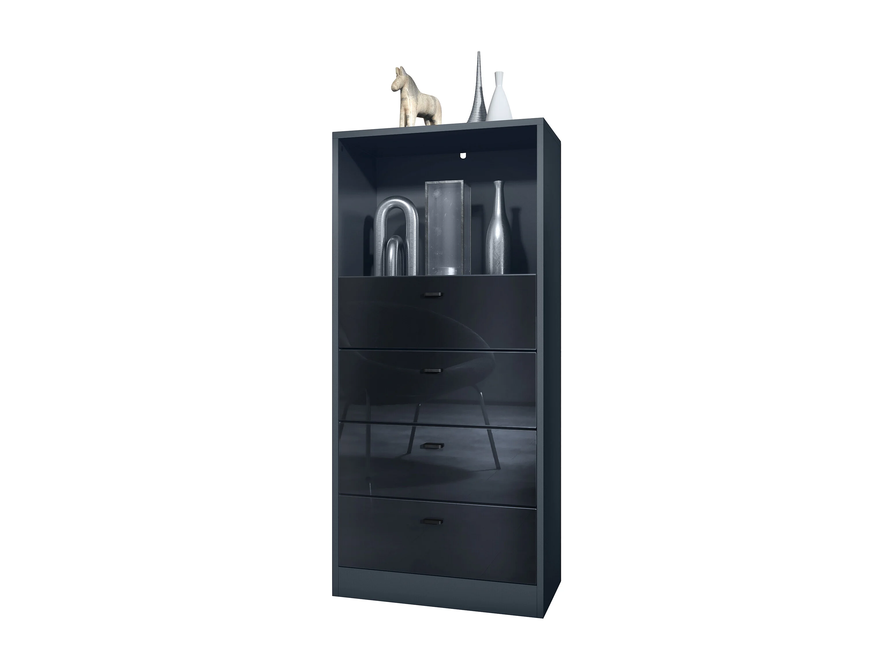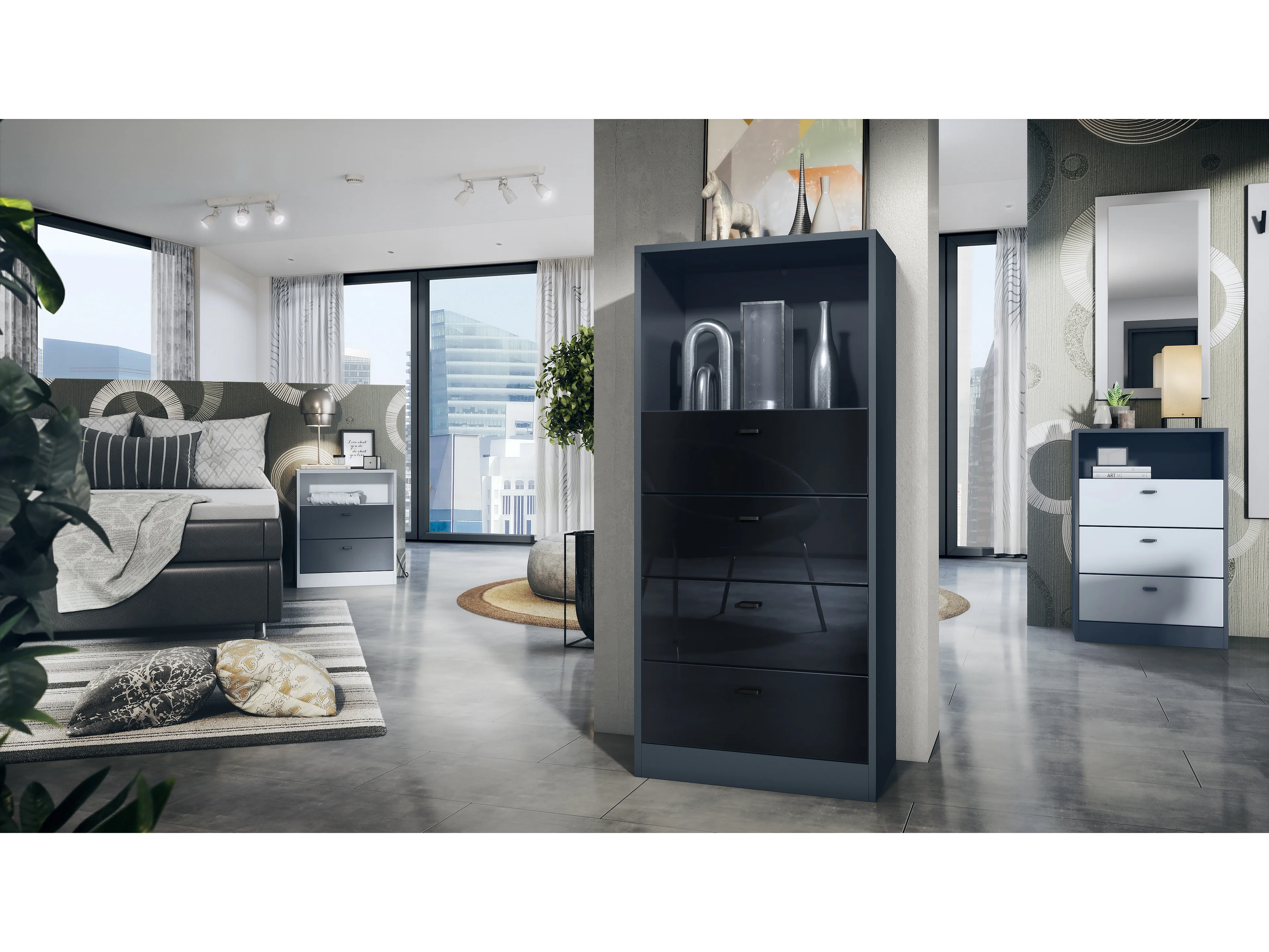 Commode Buffet Pino V3, avec 4 tiroirs & 1 compartiment ouvert, Anthracite mat/Noir haute brillance sans LED (56 x 125 x 36 cm)