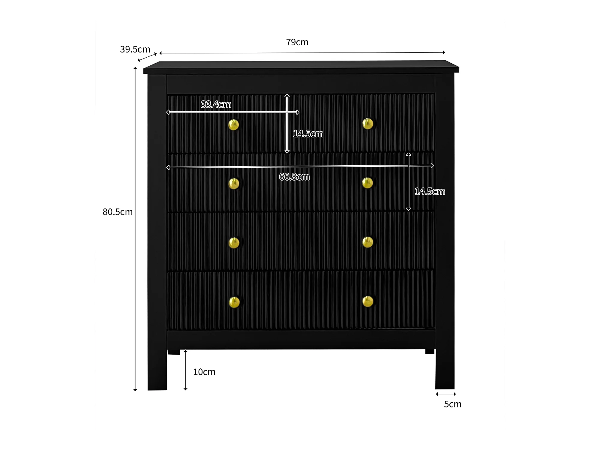 Buffet 79x39.5x80.5 cm 5 tiroirs - meuble de rangement - noir