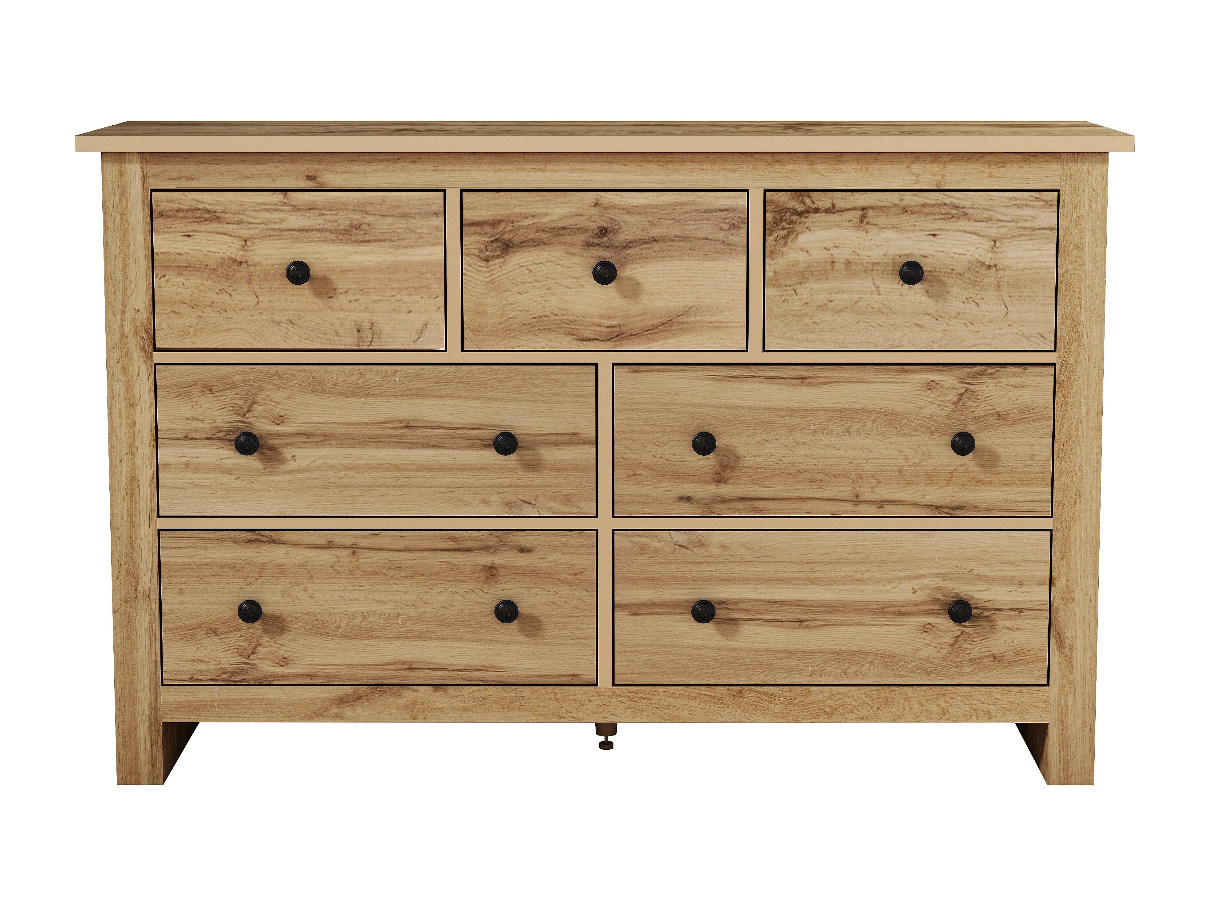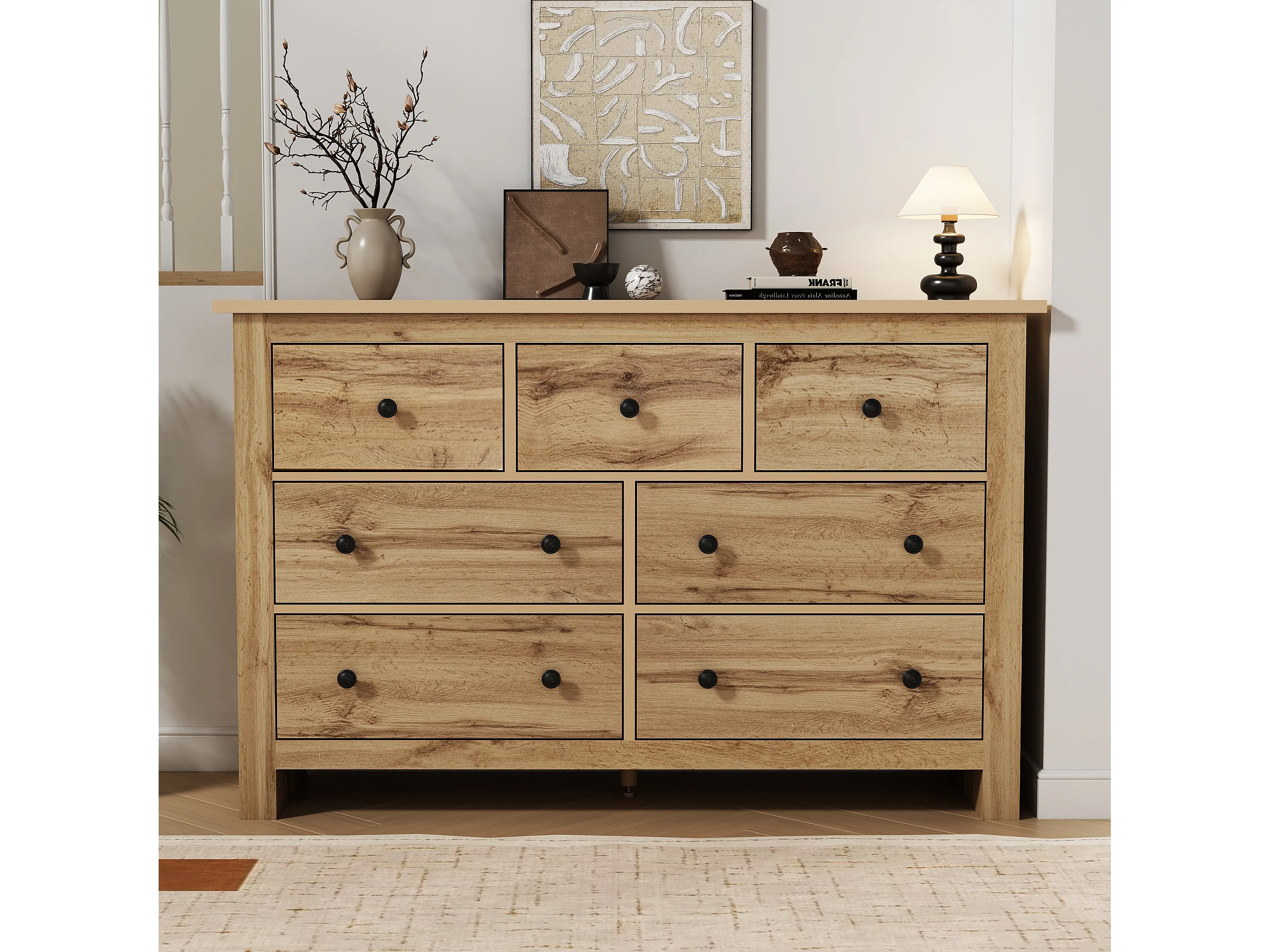 Commode buffet salon bois 7 tiroirs - meuble de rangement - marron (152x40x88.5 cm)
