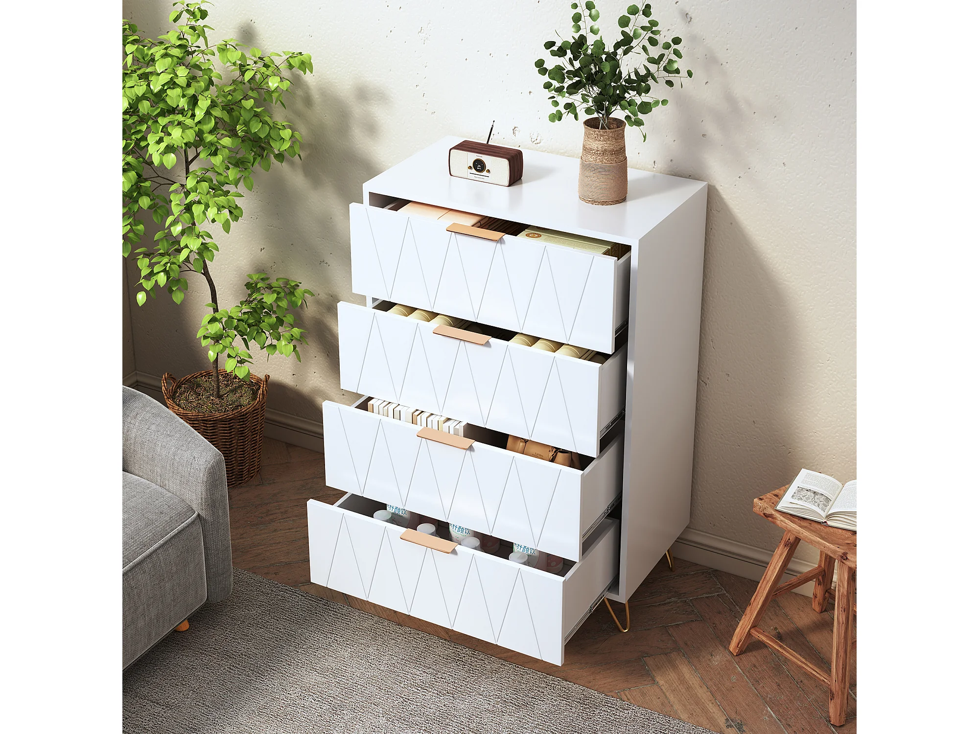 Commode 4 tiroirs avec boutons 4 tiroirs