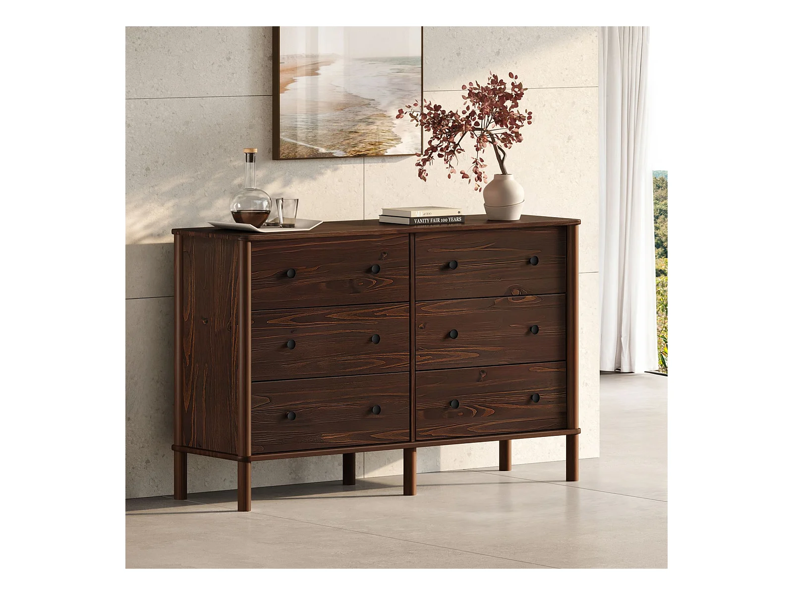 Commode chambre APOANA L 132 cm 6 tiroirs en bois massif coloris noyer, meuble de rangement pour vêtements