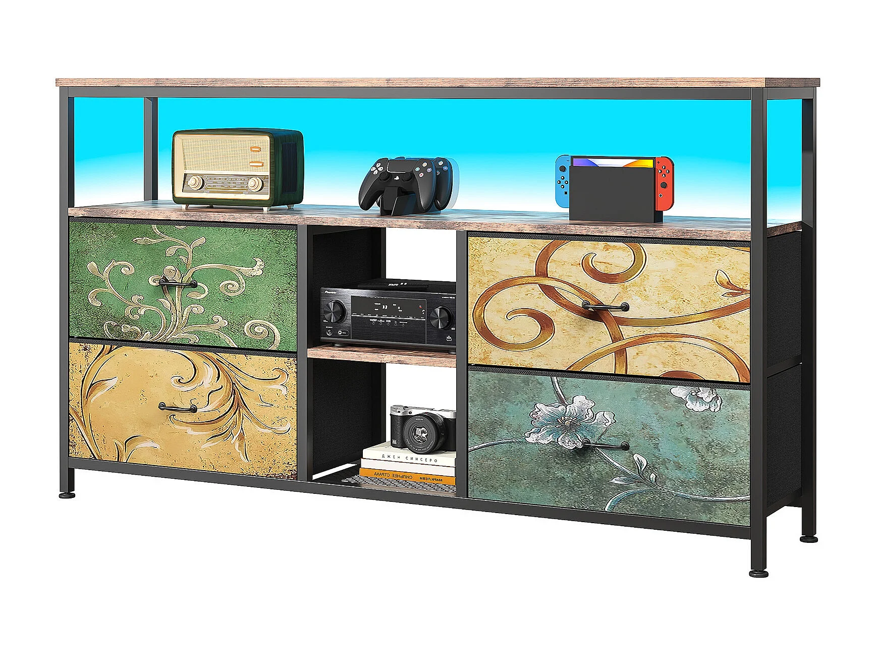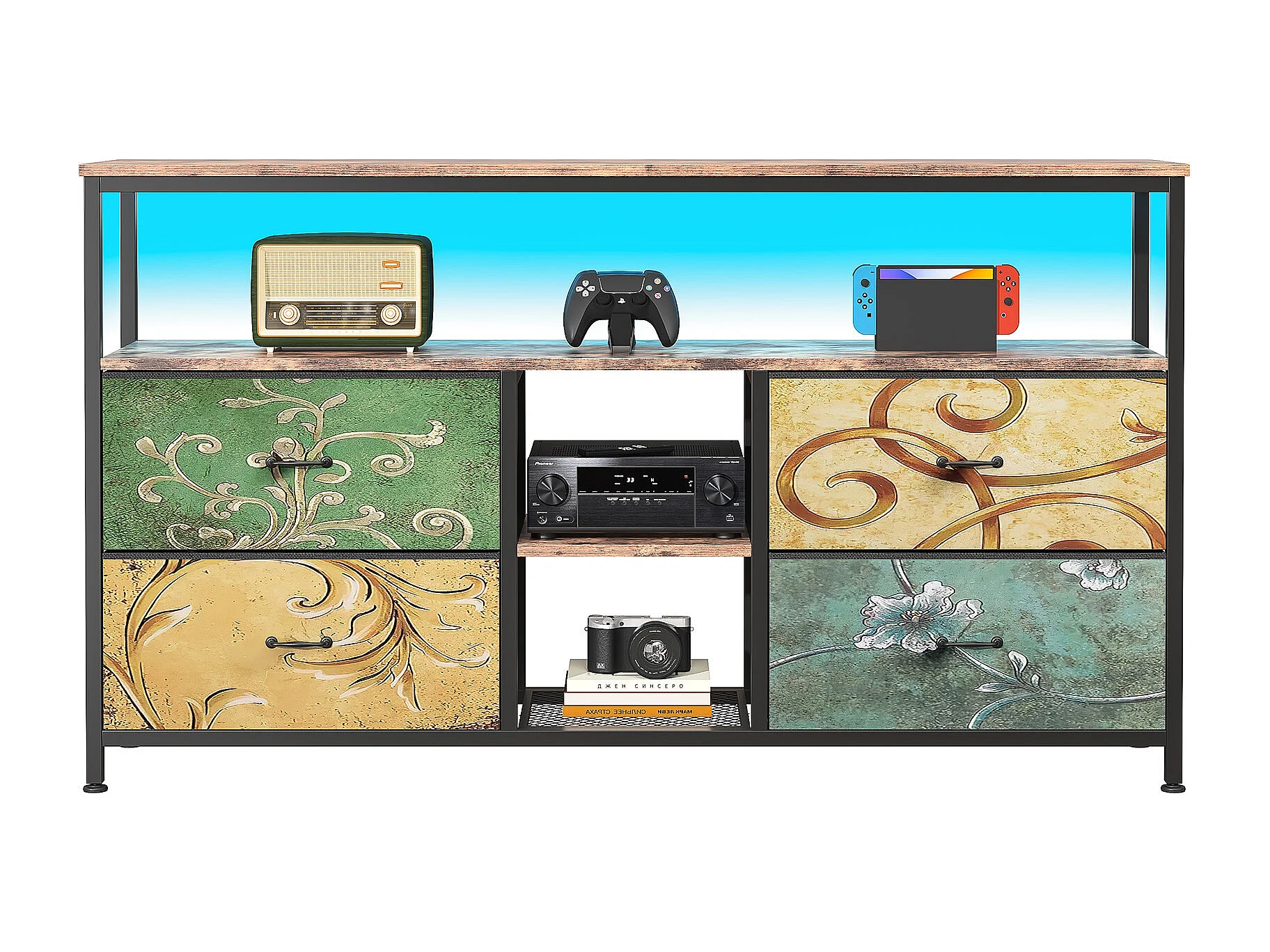 Commode Chambre avec LED& 3 Tiroirs, Armoire à tiroirs multifonctionnelle pour Chambre et Salon - Buffet Stable et résistant, 137 * 30 * 78 cm, Colorés