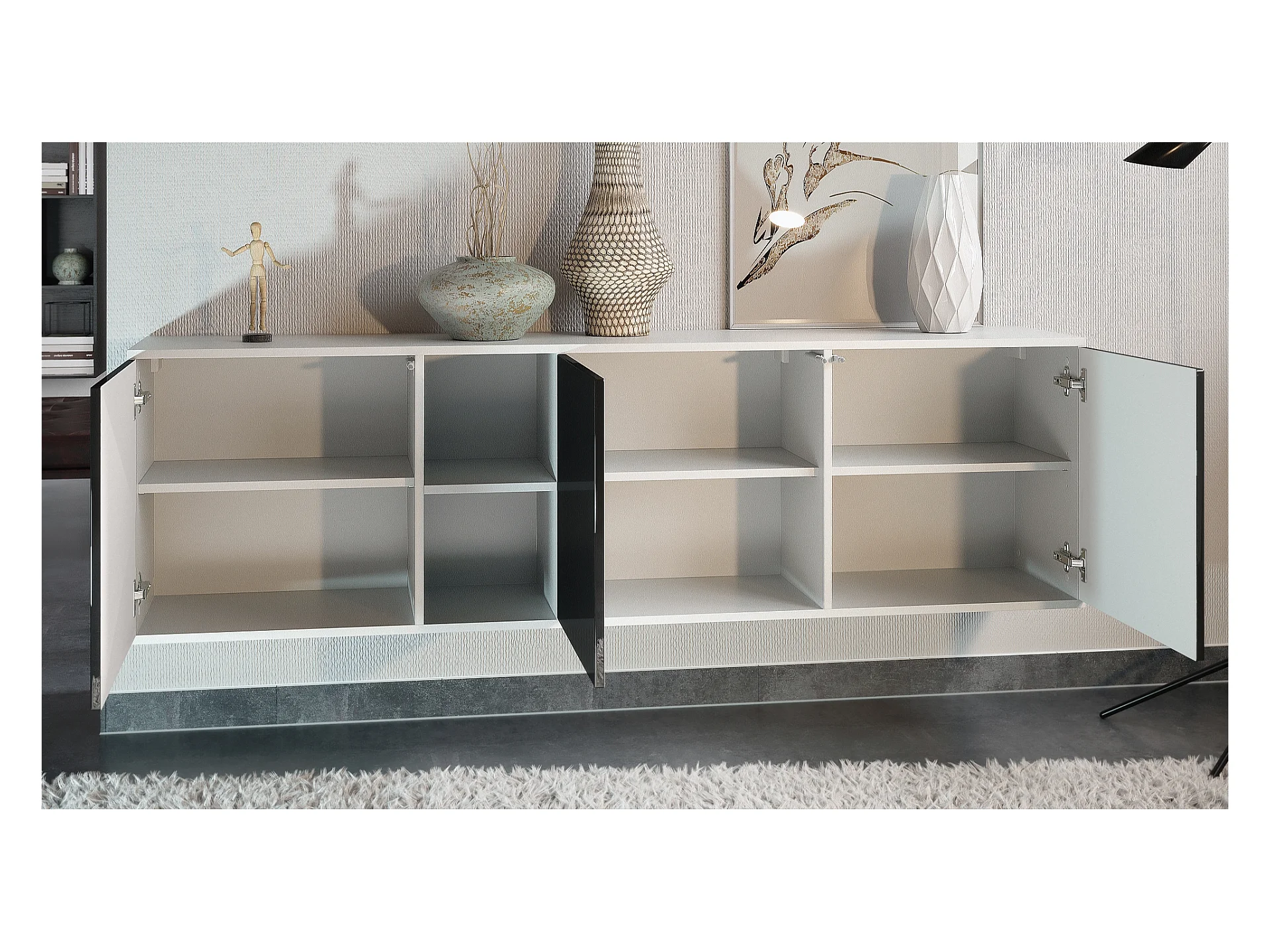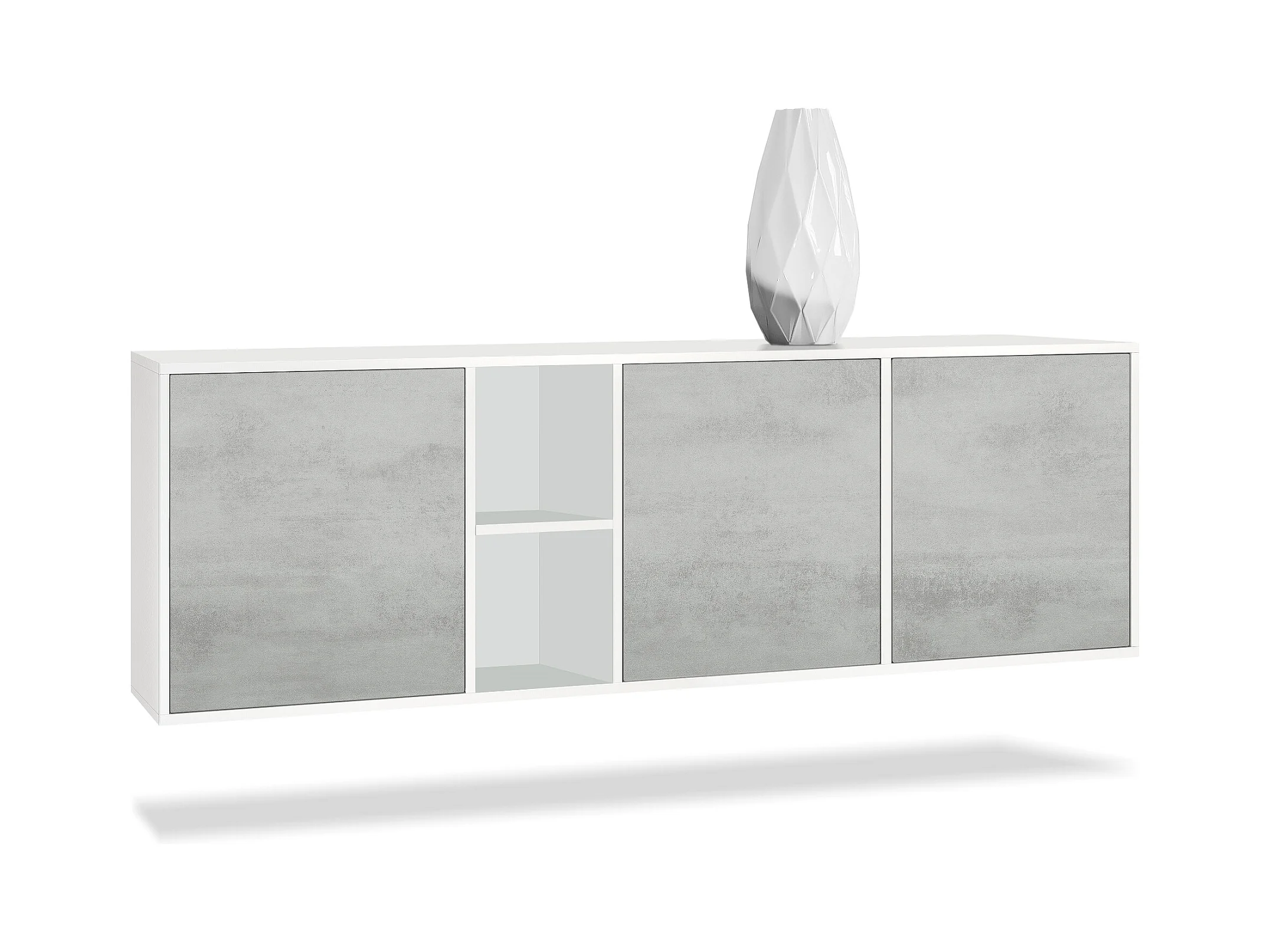 Commode Cuba - blanc mat/aspect béton oxyde - Buffet moderne pour votre salon - (LxHxP) 182x53x35 cm