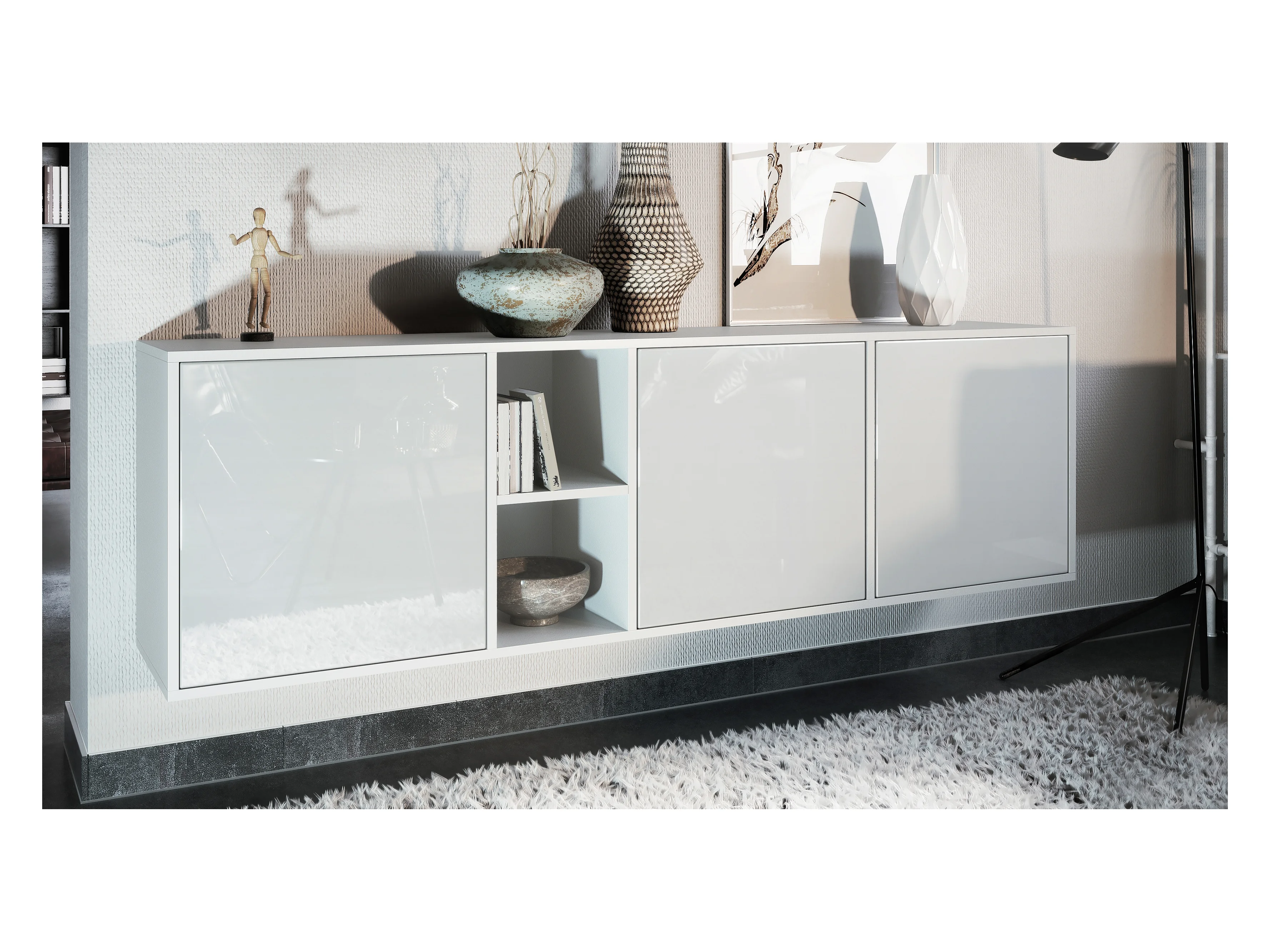 Commode Cuba - blanc mat/blanc haute brillance - Buffet moderne pour votre salon - (LxHxP) 182x53x35 cm
