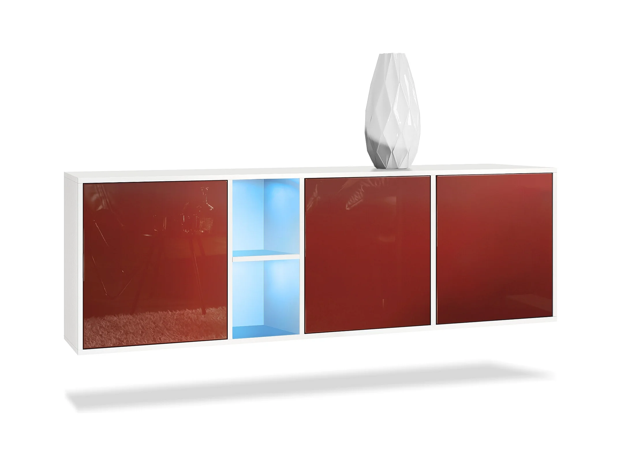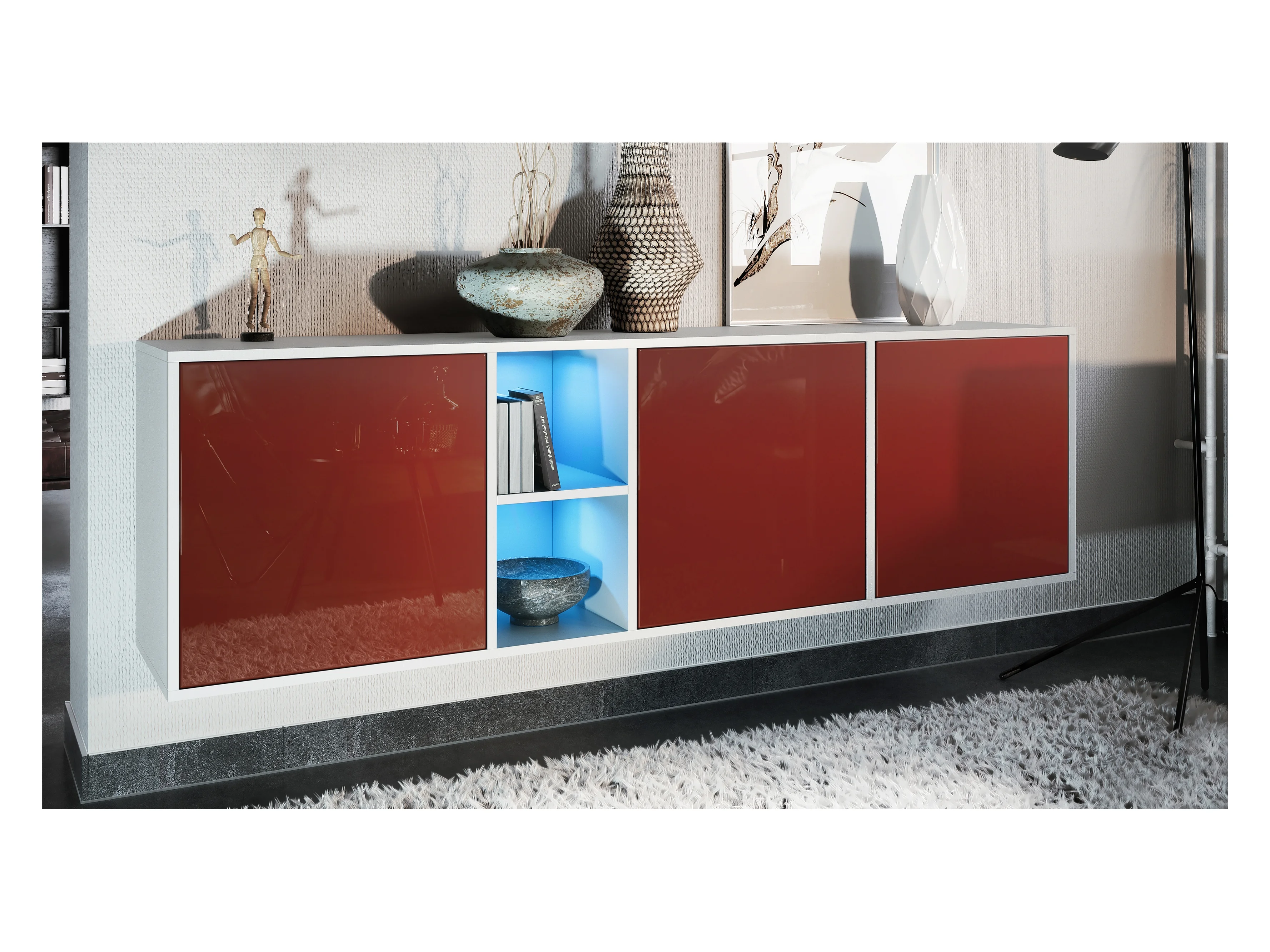 Commode Cuba - blanc mat/bordeaux haute brillance y compris LED - Buffet moderne pour votre salon - (LxHxP) 182x53x35 cm