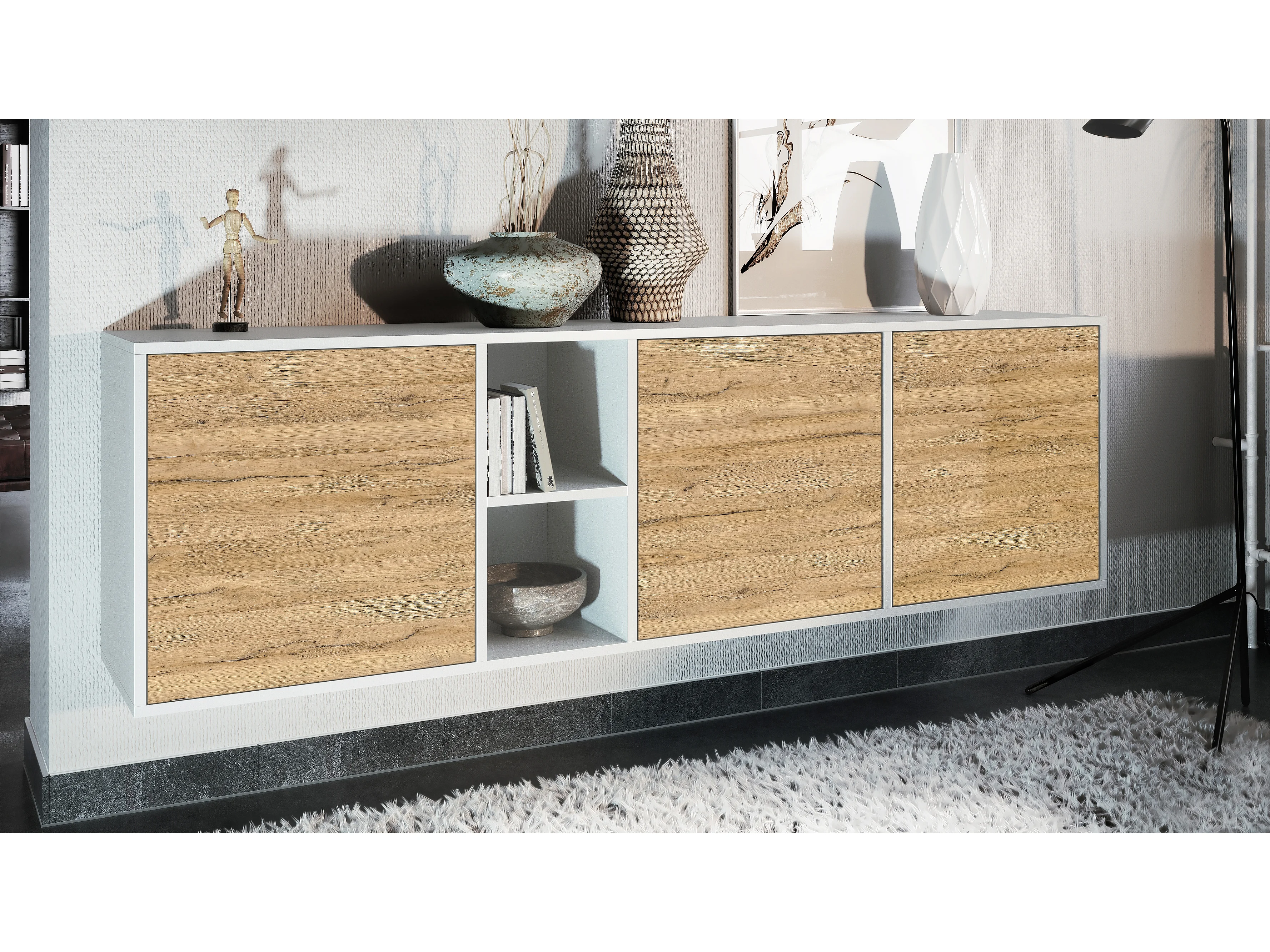 Commode Cuba - blanc mat/chêne nature - Buffet moderne pour votre salon - (LxHxP) 182x53x35 cm