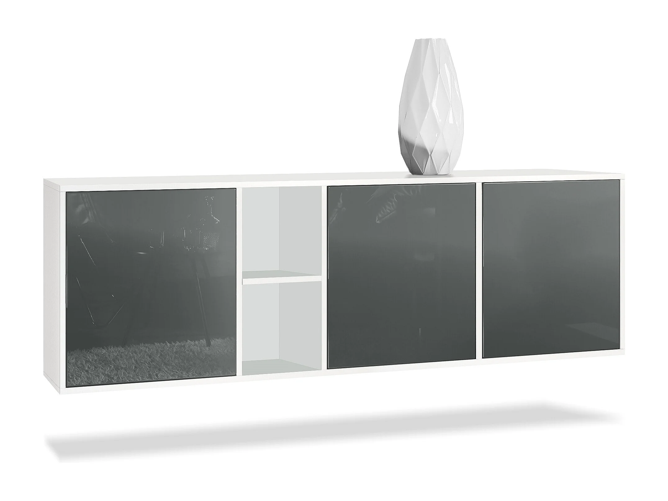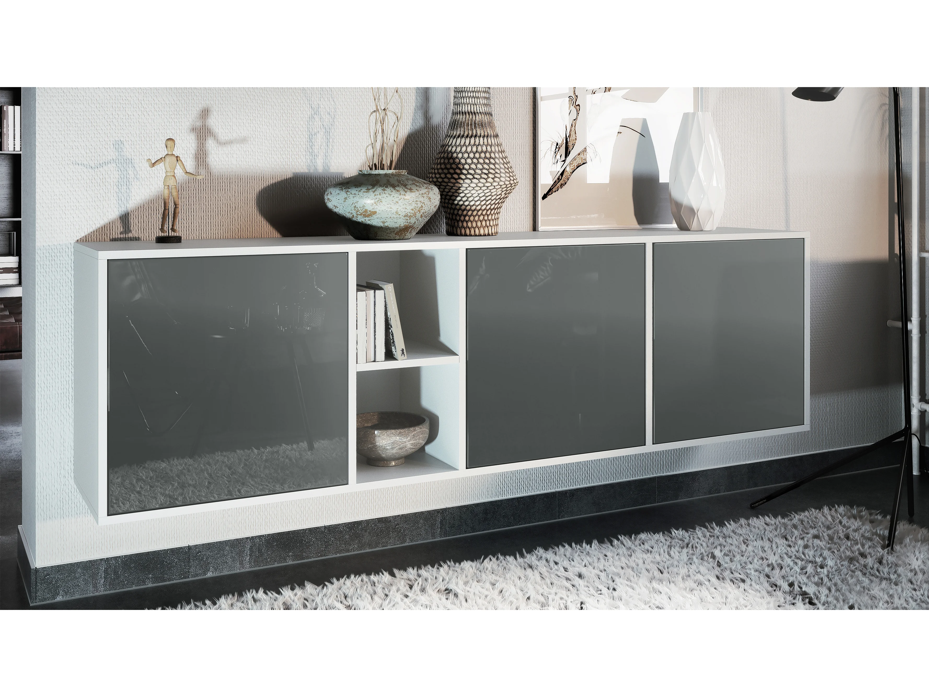 Commode Cuba - blanc mat/gris haute brillance - Buffet moderne pour votre salon - (LxHxP) 182x53x35 cm