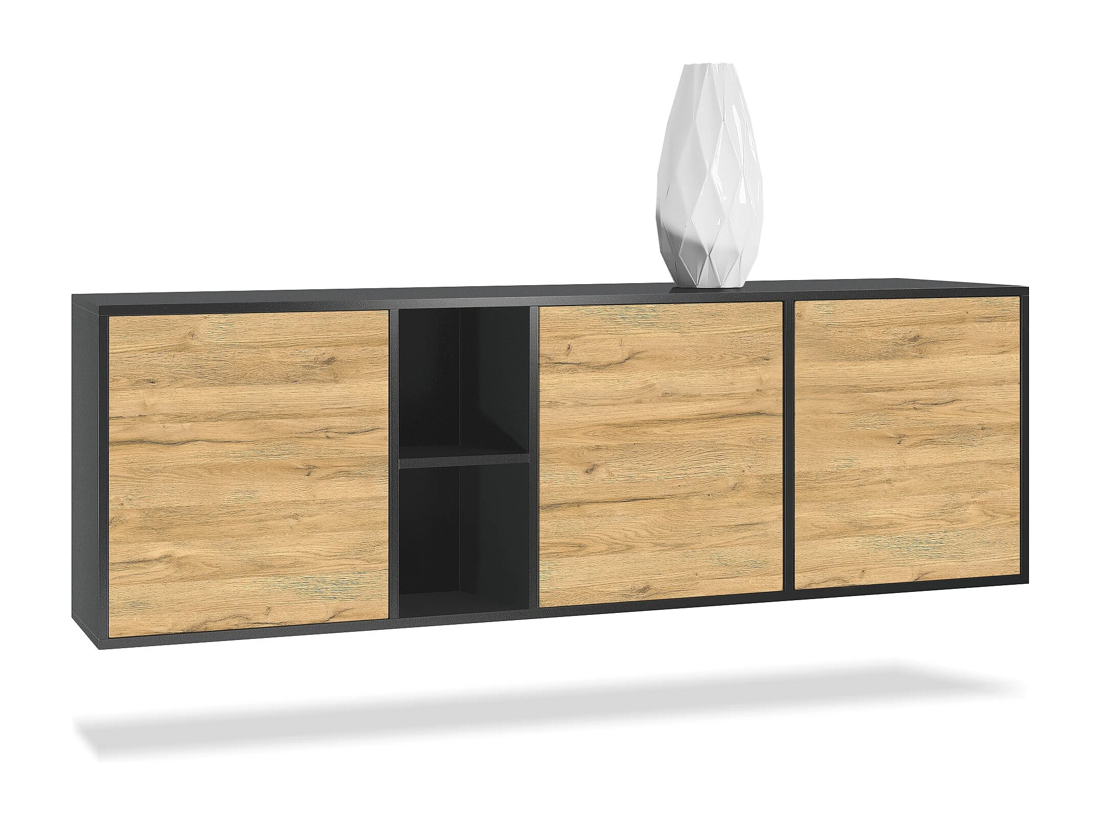 Commode Cuba - noir mat/chêne nature - Buffet moderne pour votre salon - (LxHxP) 182x53x35 cm