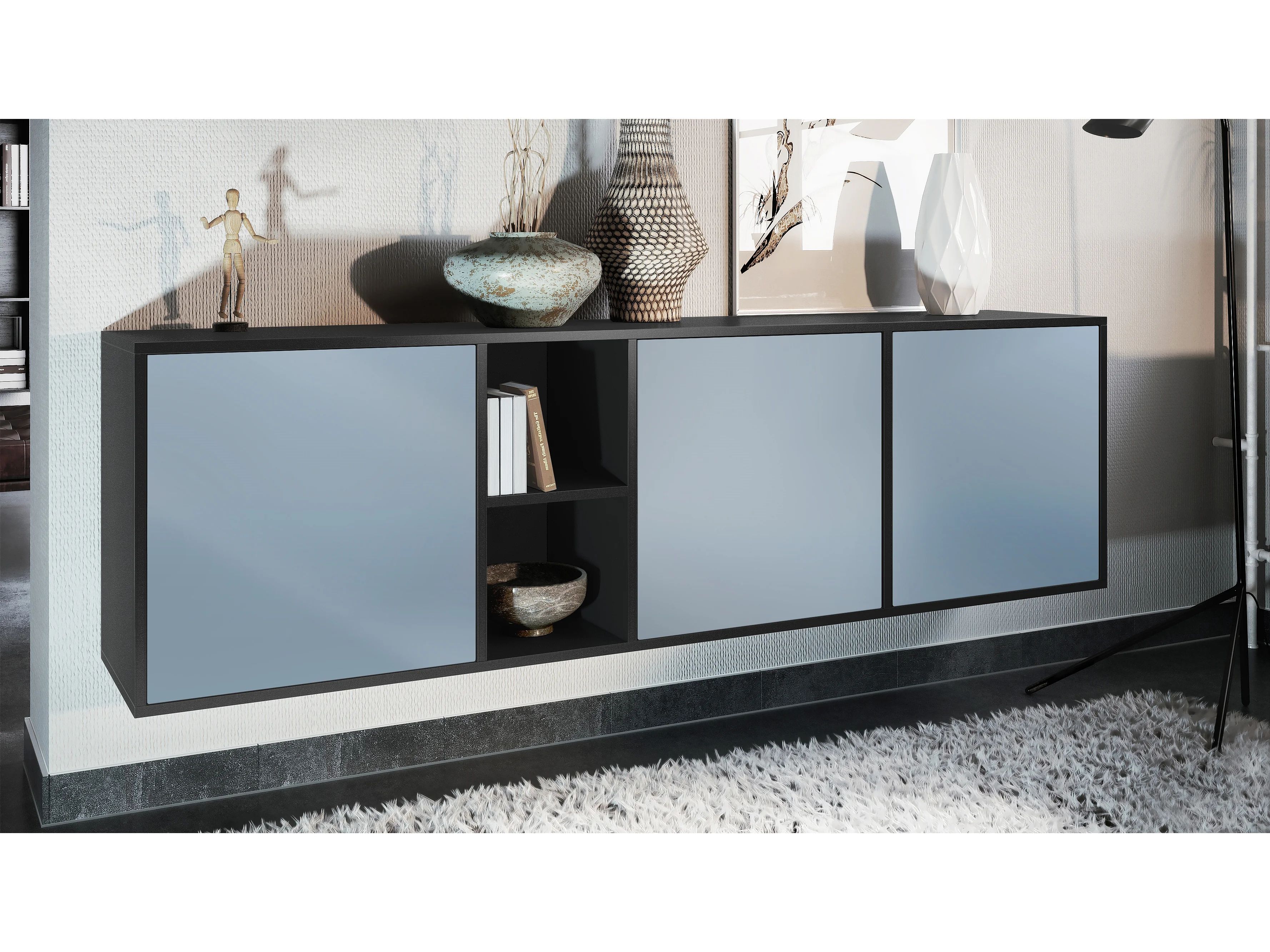 Commode Cuba - noir mat/denim mat - Buffet moderne pour votre salon - (LxHxP) 182x53x35 cm
