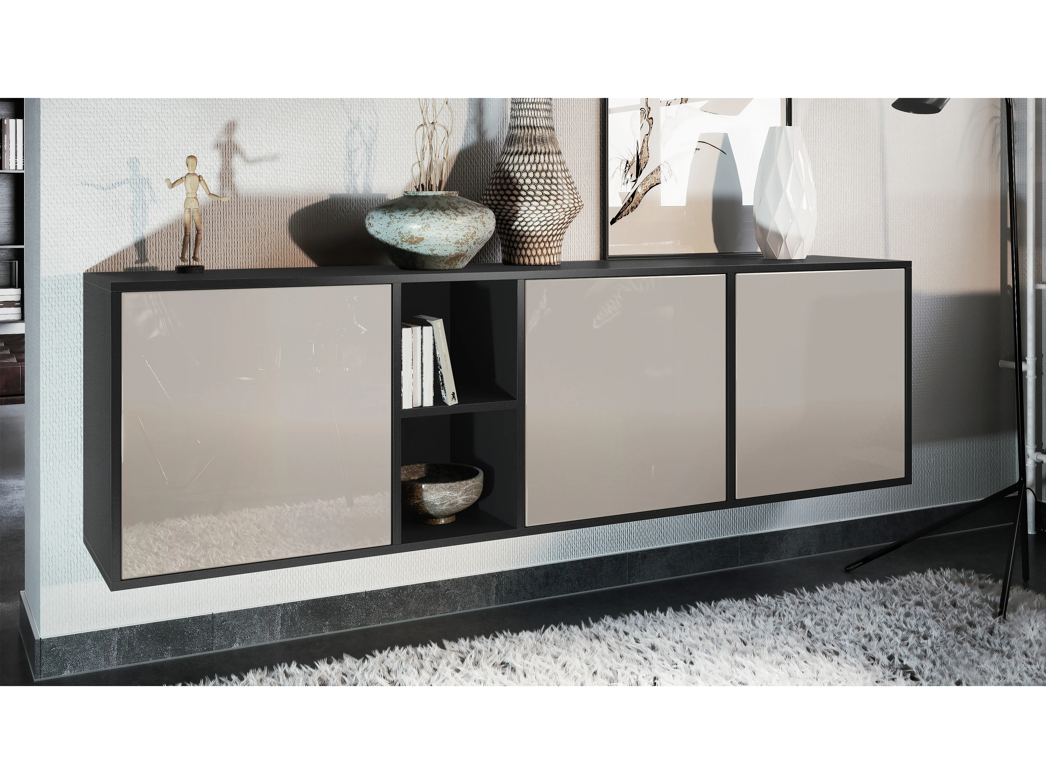 Commode Cuba - noir mat/gris sable haute brillance - Buffet moderne pour votre salon - (LxHxP) 182x53x35 cm