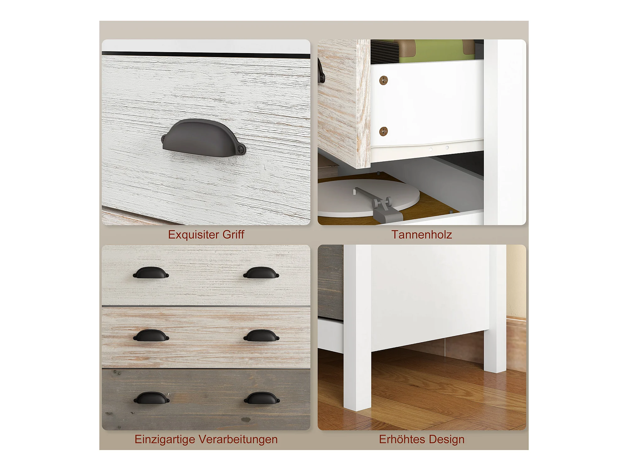Commode de rangement blanche avec 5 tiroirs et protection anti-basculement – 70 x 38 x 85 cm, pratique pour chambre et salon